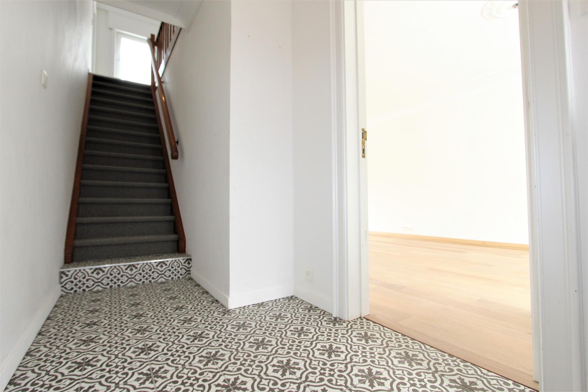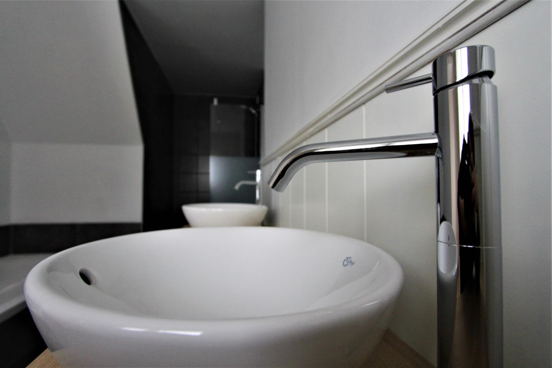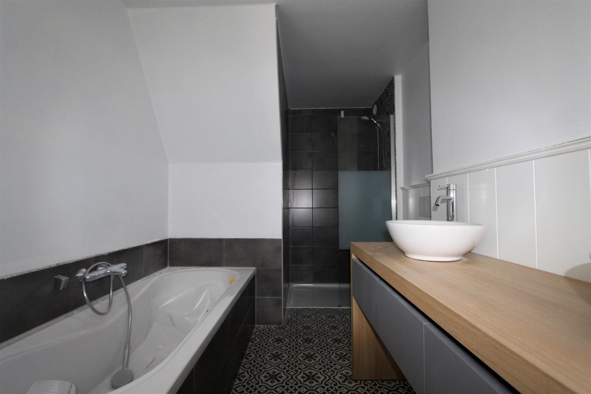 Het verdiep omvat een nachthall, drie slaapkamers en een volledig vernieuwde badkamer! De slaapkamers zijn geschilderd en voorzien van dubbel glas en laminaat (parket look). De badkamer omvat een dubbelvoudige lavabo, een ligbad, een inloopdouche alsook een toilet.