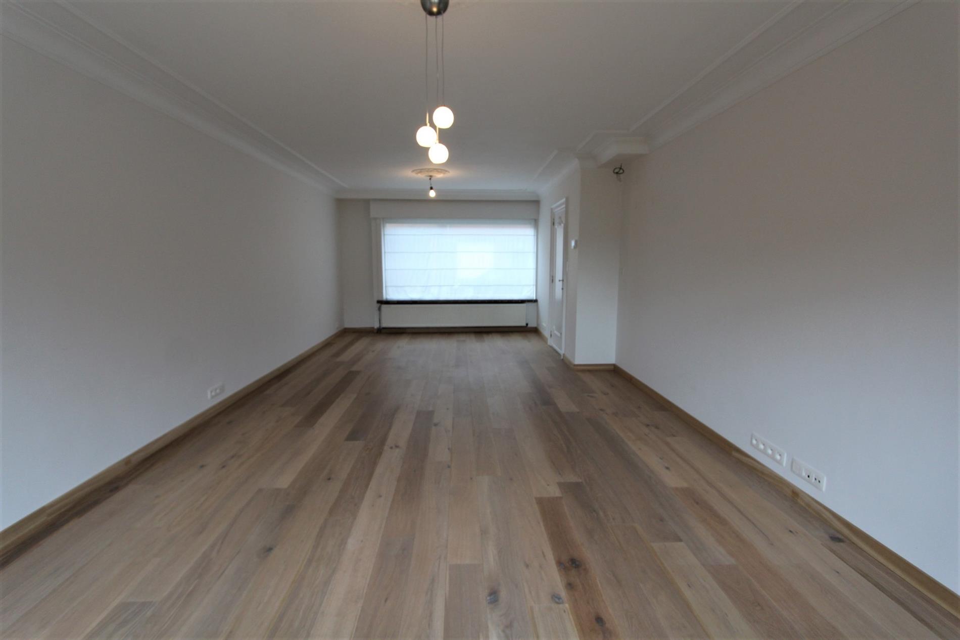 De woning omvat op het gelijkvloers een vernieuwde inkomhal, ruime leefruimte bestaande uit parket, volledig geschilderd, voorzien van verlichting. Aansluitend is de gesloten keuken. De keuken werd VOLLEDIG vernieuwd. Via de keuken komt men enerzijds terecht in de zongerichte, gezellige en kindvriendelijke tuin. Deze tuin werd aangelegd met een tuinhuis, een gazon, nieuwe sierplanten en nieuwe Vietnamese blauwsteentegel.