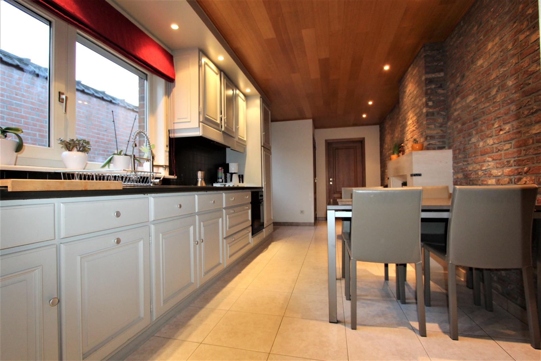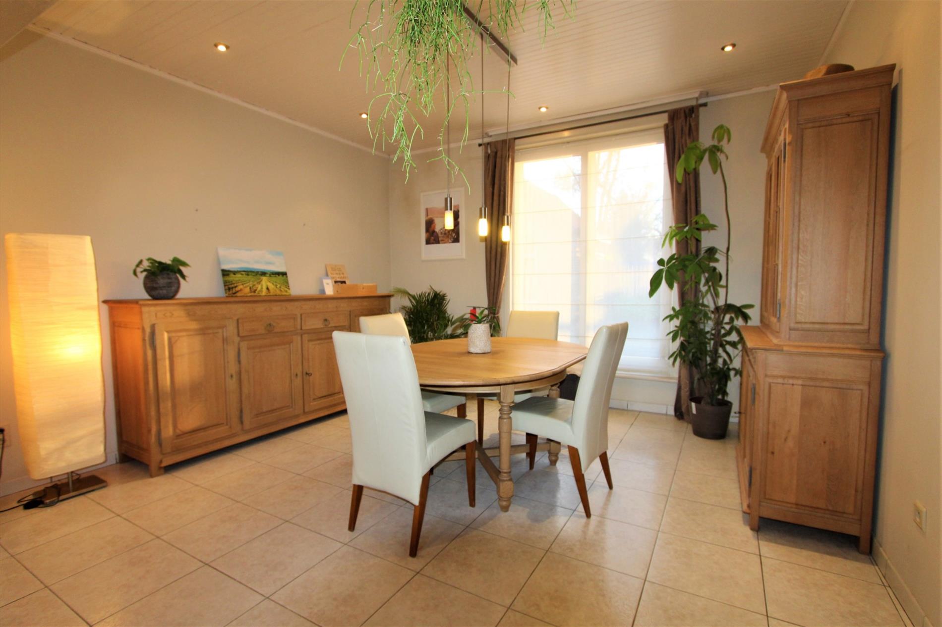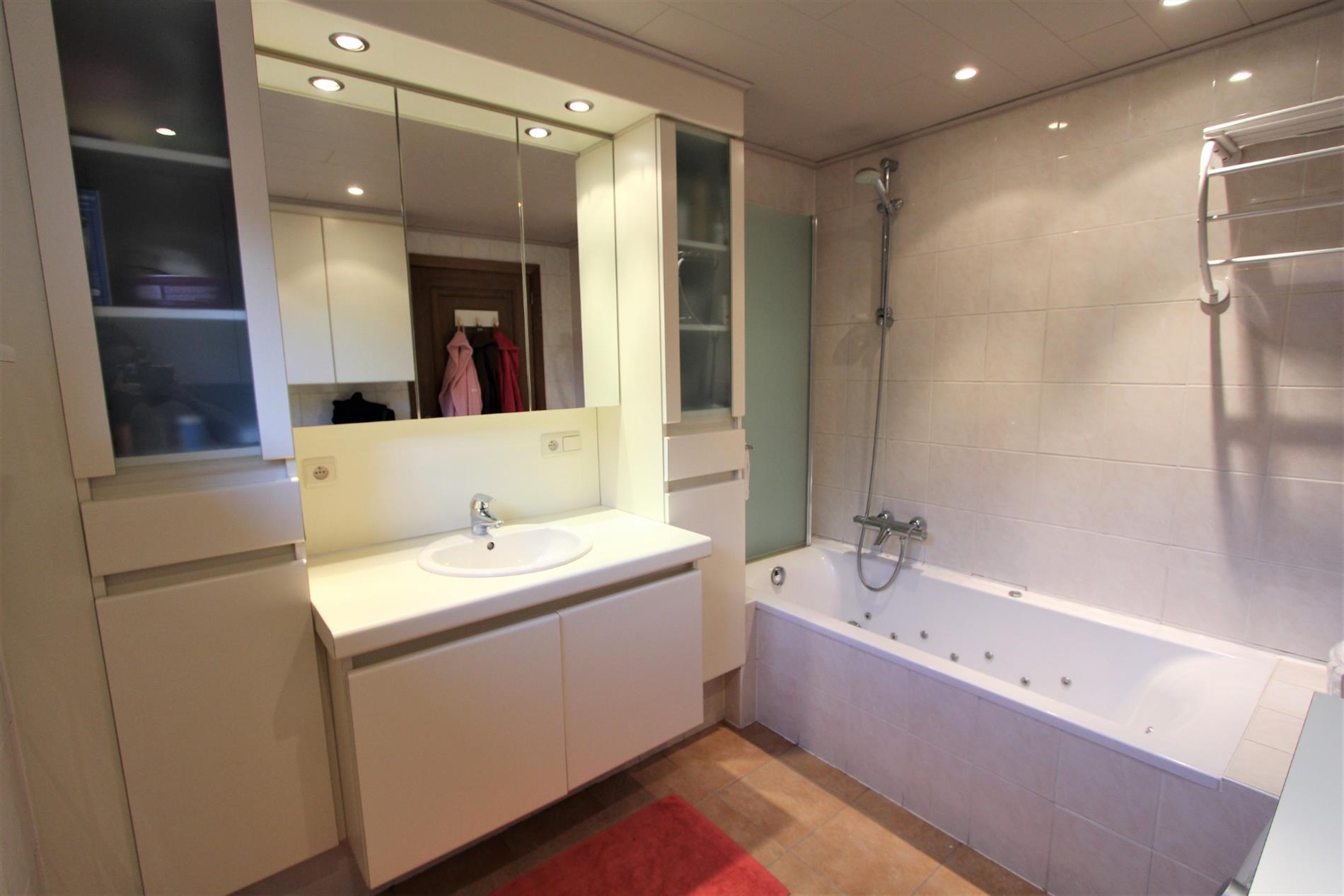 Verder omvat het gelijkvloers een gastentoilet en de badkamer. De badkamer bestaat uit een ligbad - lavabo - aansluiting wasmachine en droogkast.