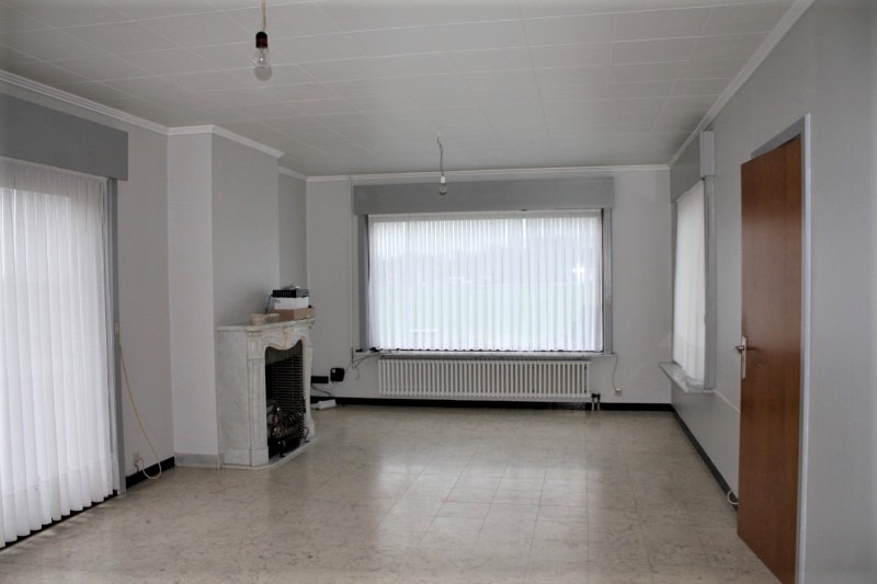 De ruime woonkamer is voorzien van een klassieke schouw (sierelement). Aansluitend is de gesloten keuken. Deze keuken werd volledig vernieuwd in December 2019. Aan de keuken is de wasplaats terug te vinden alsook een koele berging.
