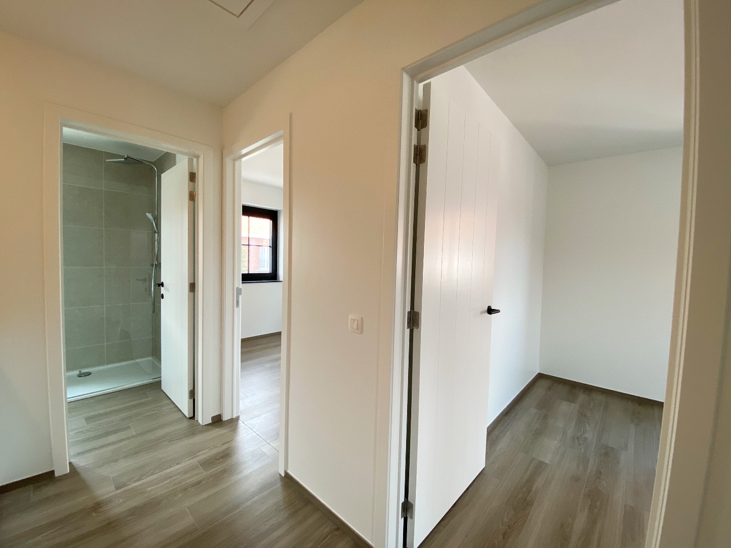 Op het verdiep zijn er 3 volwaardige slaapkamers (13,85 m²,10,97 m² en 10,11 m²), apart toilet met ingemaakte kast en een moderne badkamer met dubbele lavabo en een inloopdouche.