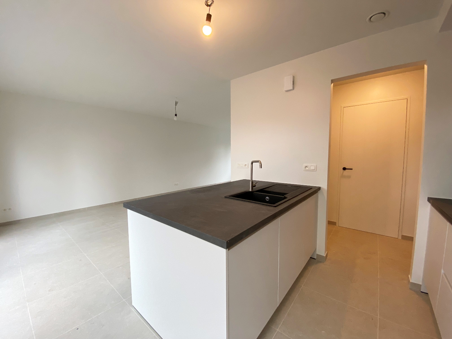 U komt de woning binnen via de inkomhal met apart toilet en handenwasser. Verder hebben we de open leefruimte waar plaats is voor een zit-en eetgedeelte met aansluitend een volledig ingerichte open keuken voorzien van alle nodige apparaten (combi oven, vaatwasser, koelkast, keramische kookplaat en spoelbak).