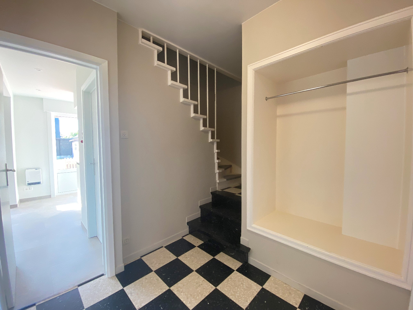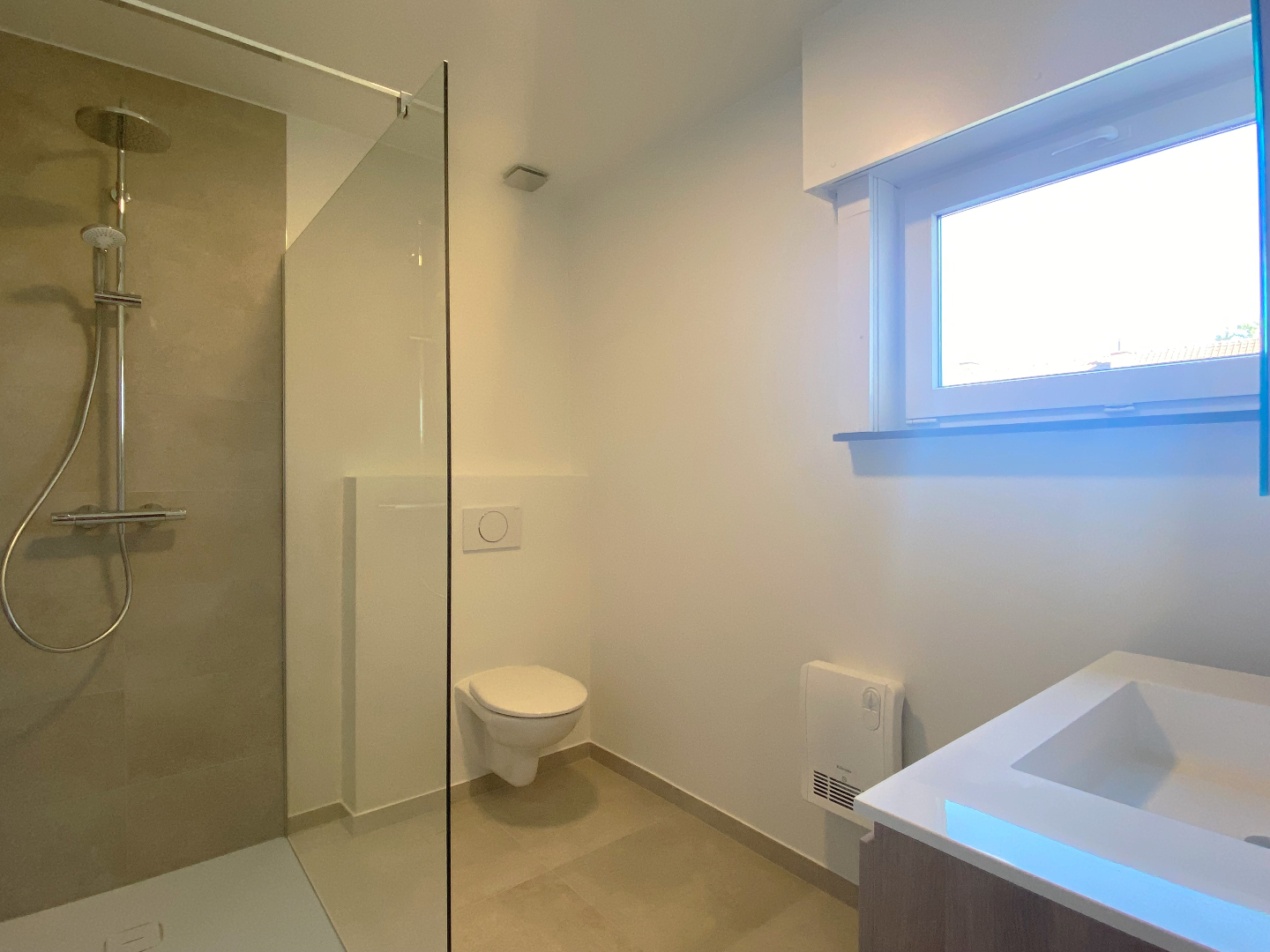 Op het eerste verdiep zijn er 3 grote slaapkamers waarvan 2 voorzien zijn met ingemaakte kasten. Vervolgens is er de moderne badkamer (toilet | lavabo met meubel en inloopdouche). Tot slot is er nog een praktische wasplaats met aansluiting voor wasmachine en droogkast.