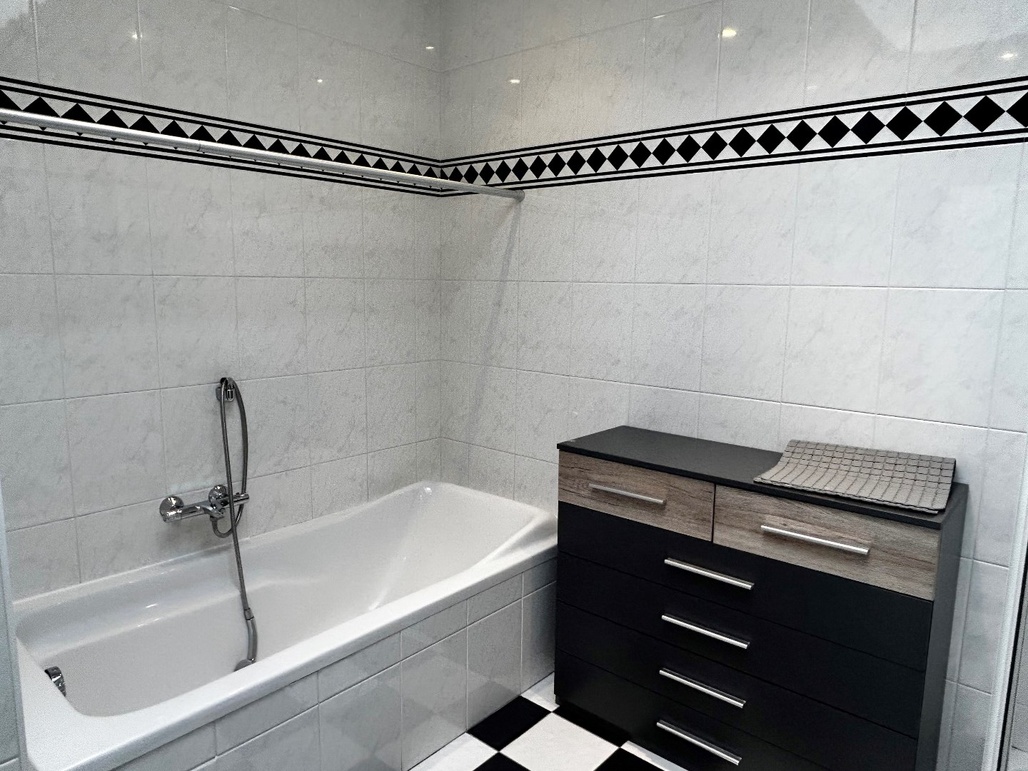 Op het gelijkvloers beschikt U ook ever een ingerichte badkamer. De badkamer is voorzien van een ligbad, douche en lavabo met meubel.