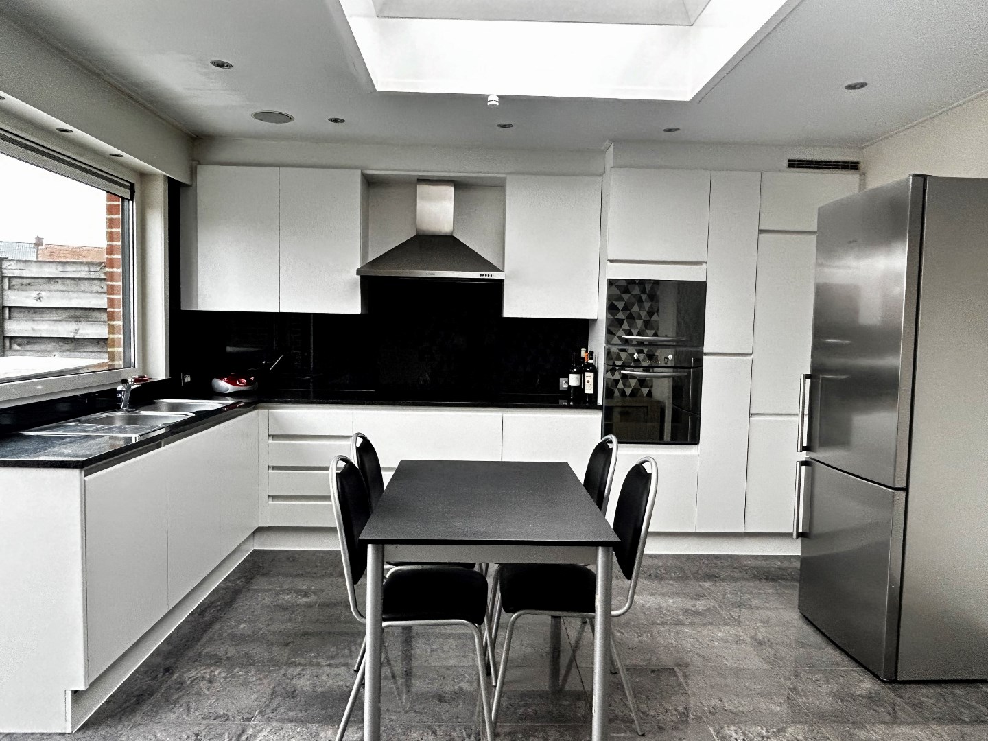 U komt binnen in de inkomhal met trappenhal en gastentoilet. De inkom biedt toegang tot de lichtrijke leefruimte met toegang tot de kelder. Verder bereiken we de volledig ingerichte keuken. De achter inkom is voorzien van inbouwkasten.