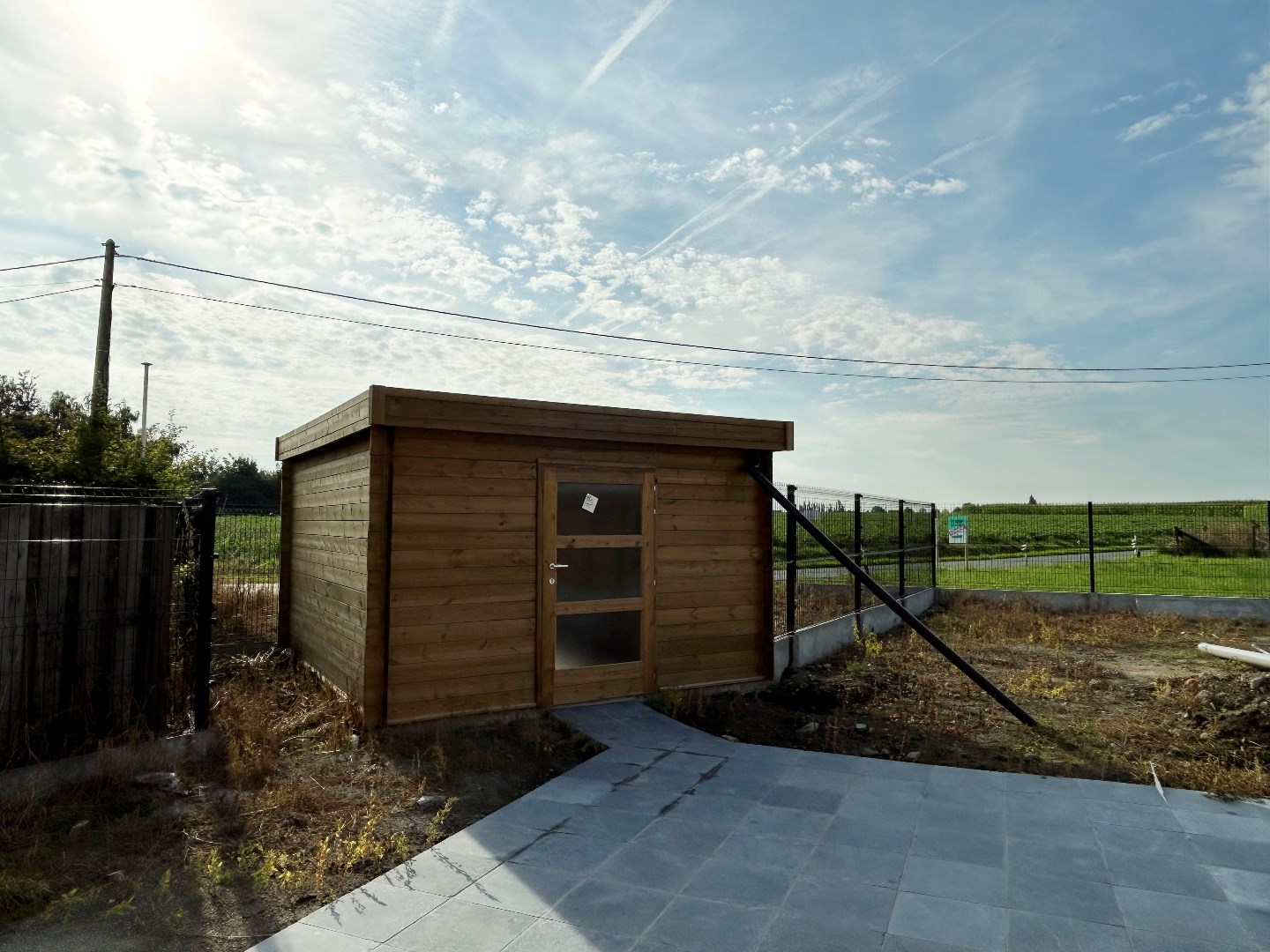 De tuin is reeds voorzien van een zonnig terras met tuinberging en omheining. De tuin zal verder afgewerkt worden met beplanting en gras.