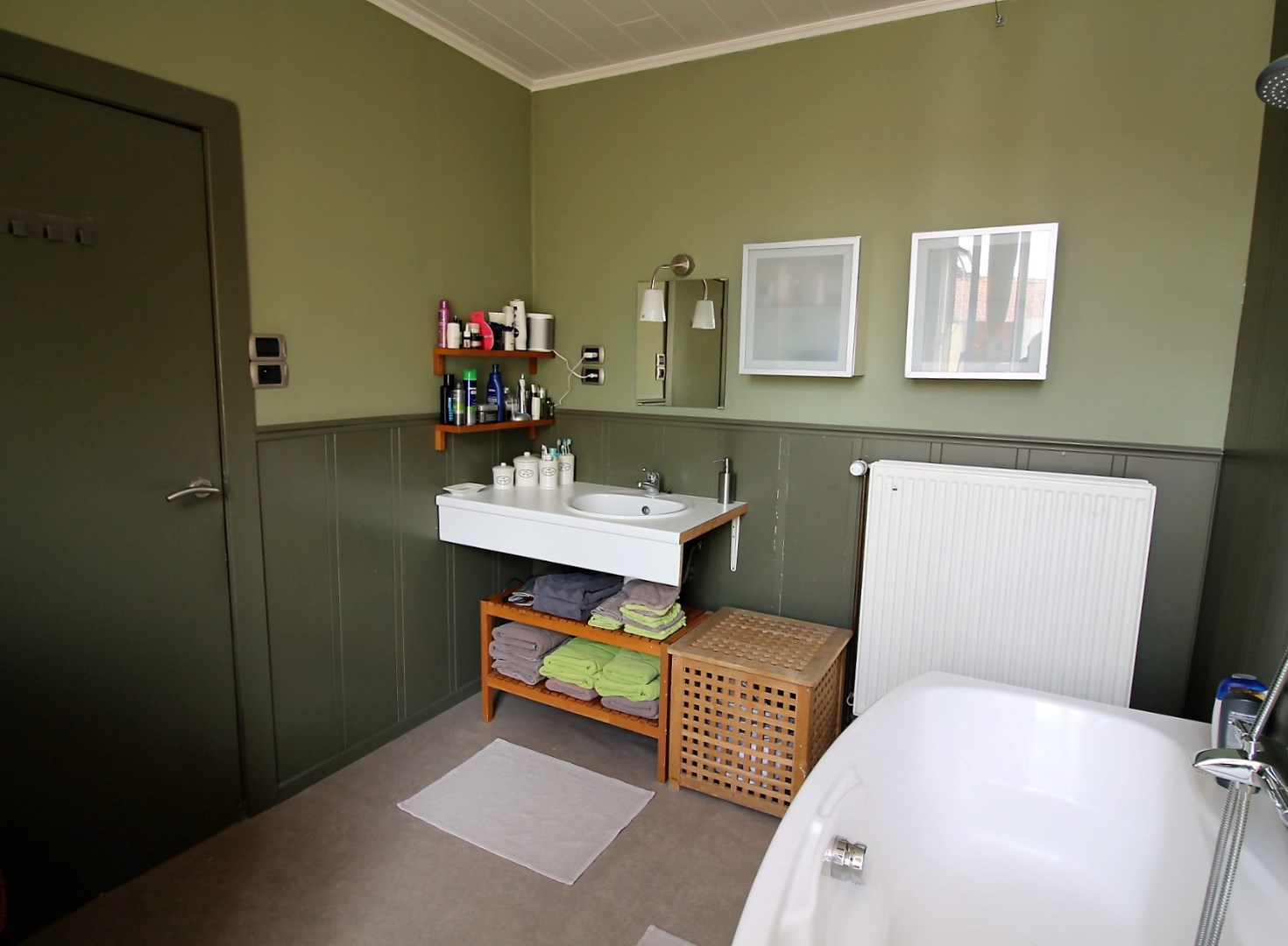 Op het verdiep vinden we een ingerichte dressing, badkamer (ligbad | toilet | lavabo | meubel) en eerste slaapkamer. Het tweede verdiep omvat een tweede ruime slaapkamer.