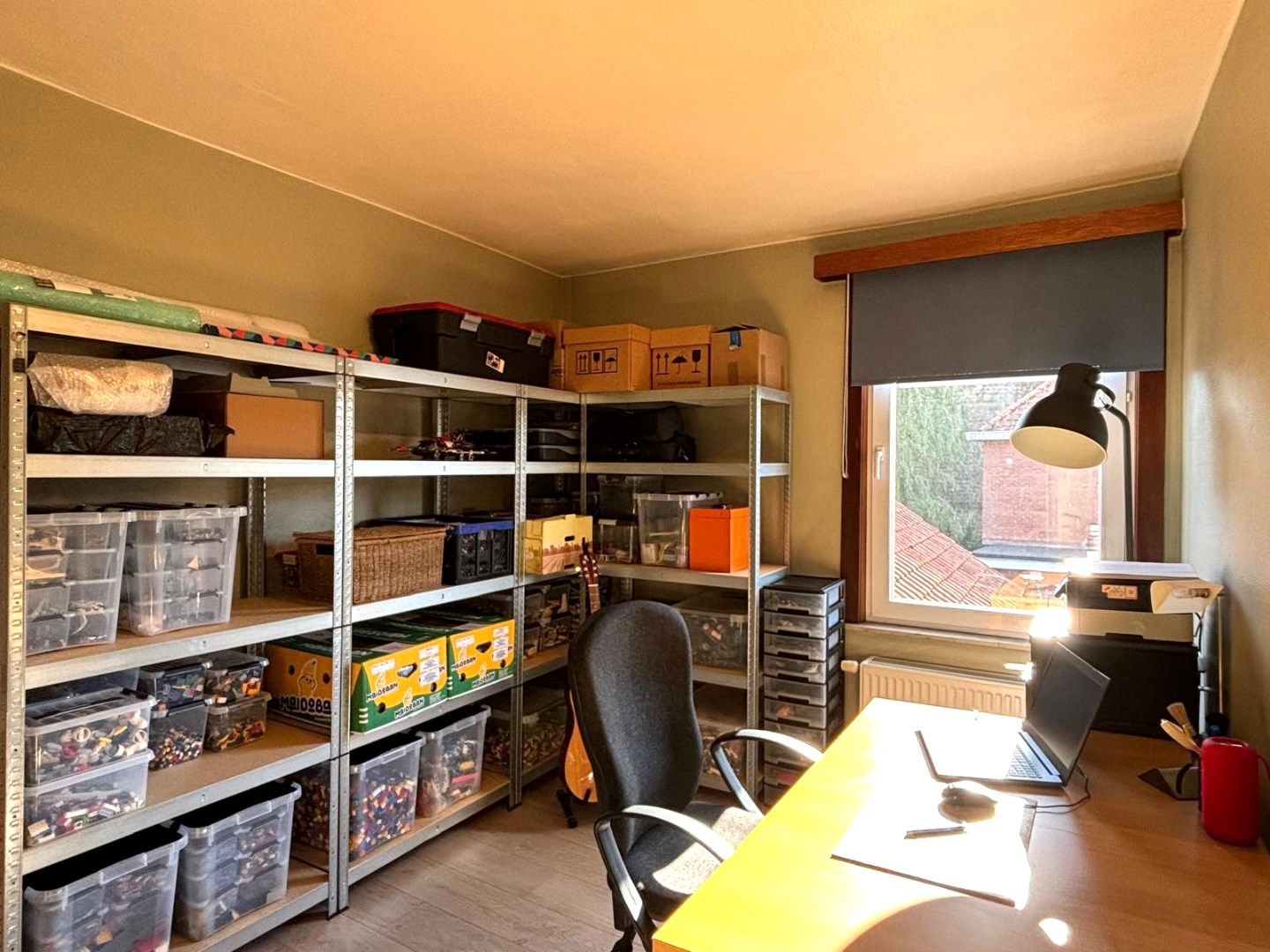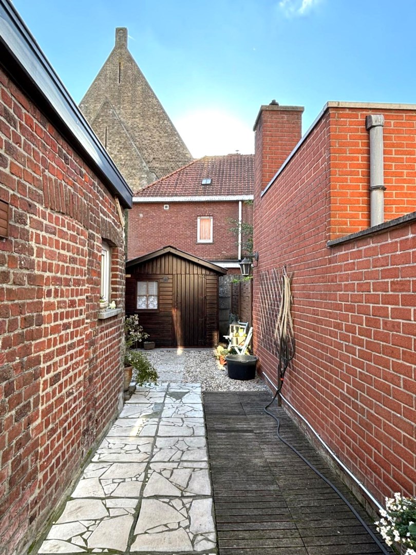 Via de keuken is er directe toegang tot de tuin met helemaal achteraan de tuin een praktische buitenberging die kan dienen voor extra stockage.