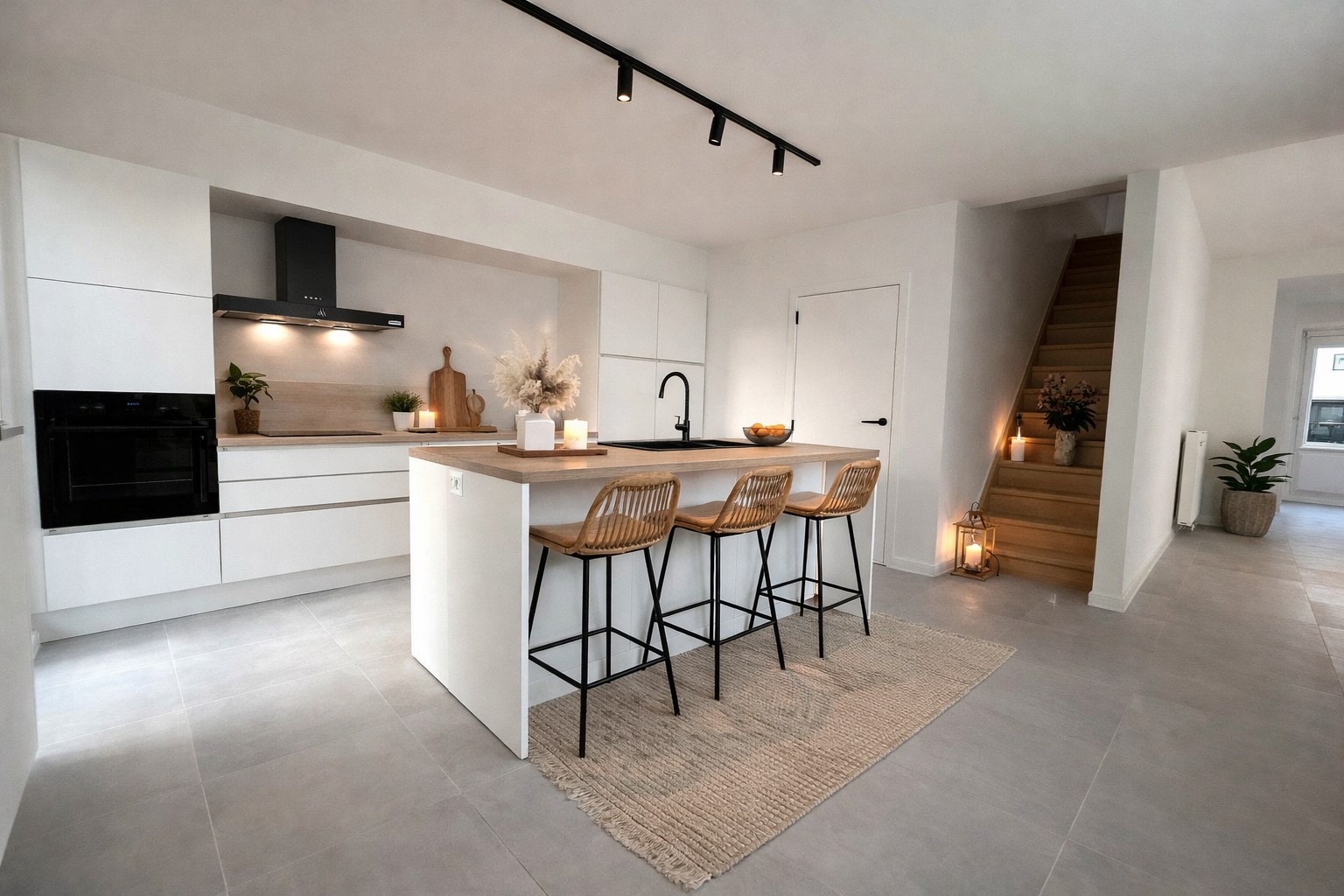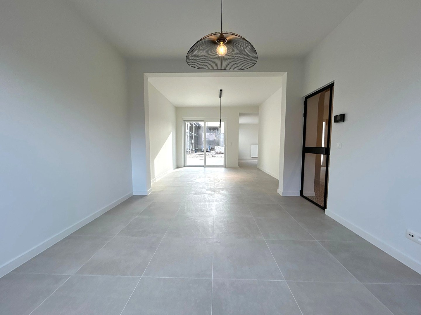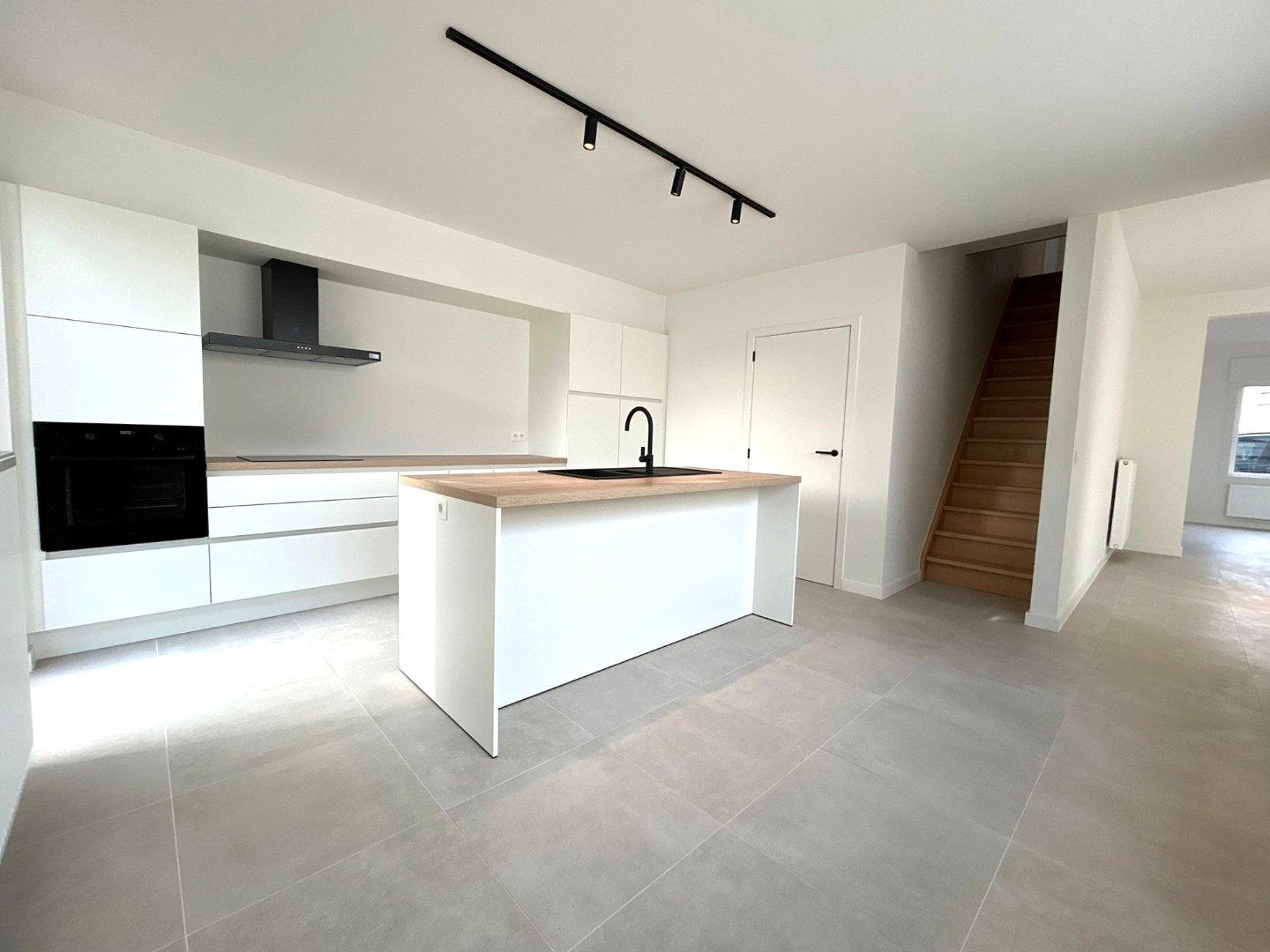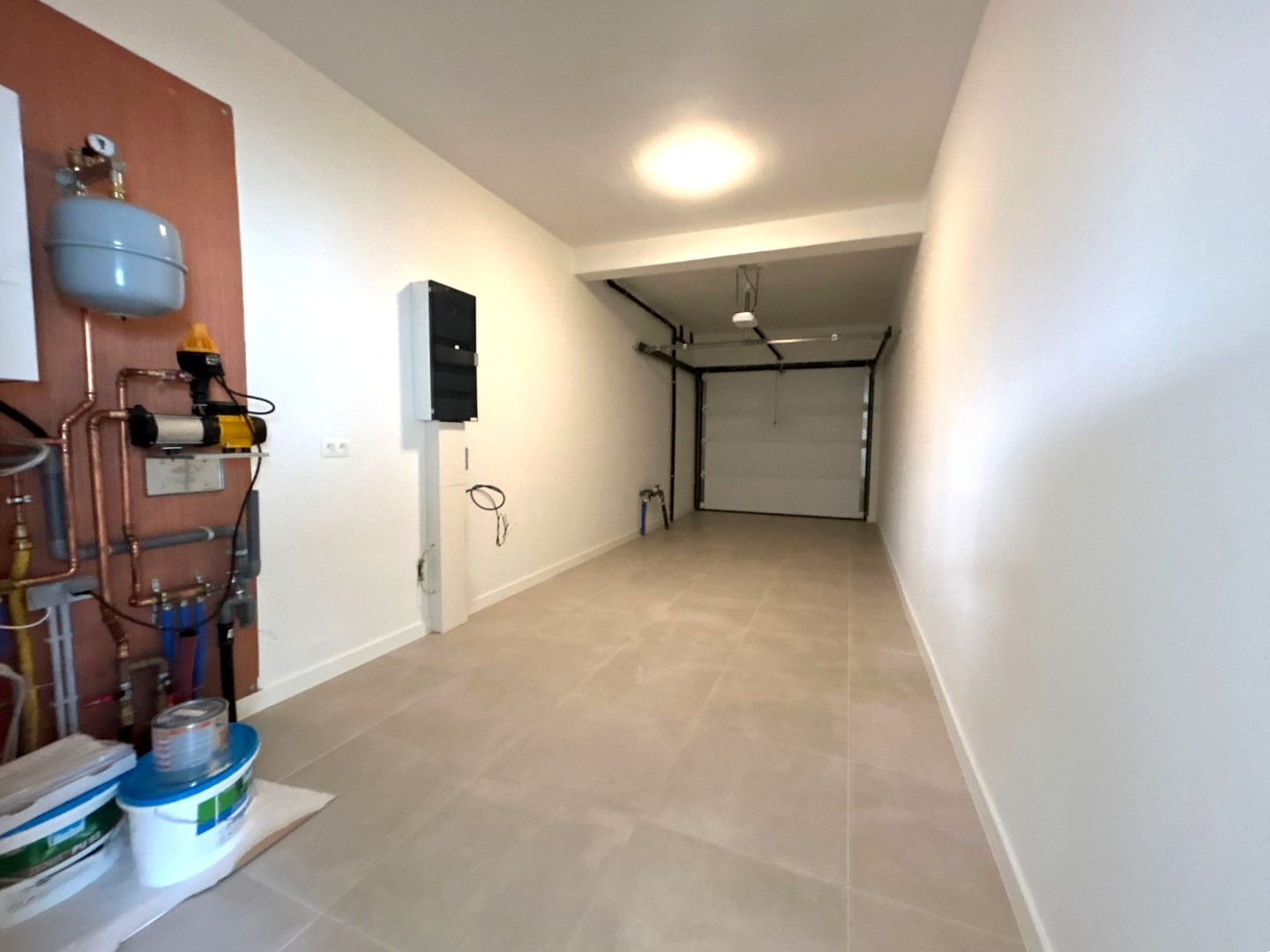 U komt de woning binnen via de inkomhal met apart gastentoilet. Vanuit de hal komt u in de lichtrijke leef- en eetruimte met aansluitend de volledig ingerichte keuken (oven | dampkap | kookplaat | koelkast | vaatwasser). Vanuit de keuken heeft u toegang tot de inpandige garage met sectionale automatisch poort. In de garage is er voorziening voor wasmachine. Zowel de keuken als de eetruimte bieden directe toegang tot het terras en tuin. Het terras wordt nog afgesloten met een omheining. Er wordt kunstgras voorzien. Dit wordt in de maand juli geplaatst.