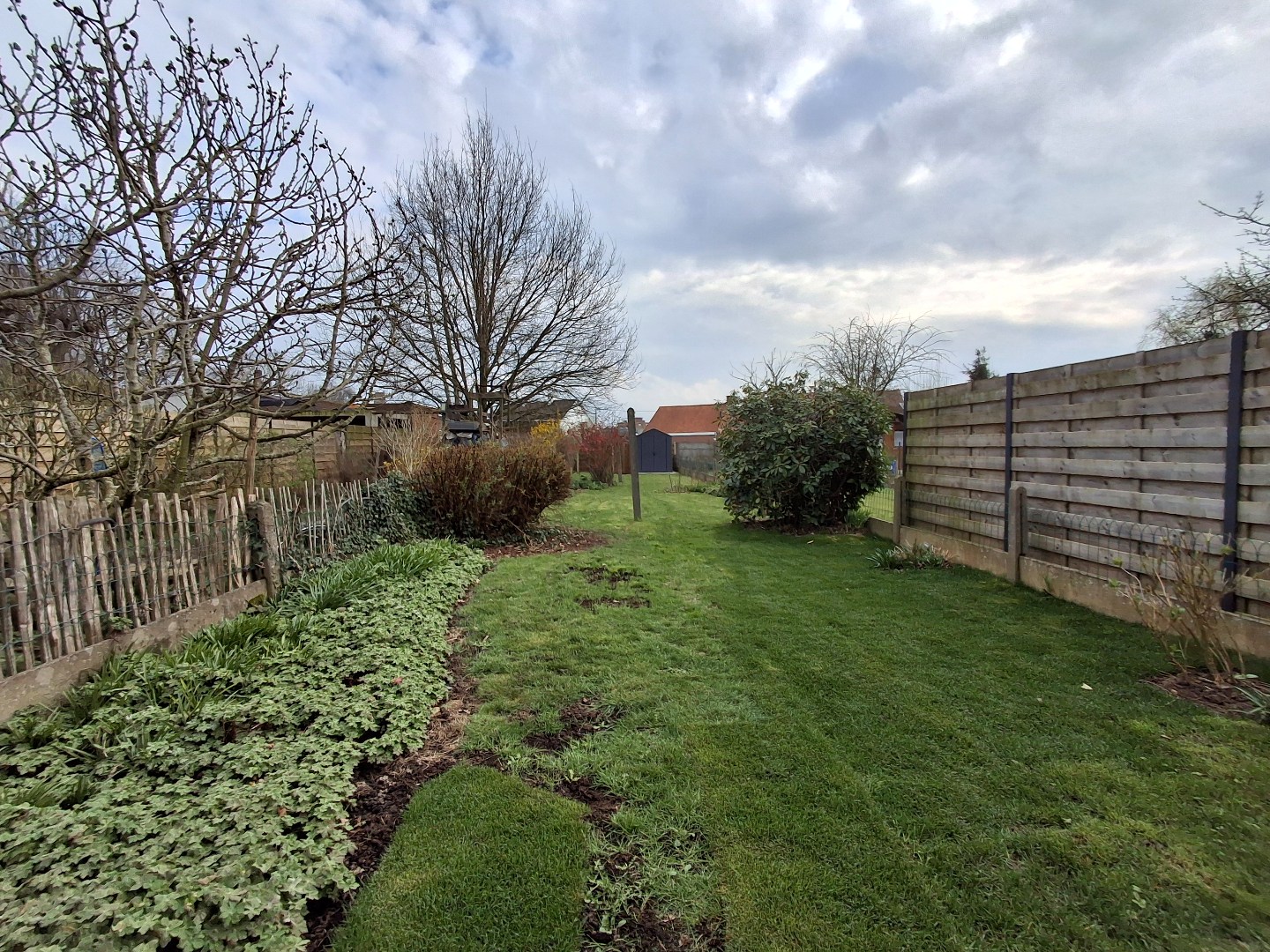 Bij binnenkomst komt u in de inkomhal die toegang geeft tot de gezellige woonkamer, met ruimte voor zowel een zit- als eetgedeelte. De keuken is uitgerust met oven, kookplaat, dampkap, spoelbak en koelkast, en grenst aan een ruime wasplaats met aansluitingen voor wasmachine en droogkast en een apart gastentoilet. Op het gelijkvloers vindt u ook de vernieuwde badkamer met lavabo en inloopdouche. Vanuit de keuken stapt u zo het terras op en geniet u van de ruime tuin, die achteraan een praktische achterom via een voetweg heeft.