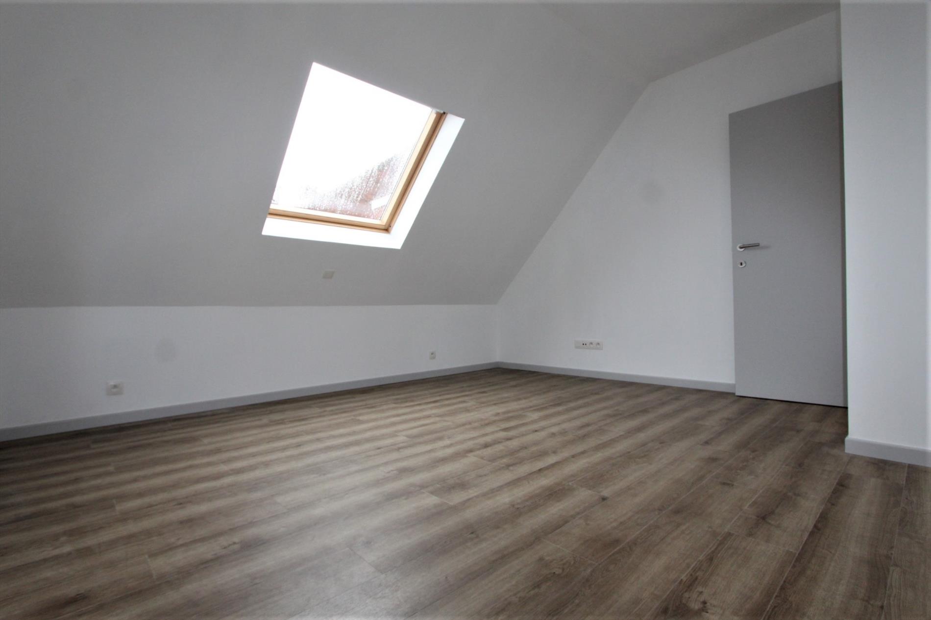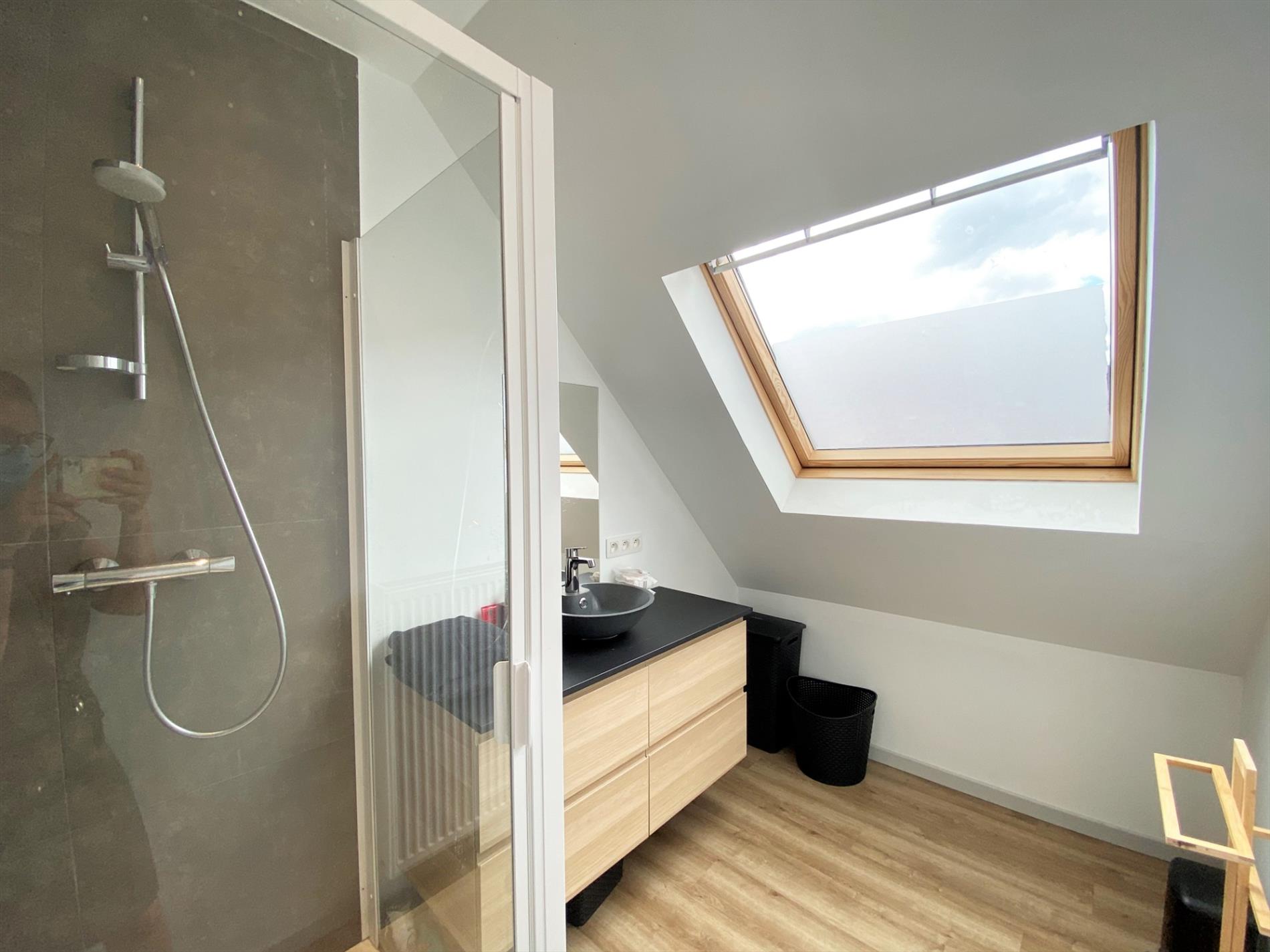 Via een vaste trap komt men terecht op het eerste verdiep. Dit omvat een nachthal, een badkamer ( enkelvoudige lavabo - inloopdouche - wandradiator ) en twee slaapkamers. Beide kamers voorzien van laminaat, geschilderd, dubbel glas, centrale verwarming alsook TV-aansluitingen.