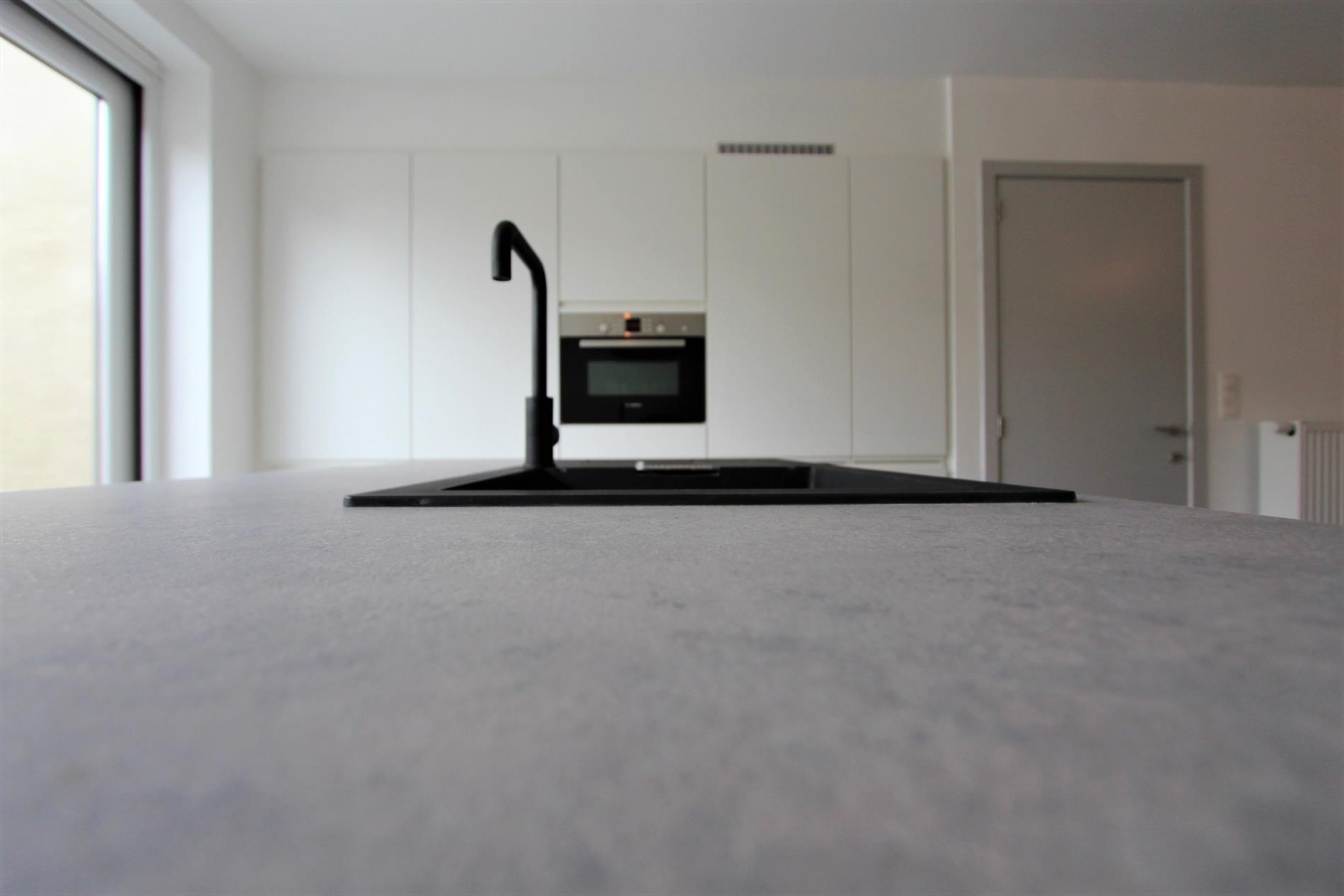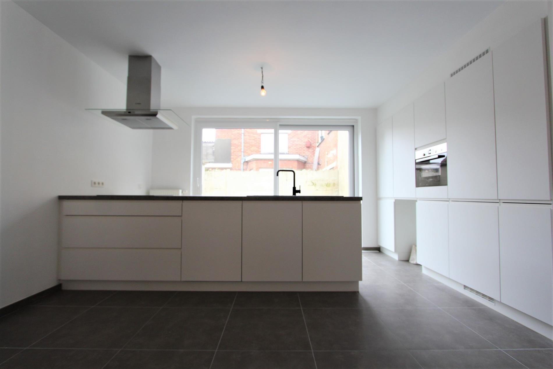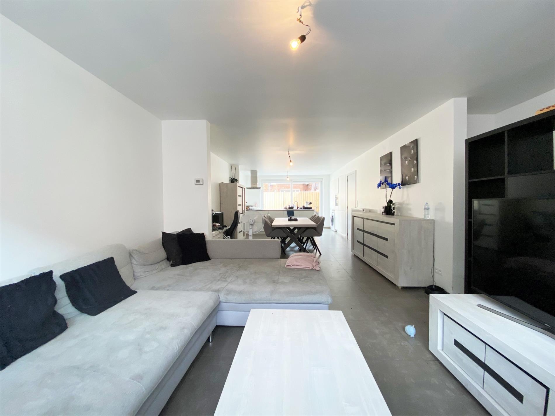 De woning omvat een inkomhal, gastentoilet, ruime leefruimte met toegang tot de open, nieuwe, ingerichte keuken.