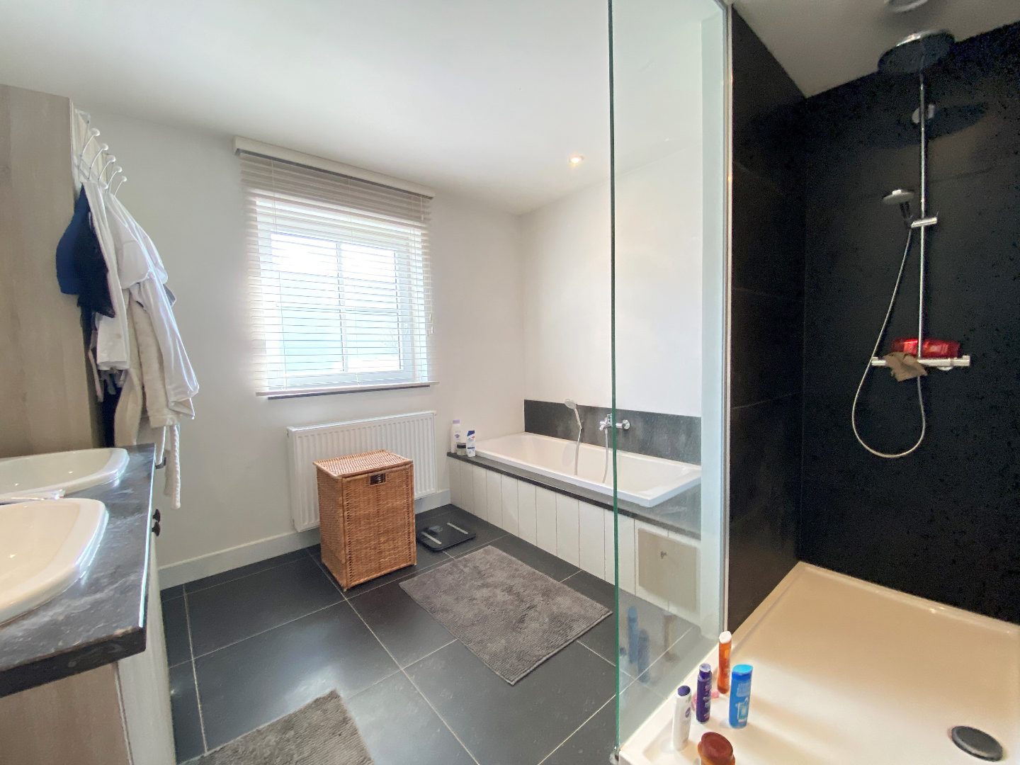 Het eerste verdiep telt drie slaapkamers, een volledig ingerichte badkamer (bad - inloopdouche - lavabo met meubel).Via een vaste trap is er toegang tot de geïsoleerde zolder, zeer handig ter stockage.