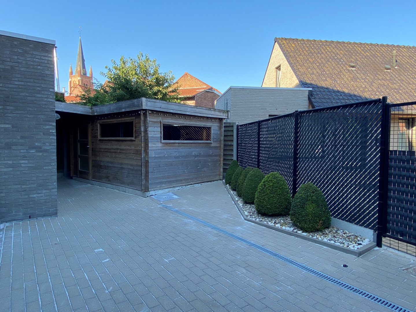 Het exterieur van de woning omvat een koer met praktisch tuinhuis. Tevens is er een ideale uitweg voor fietsen.