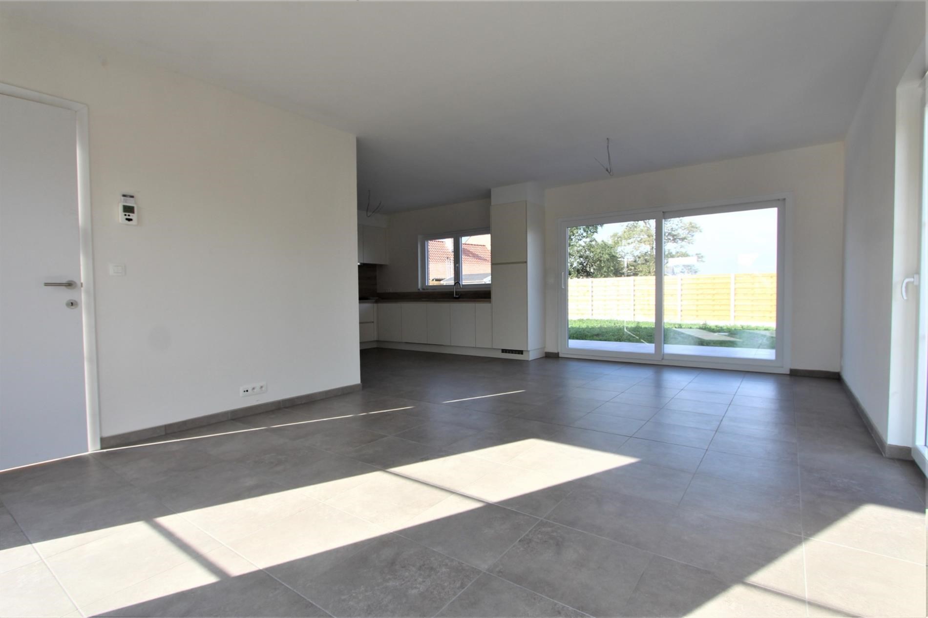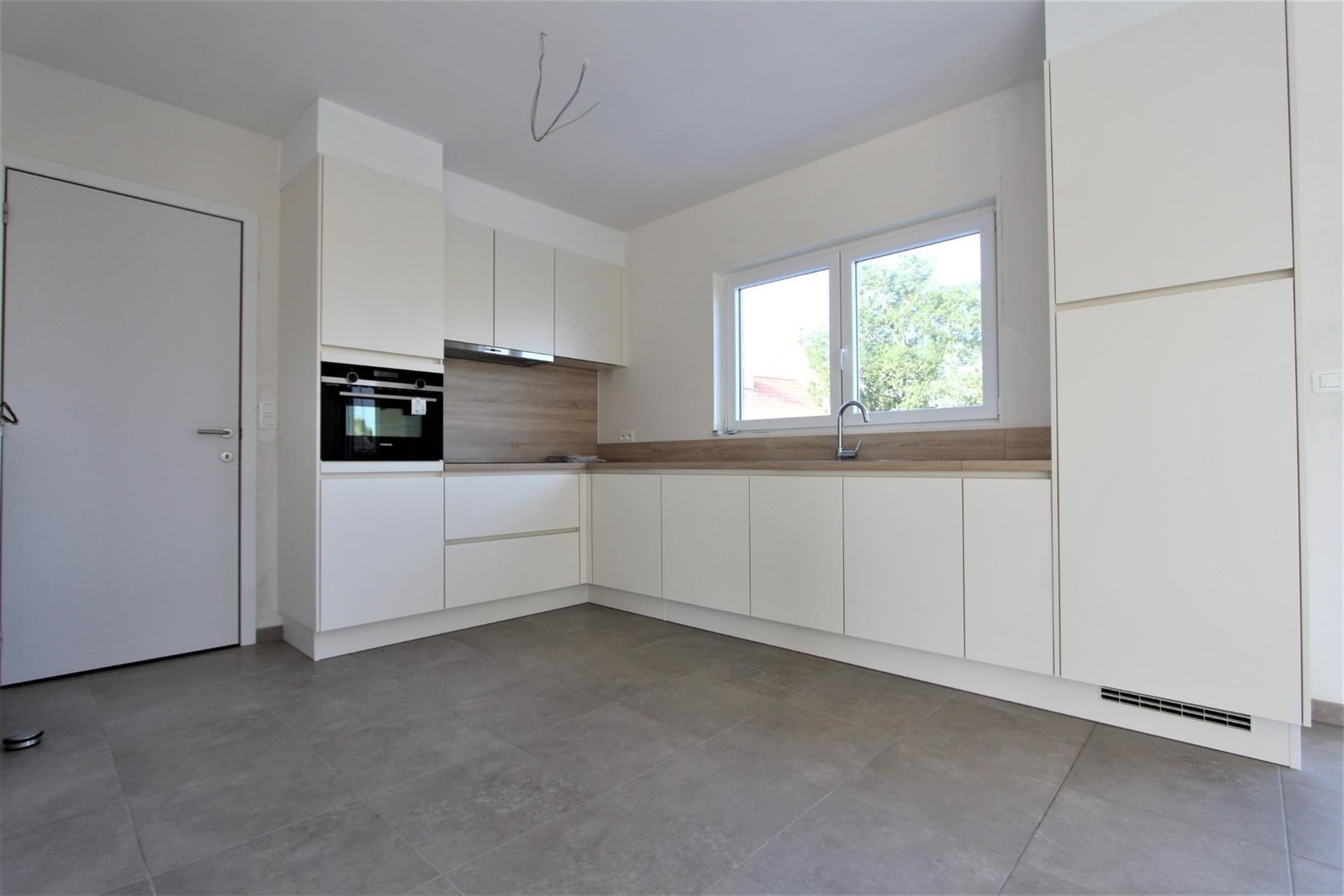 U komt binnen in de inkomhal waar er ruimte is voor een kapstok te plaatsen. Vervolgens biedt de inkomhal ook toegang tot het gastentoilet. Vervolgens komt U terecht in de ruime open woonkamer met aansluitend de volledig nieuwe en ingerichte keuken. De keuken omvat een koelkast - keramische kookplaat - dampkap - combi microgolf/oven - spoelbak en een vaatwasser.