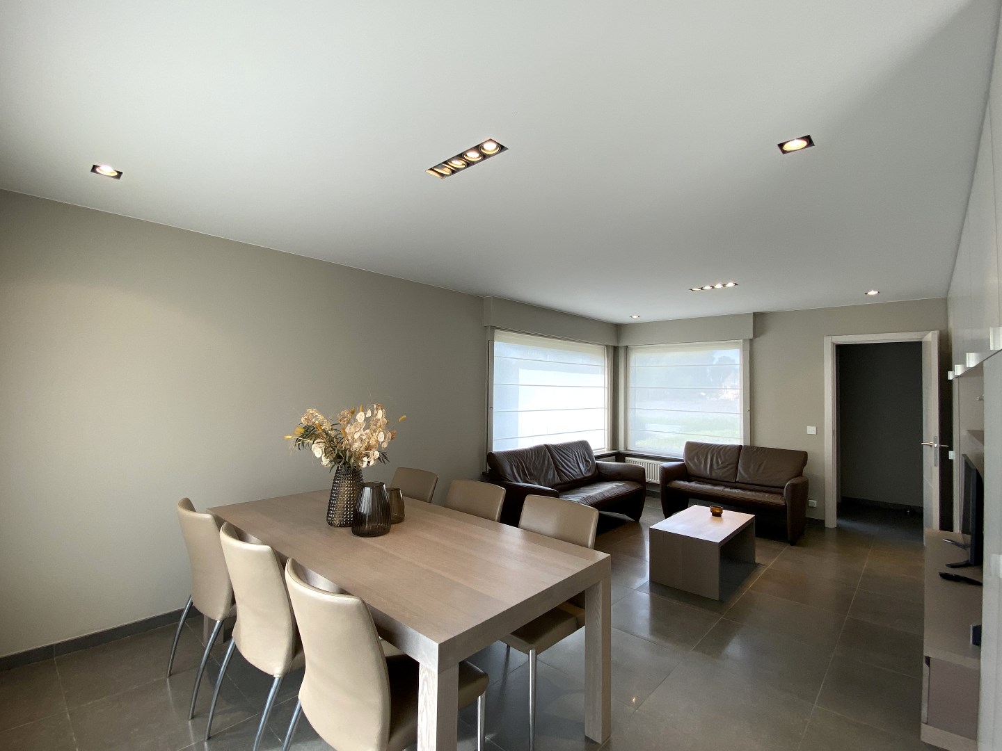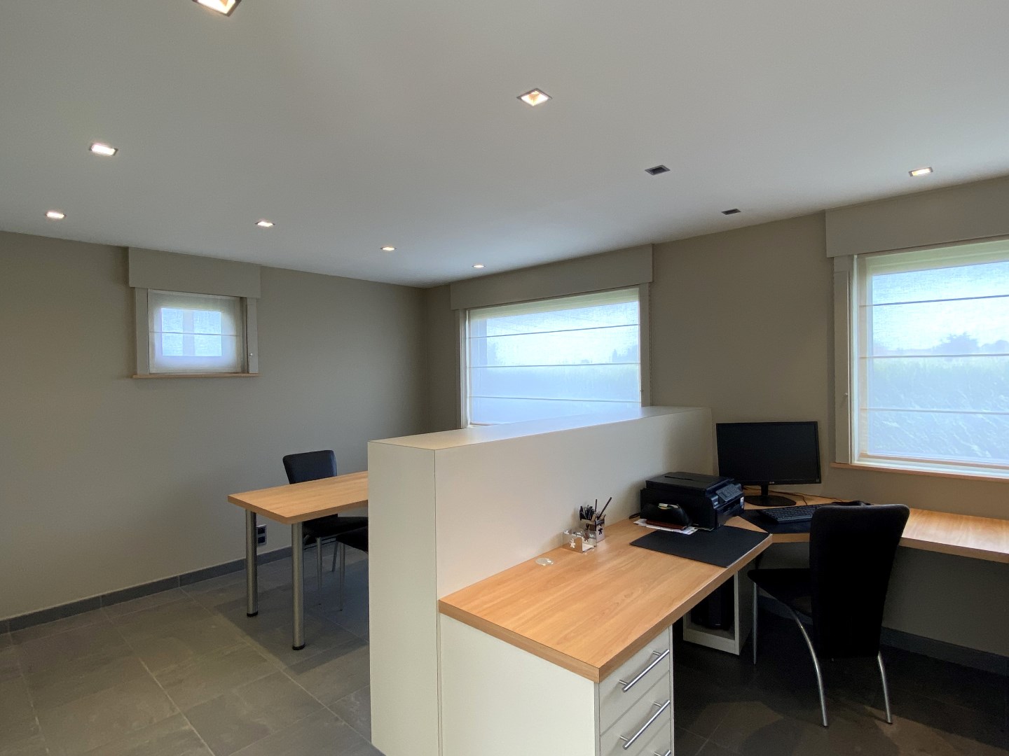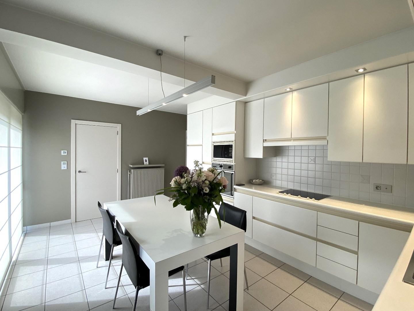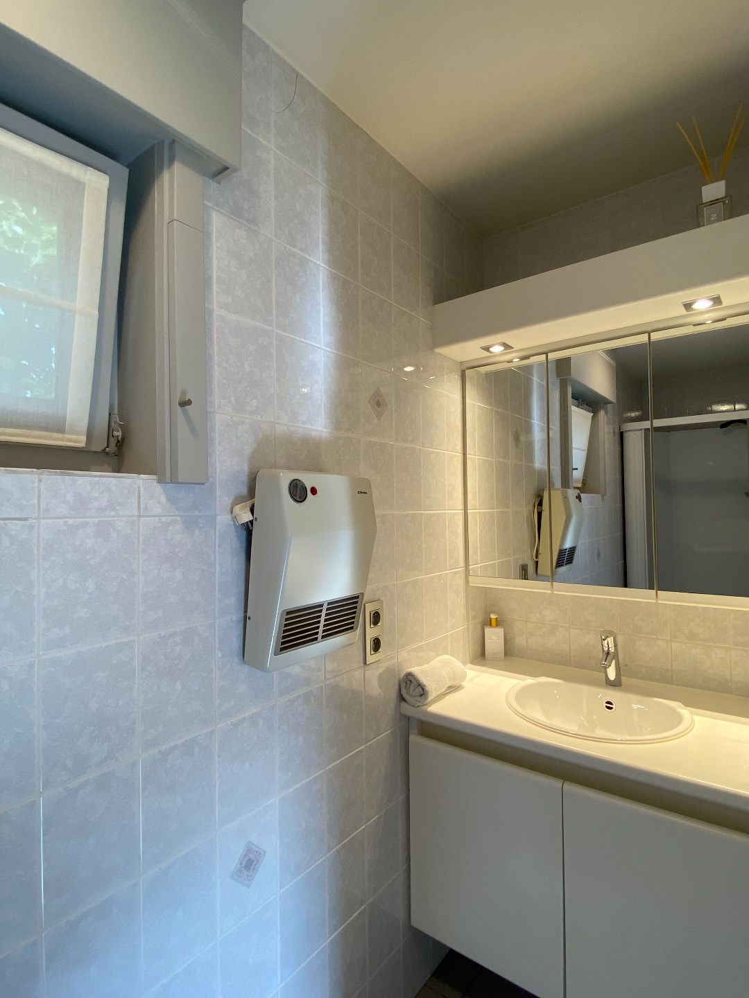 U komt de woning binnen via de inkomhall die toegang biedt tot de lichtrijke leef- en eetruimte. In de leefruimte is een volledig ingemaakte wandkast voorzien. Verder komen we tot de ingerichte keuken die voorzien is van een koelkast | oven | microgolfoven | kookplaat | dampkap | vaatwasmachine | dubbele spoelbak. Naast de keuken is er een praktisch wasplaats die toegang verleent tot de douchekamer met lavabomeubel en het toilet. Via de wasplaats kan u het bureau/ de hobbykamer betreden.