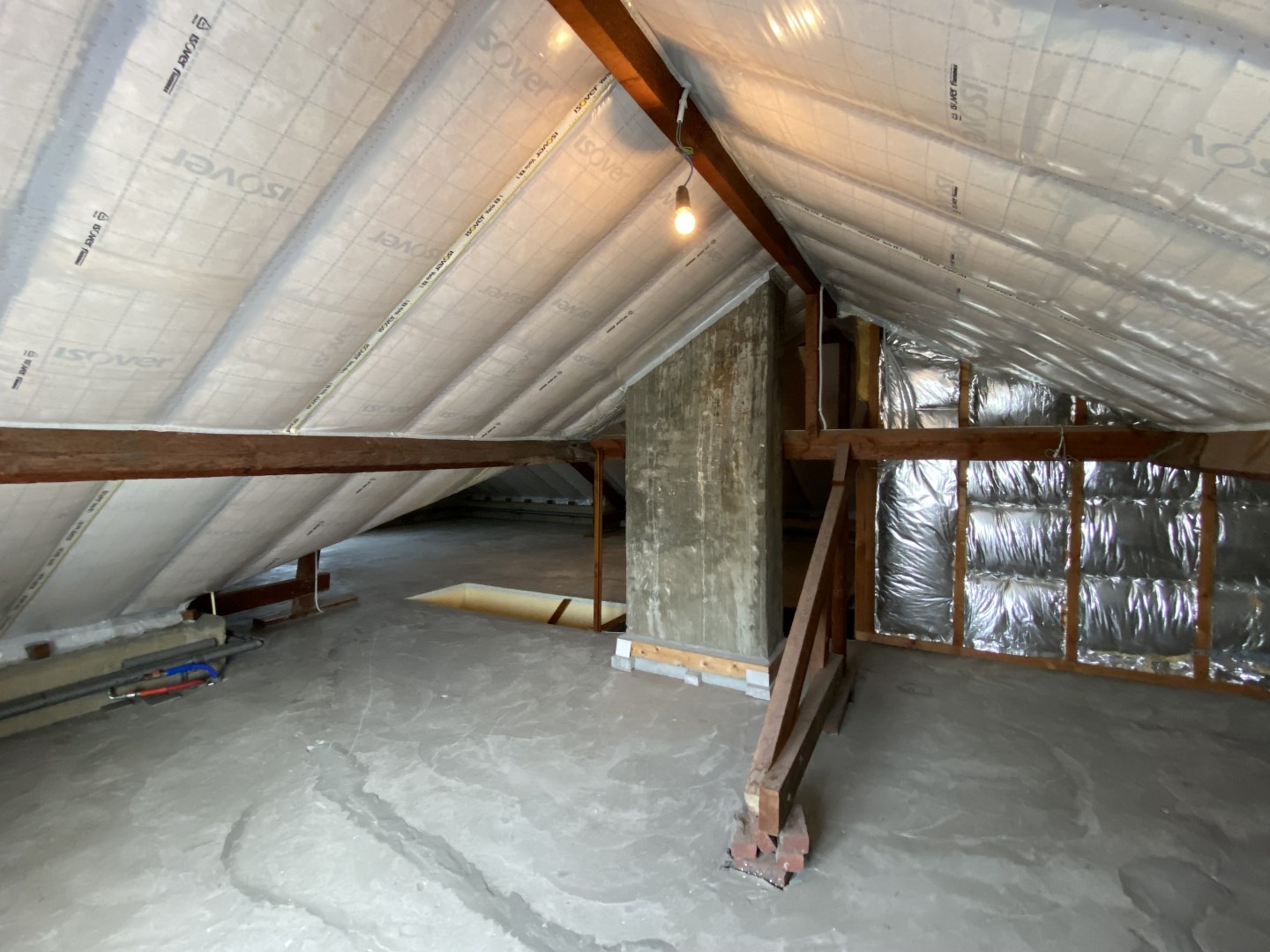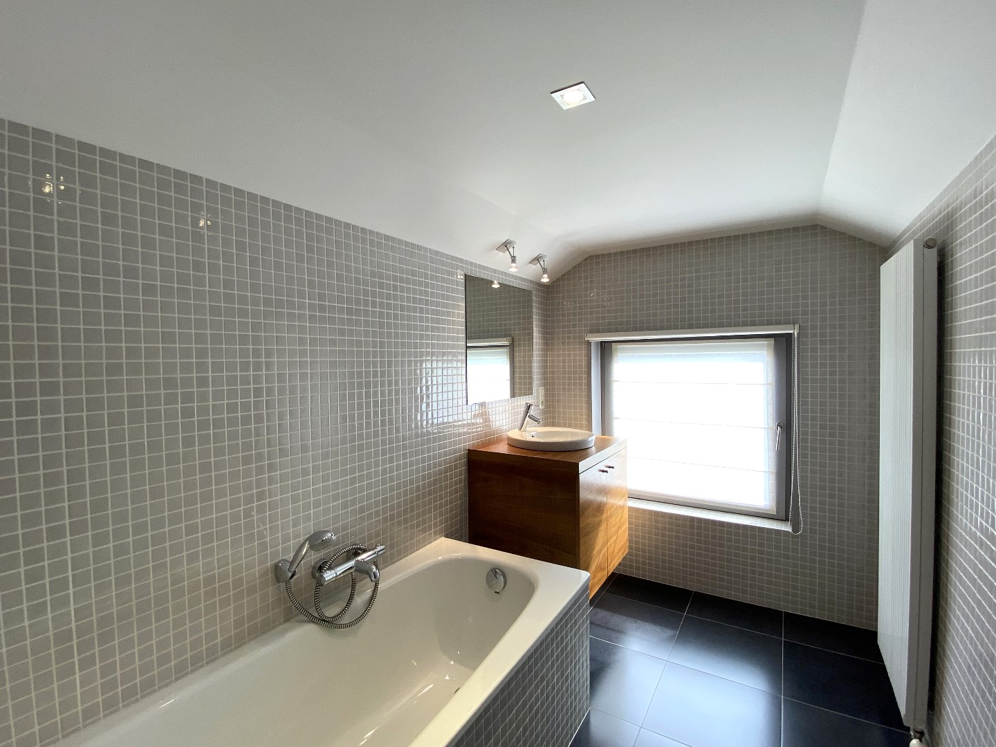 Verder is het gelijkvloers voorzien van een 3 slaapkamers, waarvan 1 met ingemaakte kast en een kelder. Via een vaste trap kan u het verdiep betreden voorzien van een zolderruimte en een tweede badkamer met ligbad en lavabomeubel.