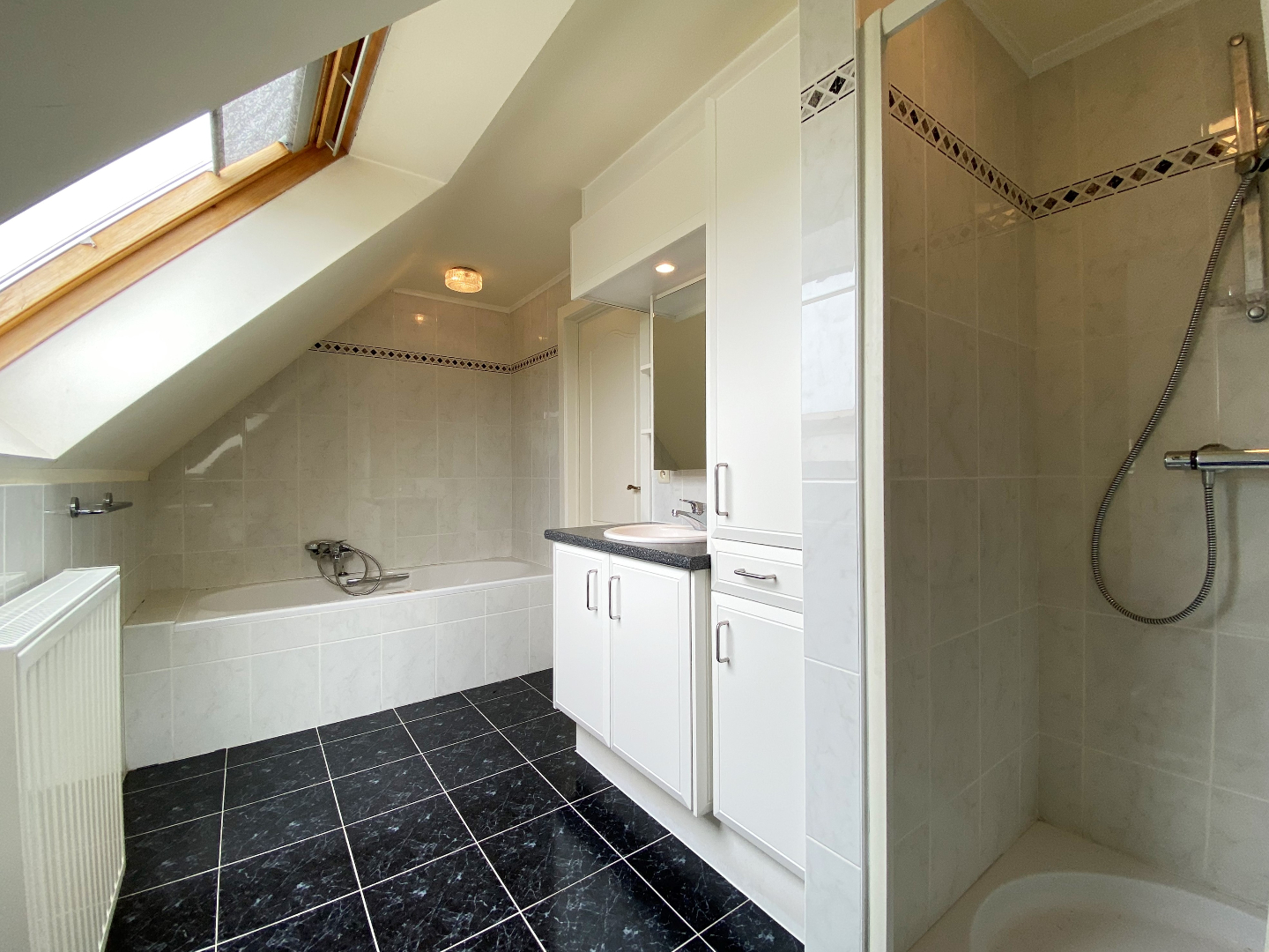 Via de vaste trap komt u op het verdiep terecht. Het verdiep omvat 4 slaapkamers en een badkamer met lavabomeubel, douche en ligbad. Via slaapkamer 2 kan u de berging betreden waar de verwarmingsketel staat. Tot slot heeft is er nog een geïsoleerde zolder.