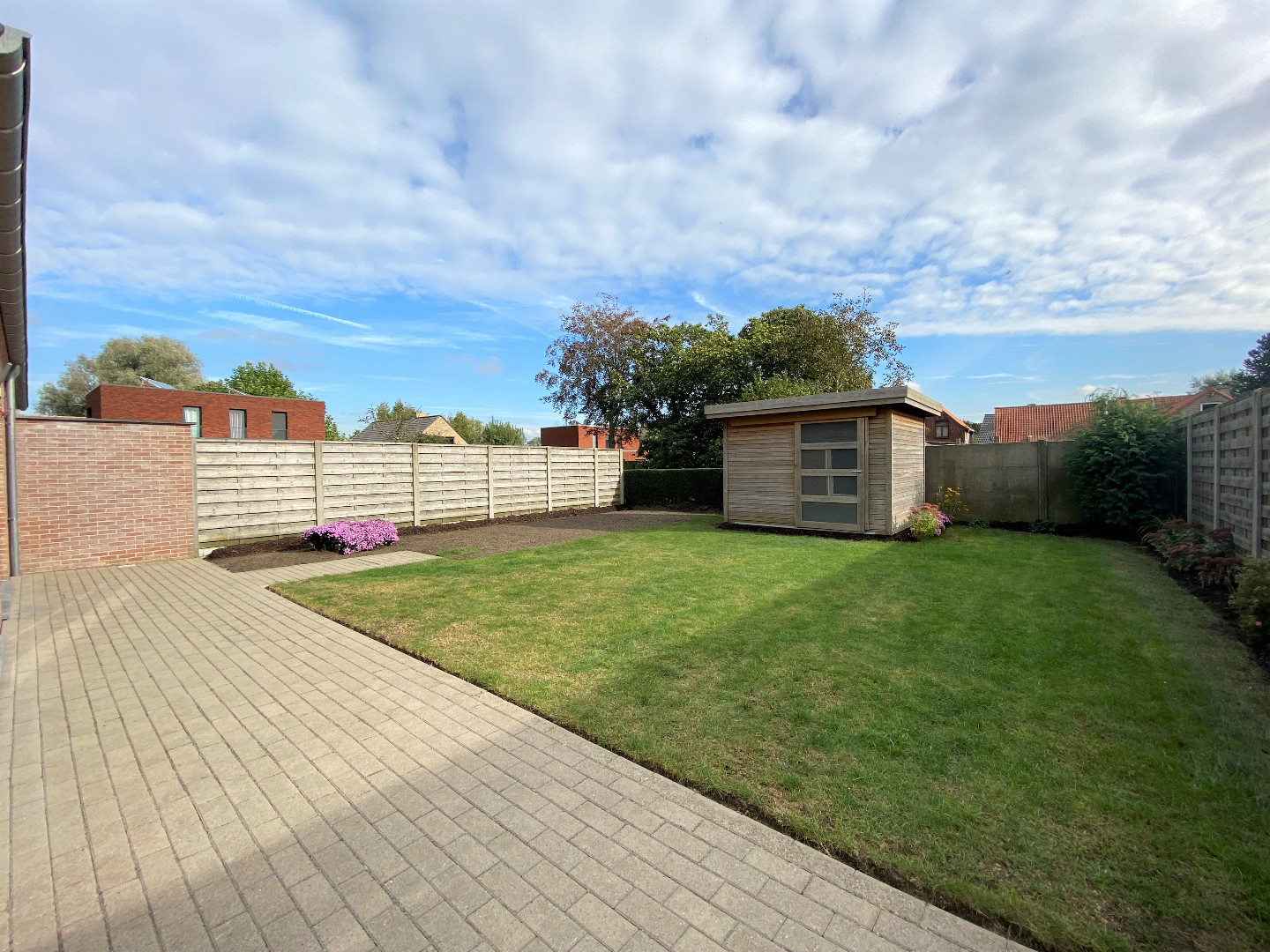 De woning heeft een voortuin met siergrassen en beschikt tevens over 2 opritten. De tuin is volledig omheind m.a.w. kindvriendelijk! En beschikt over een praktisch tuinhuis.