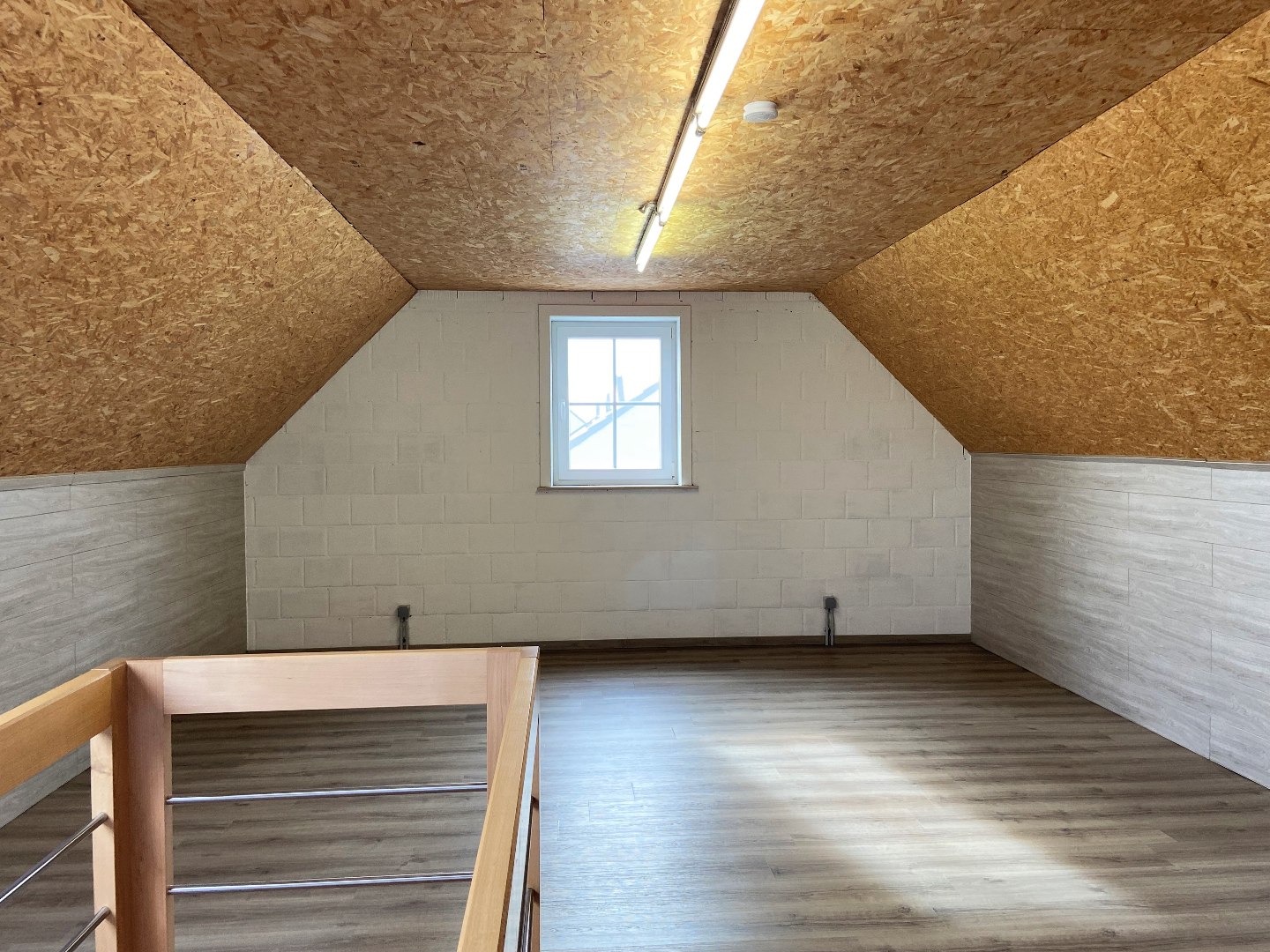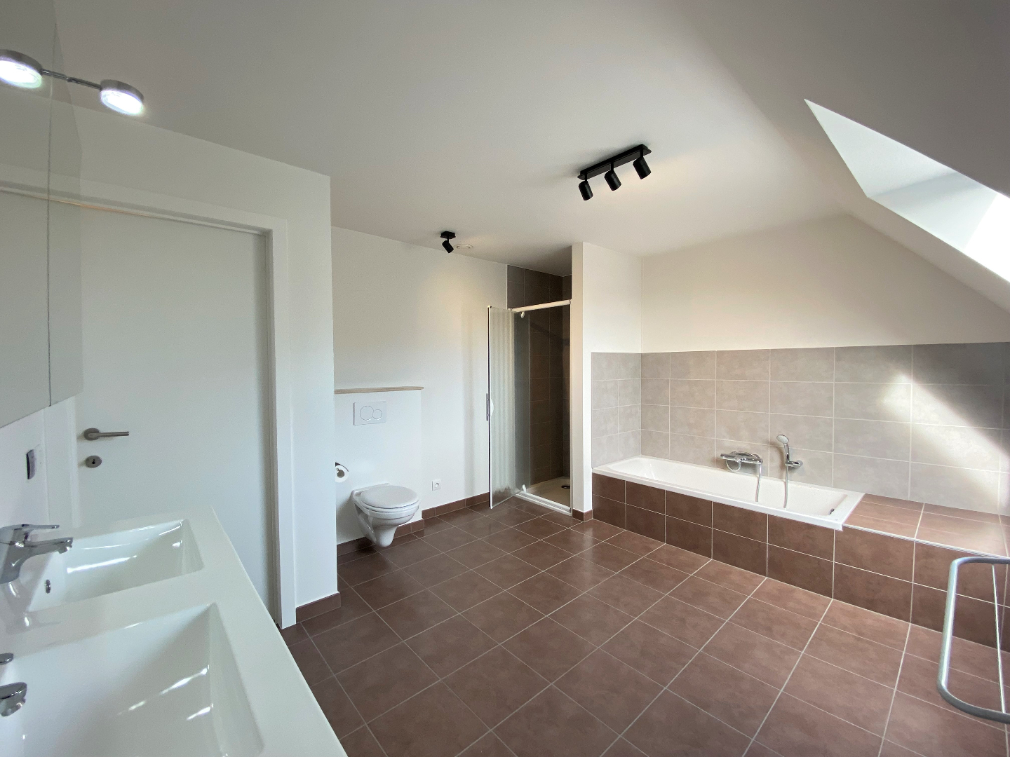 Op het eerste verdiep is er een overloop die toegang biedt tot maar liefst 3 slaapkamers. De ruime badkamer is voorzien van dubbele lavabo met meubel, toilet, ligbad en douche. Via een vaste trap komt u terecht op de volledig ingerichte zolderverdieping.