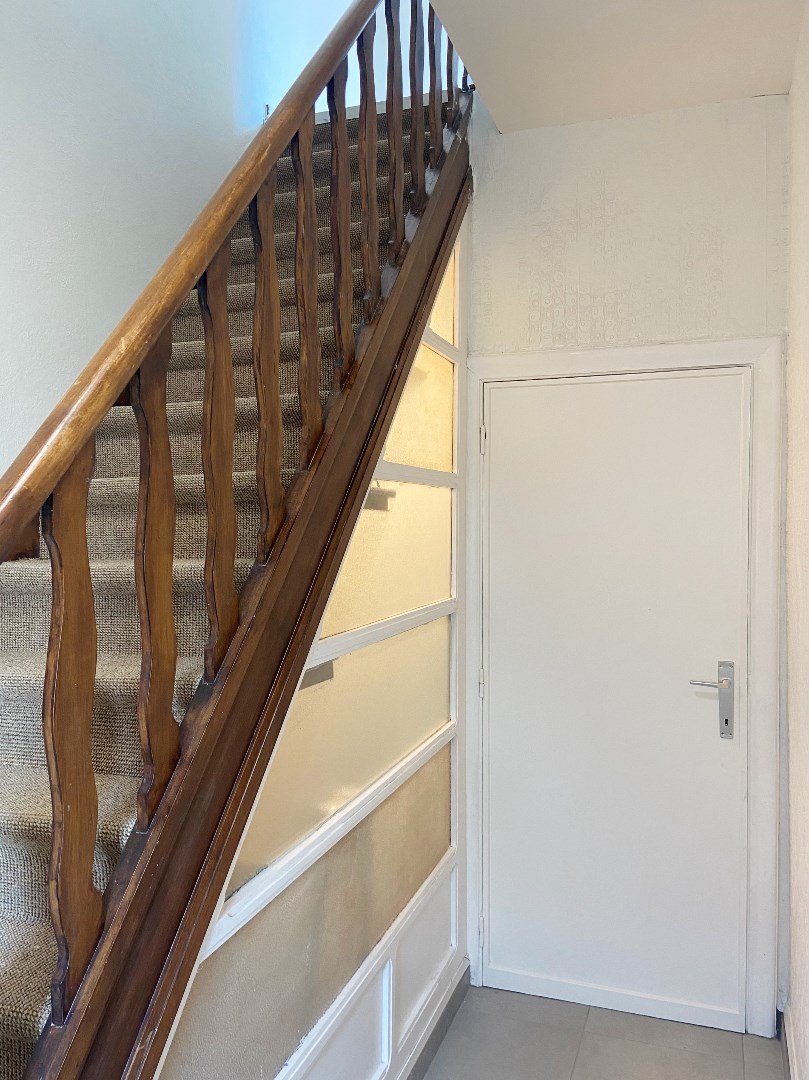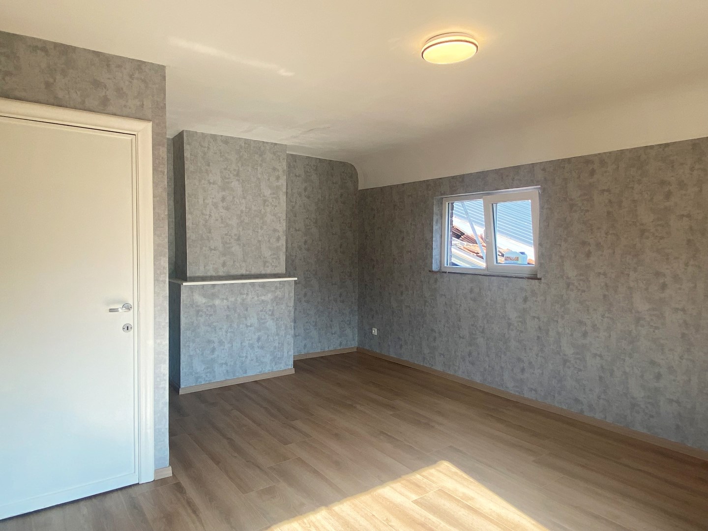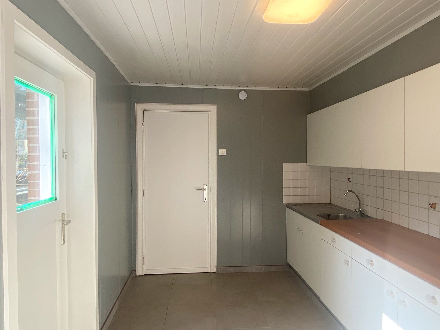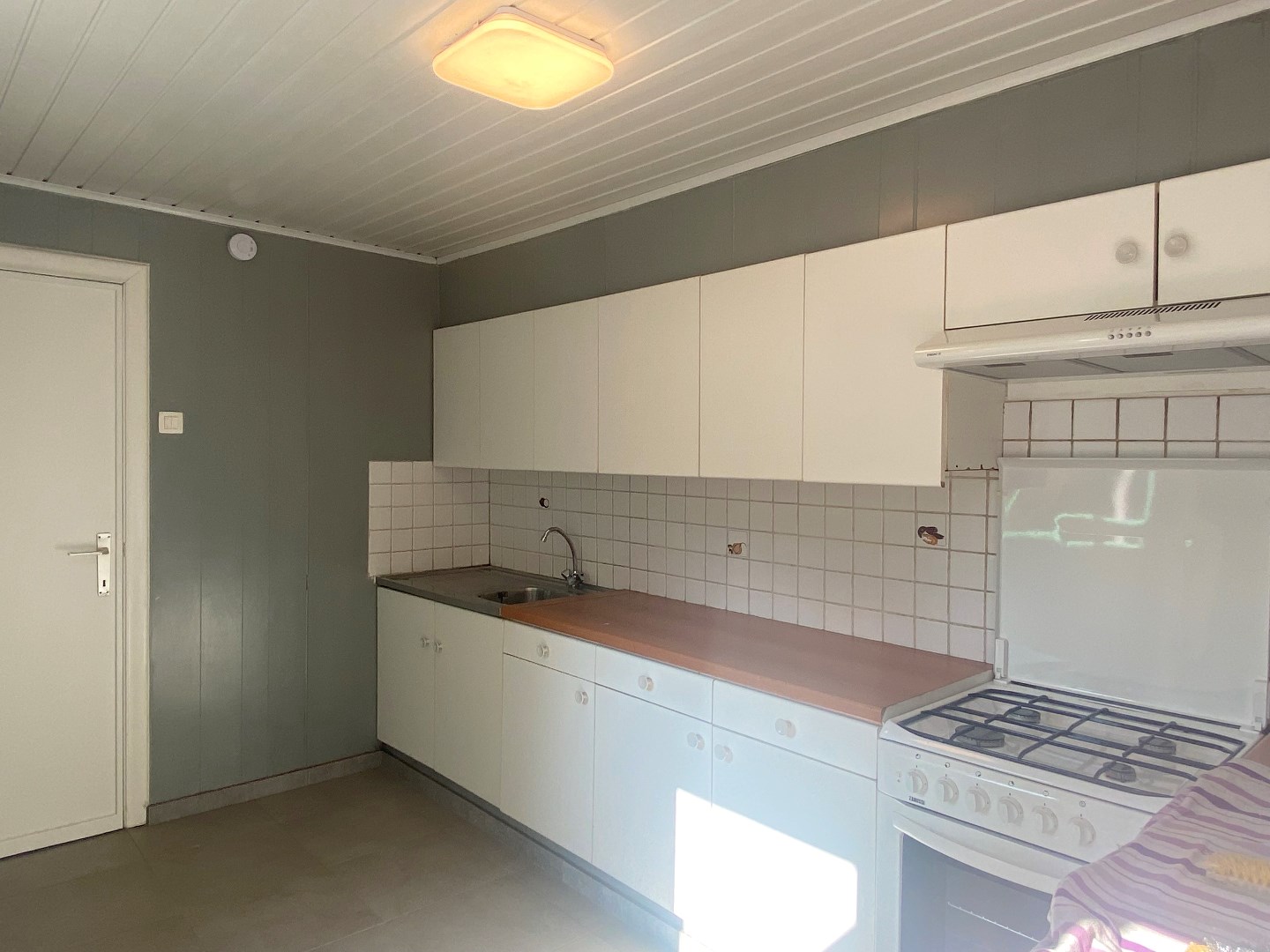 U komt binnen via de inkomhall. De inkomhal biedt toegang tot de leefruimte met aansluitend een kelderberging. Verder omvat de woning een keuken met fornuis en dampkap. Via de keuken kan u het terras betreden. Dit zal klaar zijn in september. Er wordt ook nog een tuinberging voorzien. Naast de keuken bevindt zich de vernieuwde badkamer met douche, lavabo en toilet. In de badkamer is er een aansluiting voor de wasmachine.
