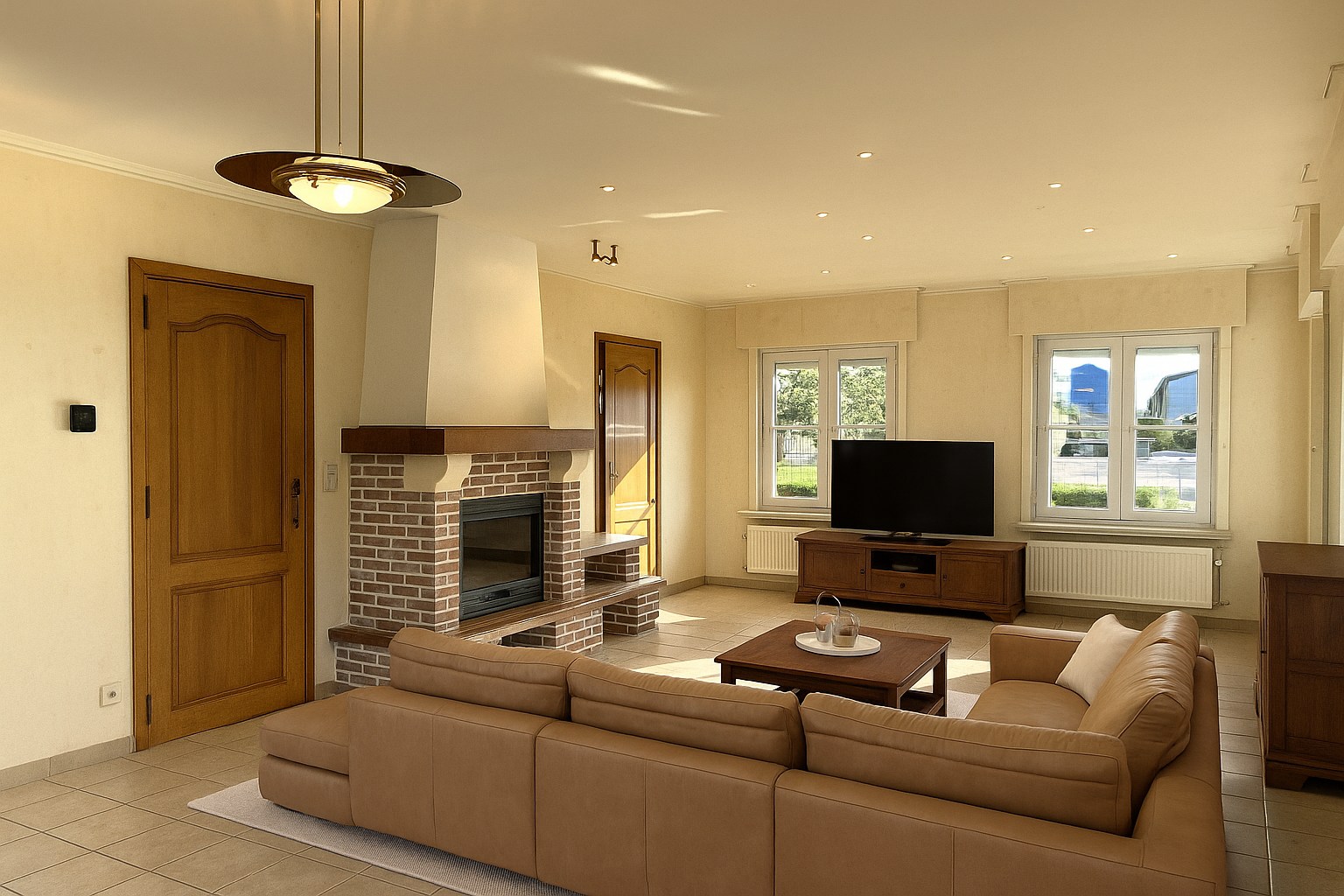 U komt binnen via de inkomhal met trappenhal, die toegang verleent tot het apart toilet, berging en leefruimte. Verder komt u binnen in de lichtrijke leefruimte met sierhaard. De leefruimte geeft uit met zicht op de tuin. Via de leefruimte bereikt u de geïnstalleerde keuken oven | koelkast | dubbele spoelbak | elektrische kookplaat | dampkap | oven. Vervolgens een hall die toegang verleent tot de badkamer, 2 slaapkamers en de garage. De inpandige garage heeft een automatische poort.