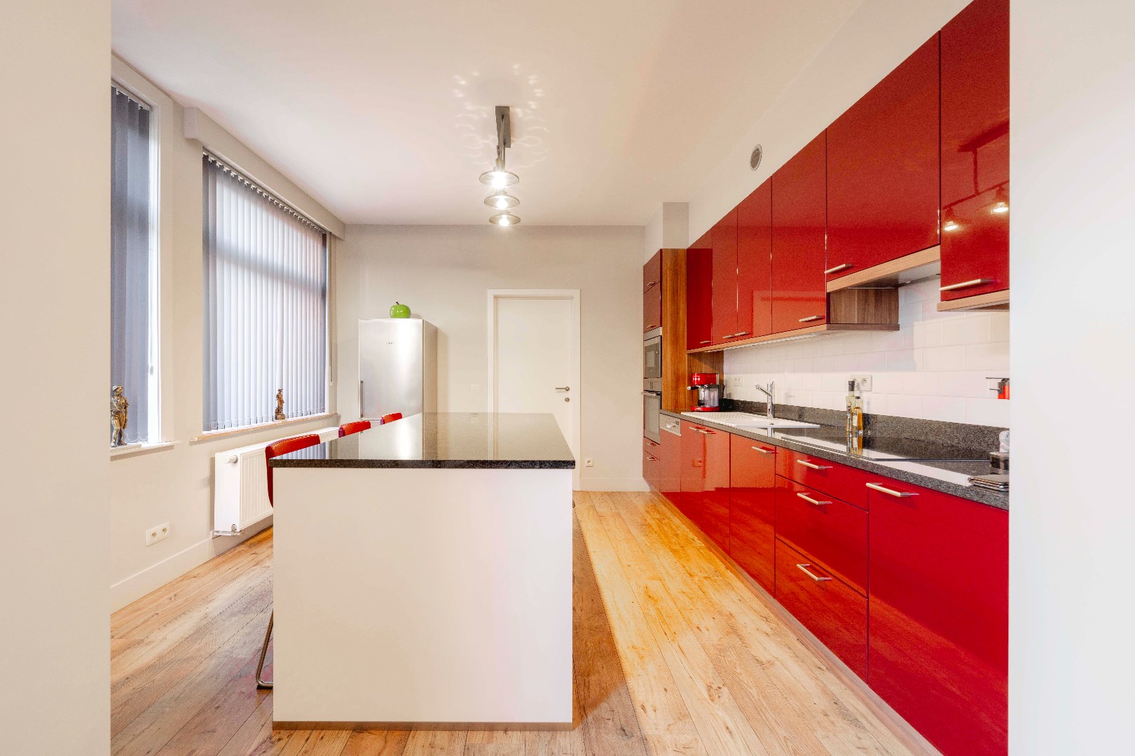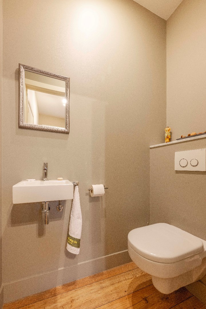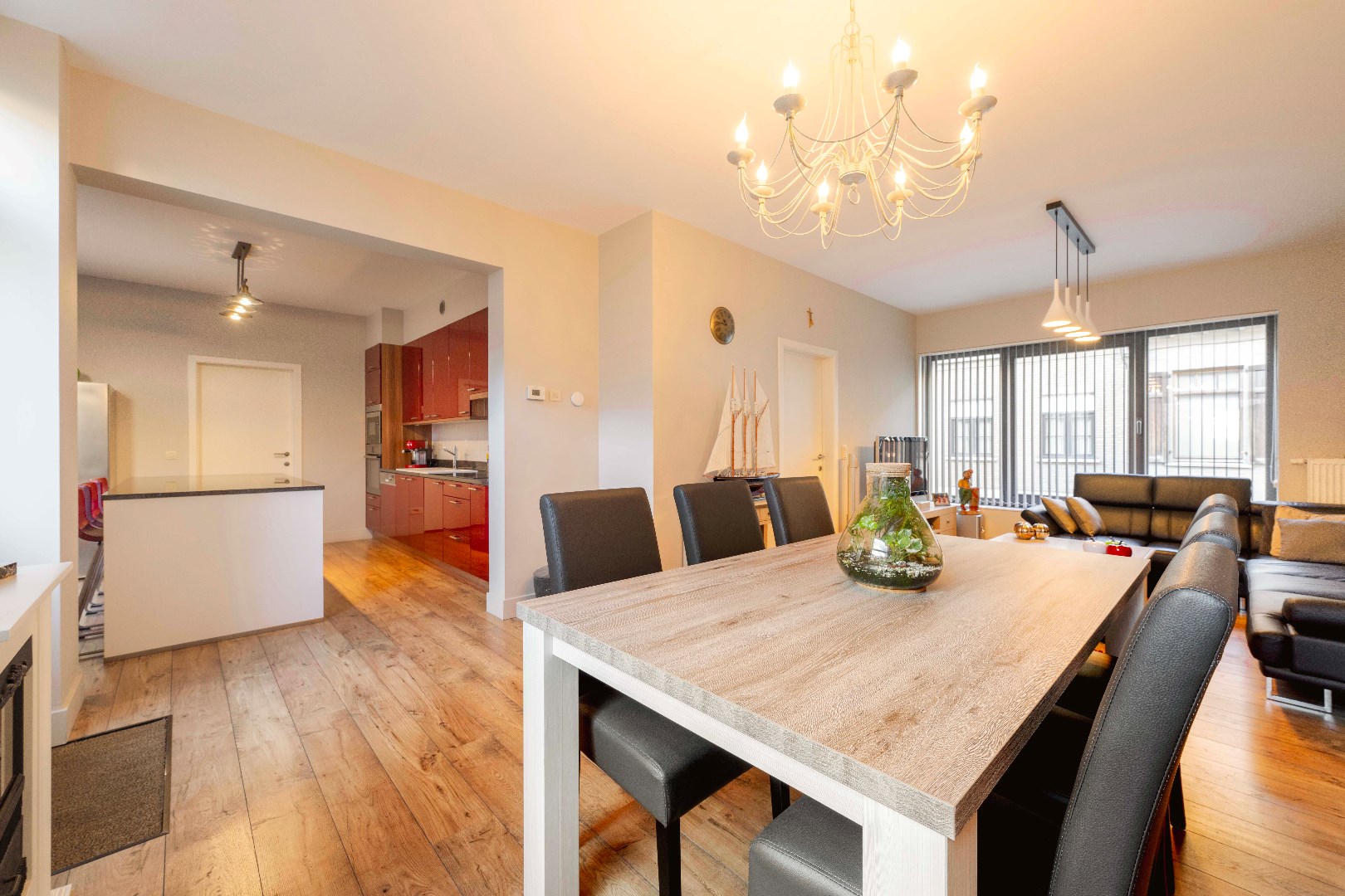 U komt binnen via de inkomhal met apart gastentoilet. Verder is er directe toegang tot de lichtrijke leefruimte met zit- en eethoek. Aansluitend is er de open ingerichte keuken (kookplaat | dampkap | spoelbak | vaatwasser | oven | microgolf) met eiland en directe toegang tot het terras vanuit living/keuken.
