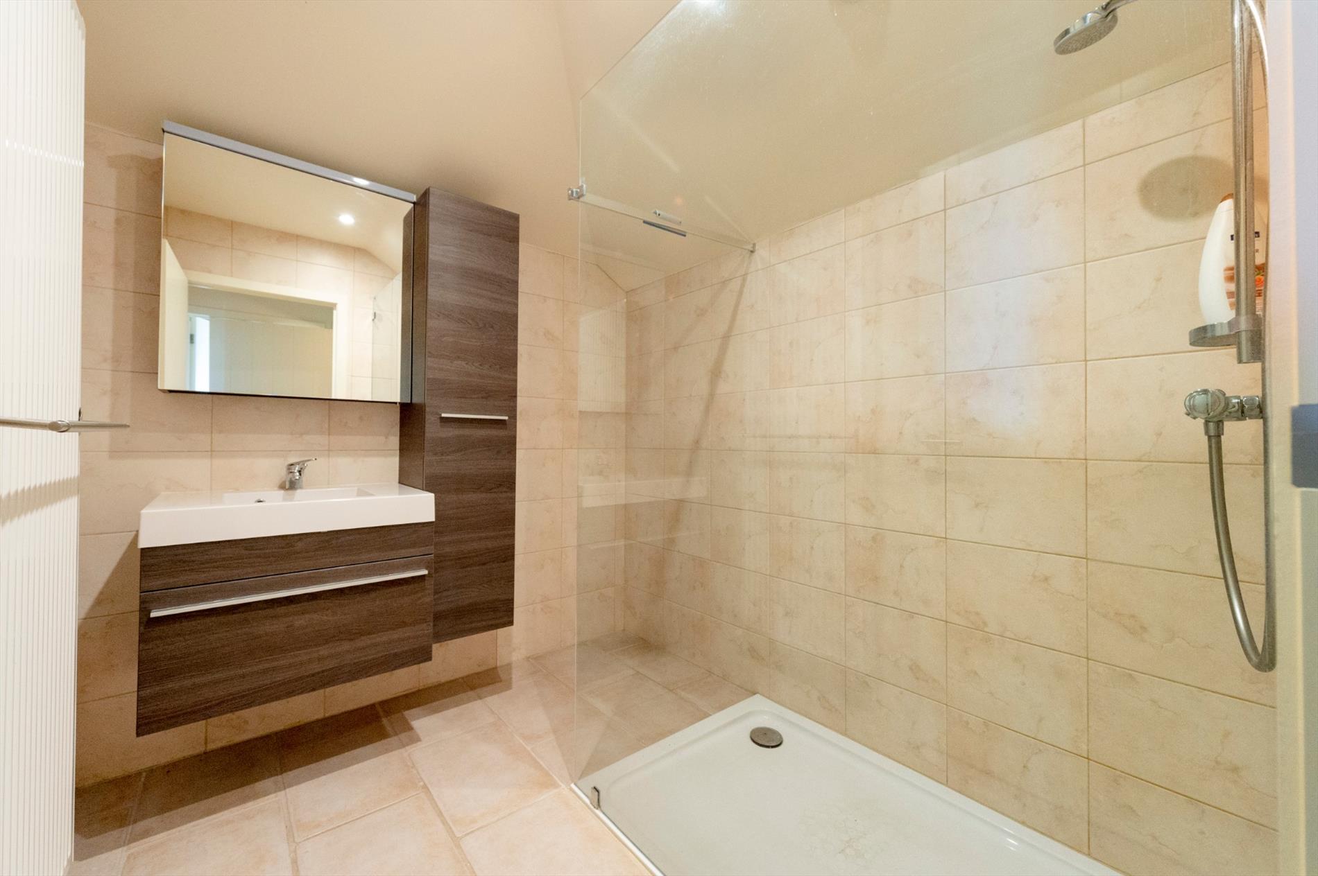 Via de nachthall komt U in de ruime slaapkamer (16 m²), apart toilet en prachtige badkamer (lavabo met meubel, inloopdouche).
