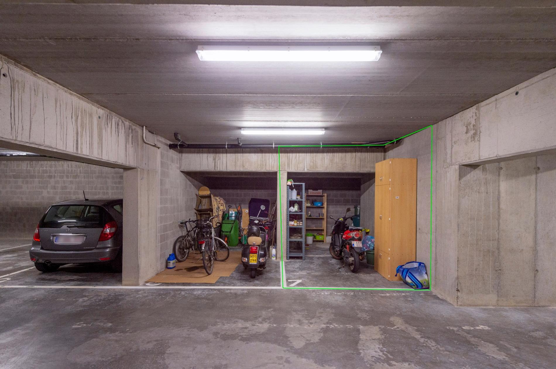 Via de lift kan U tot in de kelderverdieping. Daar beschikt U over een kelderberging (8 m²) alsook een autostaanplaats. Via de ruime automatische poort hebt U voldoende ruimte om vlot te kunnen parkeren.