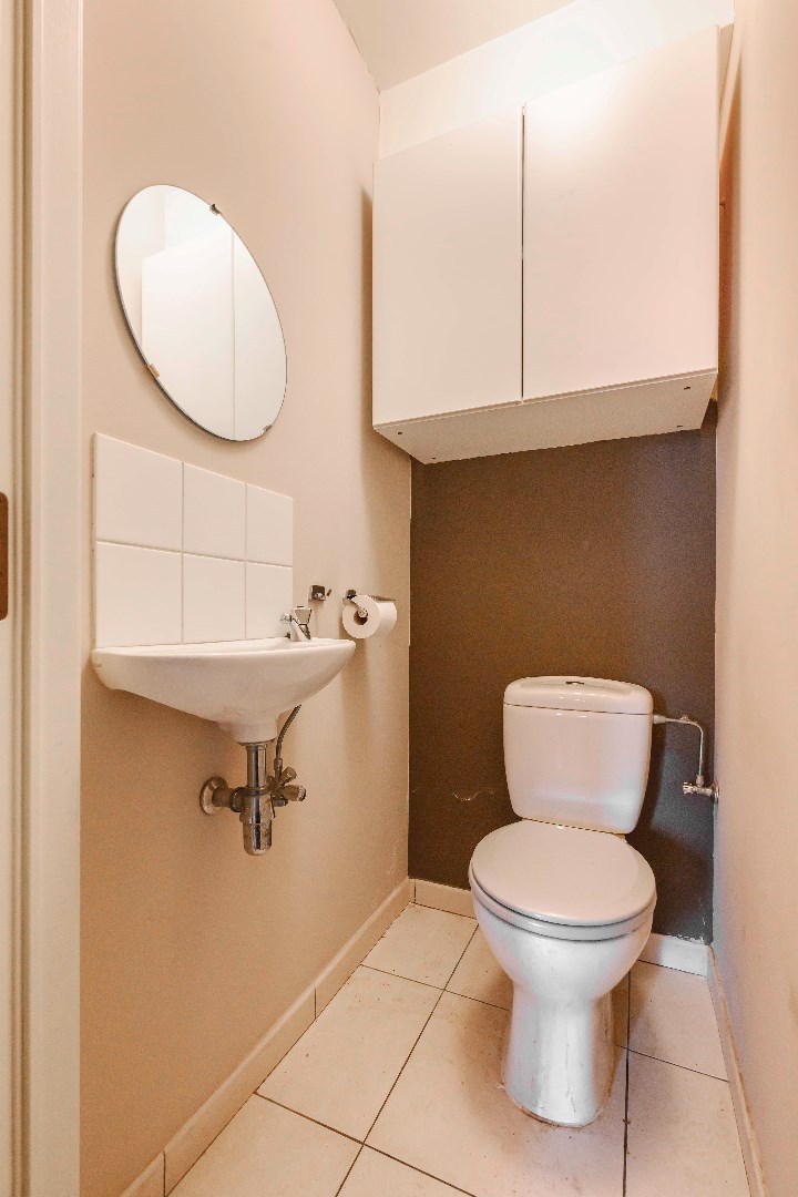 Het appartement is gelegen op de eerste verdieping. U komt binnen via de inkomhal met apart toilet. Tevens is toegang tot de lichtrijke leefruimte (28 m²) met toegang tot het terras en aansluitend is er de open ingerichte keuken 7 m² (kookplaat | dampkap | spoelbak | frigo | oven). Handig is ook de berging (2,50 m²) met aansluiting voor wasmachine en droogkast.