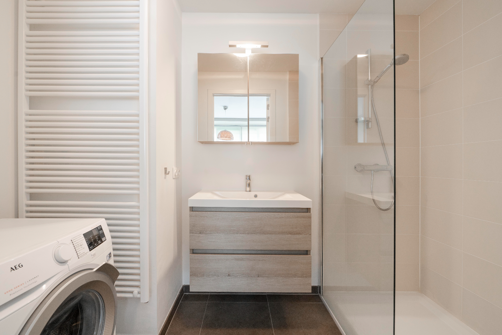 U komt het appartement binnen via de inkomhal met apart gastentoilet. Verder komt U terecht in de lichtrijke leefruimte (28 m²) die toegang biedt tot de tuin/terras. Door de grote raampartij is er natuurlijk lichtinval en geniet U van direct contact met de tuin vanuit de leefruimte. Aansluitend is er de ingerichte keuken (natuursteen werkblad | kookplaat | dampkap | spoelbak | frigo met diepvriesvak | combi oven). Praktisch is de aansluitende berging (4 m²). Vervolgens beschikt het appartement nog over een badkamer (inloopdouche | aansluiting voor wasmachine en droogkast | lavabo met meubel) en als laatste de tweepersoons slaapkamer (10,50 m²).