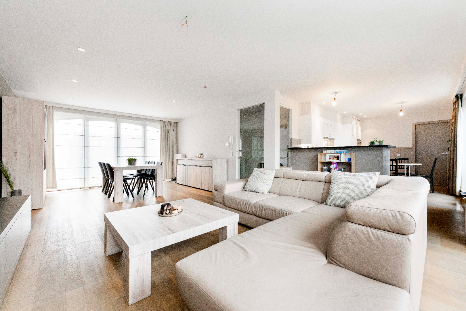 Via de glazen deur komt U de lichtrijke leefruimte binnen. Deze is voorzien van een parket bevloering en een op maat gemaakt tv-meubel. De leefruimte heeft directe toegang tot het ruime terras zowel aan de voorkant als op de achtergevel. Verder is er de open keuken, volledig ingerichte met toestellen (kookplaat | dampkap | frigo | dubbele spoelbak | vaatwasser | oven | microgolf). Aansluitend is er de praktische berging alsook een ingerichte bijkeuken. Het appartement heeft in totaal drie slaapkamers (18,5m² | 15,5m² | 10m²), een gastentoilet en een volledig vernieuwde badkamer (dubbele lavabo met een op maat gemaakt wandmeubel, ligbad en inloopdouche). Deze eigendom omvat tevens ook een zolder (90m²).
