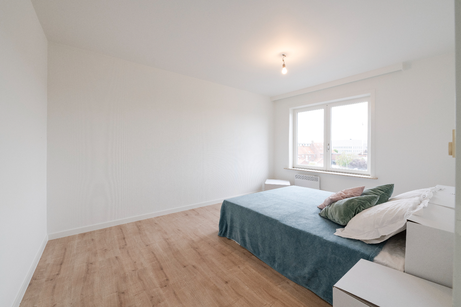 Het appartement in gelegen op de derde verdieping en omvat een inkomhal met een ingebouwde kast en praktische berging 4 m². Vervolgens is er de lichtrijke leefruimte met zit- en eethoek (22 m²) verder is er de gesloten ingerichte keuken 9 m² (kookplaat | dampkap | combi-oven | dubbele spoelbak | vaatwasser | frigo) met aansluitend een praktische berging 2,50 m². Zowel de leefruimte als de keuken bieden U toegang tot het terras 6,50 m². Via de nachthall is er toegang tot de badkamer (toilet | dubbele lavabo met meubel | inloopdouche) en de twee slaapkamers (14 m² | 10,50 m²)