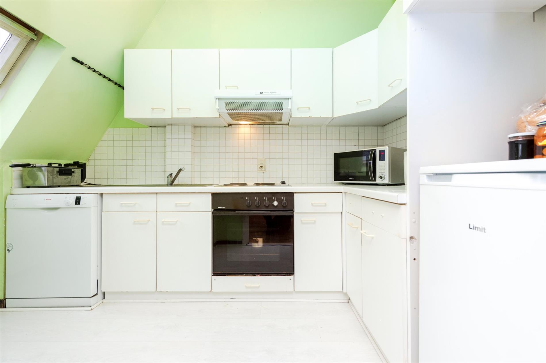 De leefruimte kan U betreden via een dubbele deur voorzien van glas, de leefruimte zelf heeft grote glaspartijen waardoor deze zeer lichtrijk is. Aansluitend beschikt U over een gesloten ingerichte keuken met de nodige voorzieningen (oven, kookplaat, dampkap, vaatwasmachine, dubbele spoelbak en frigo). Daarnaast is er vanuit de leefruimte ook toegang tot de berging.
