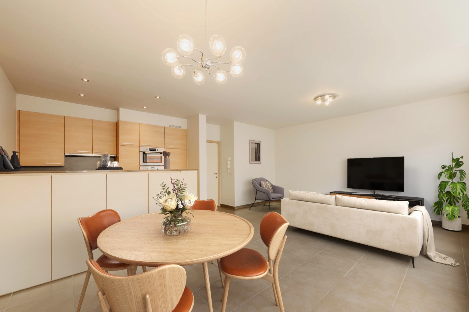 Het appartement is voorzien van een terras (4 m²) met buitenberging, ook is er mogelijk tot aankoop van een garage met geïsoleerde poort.