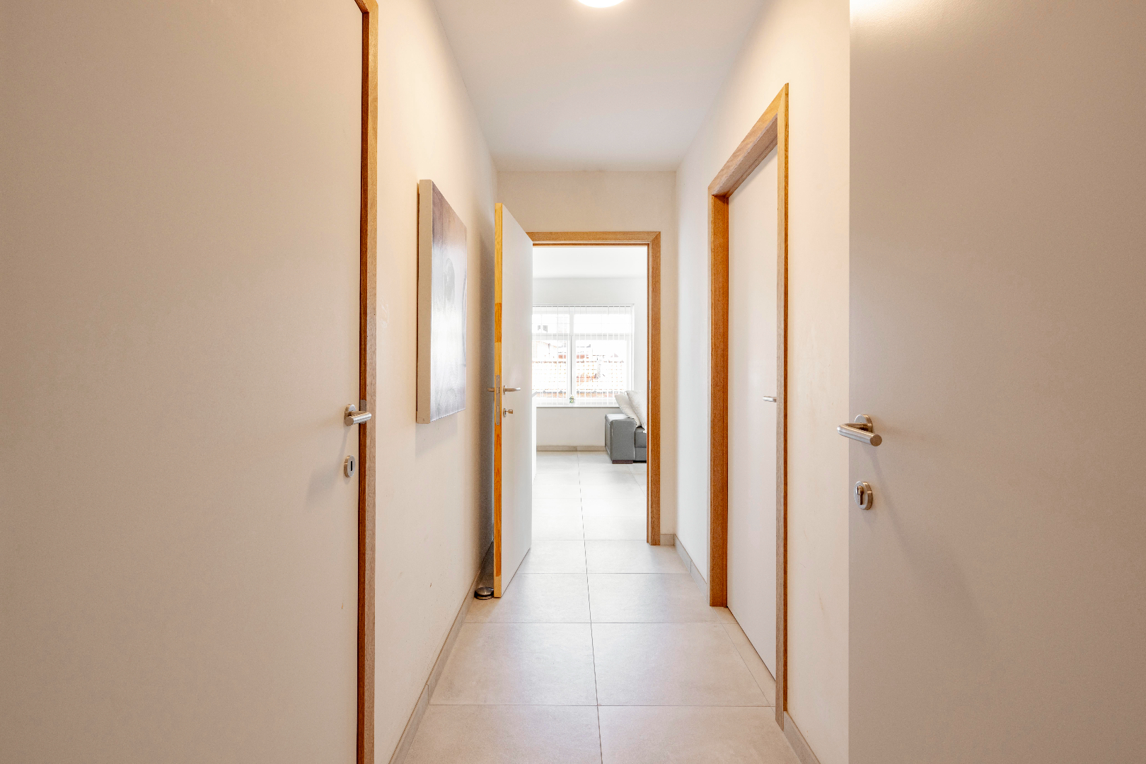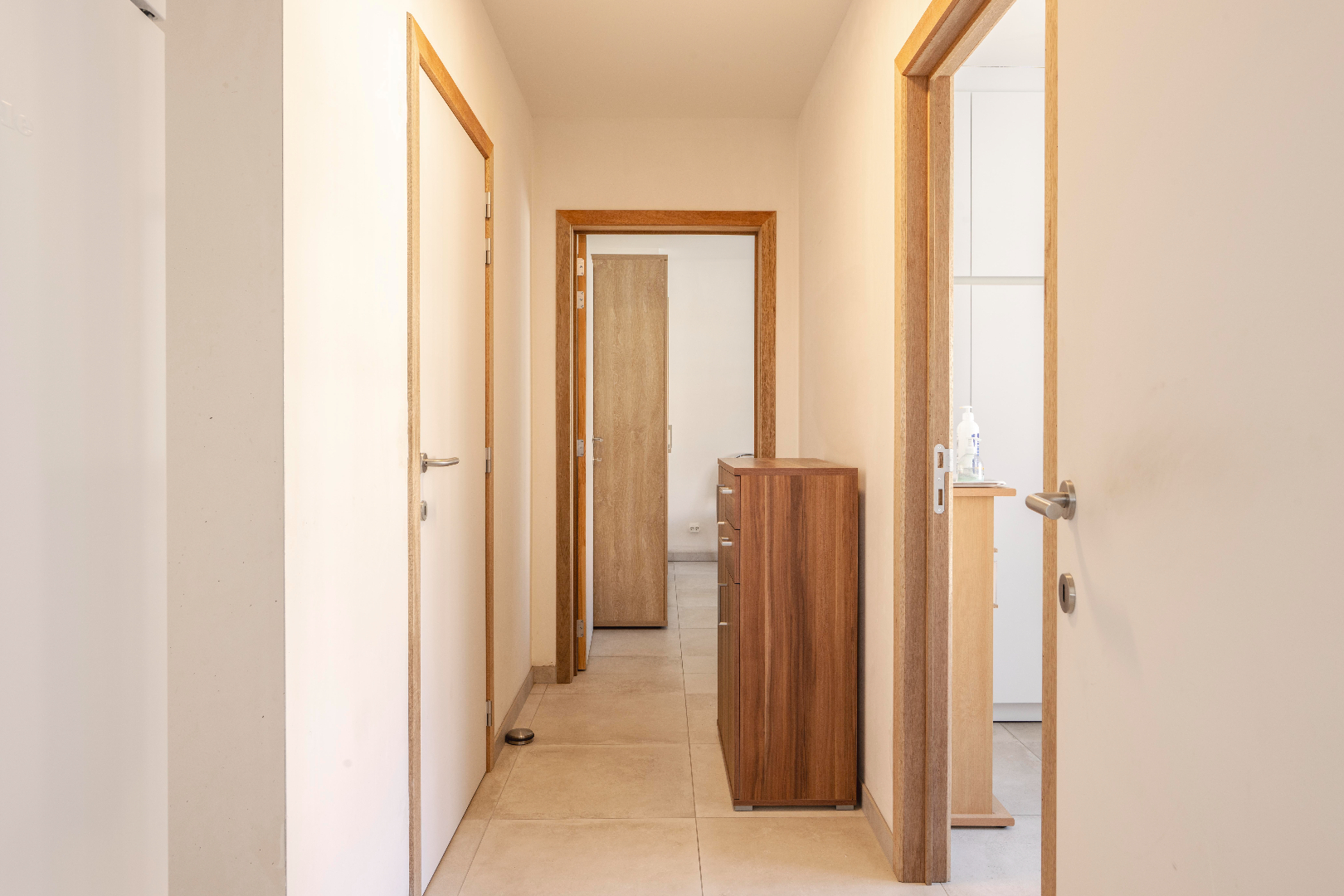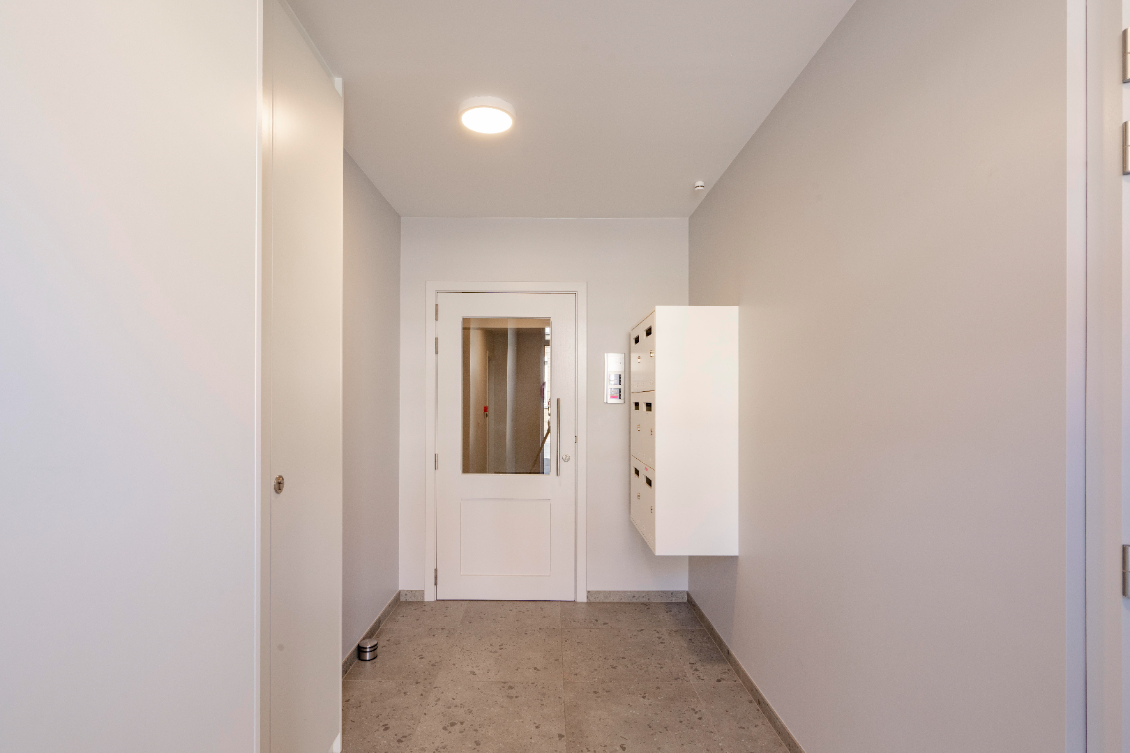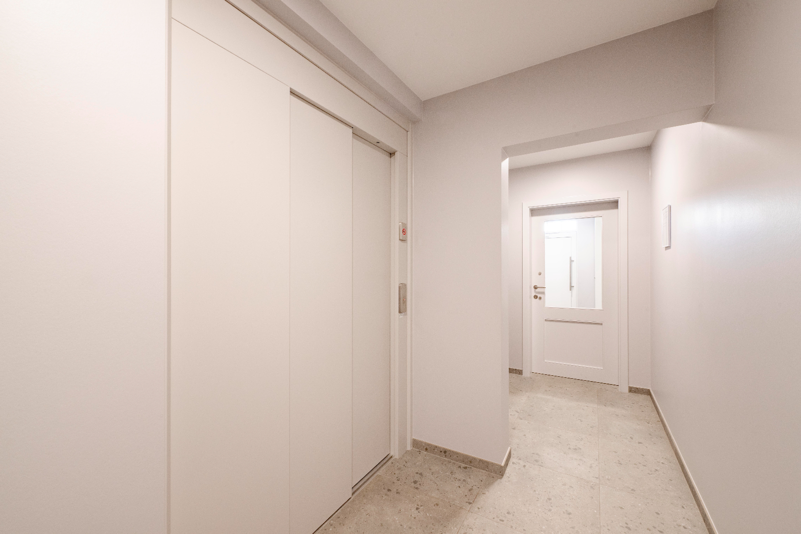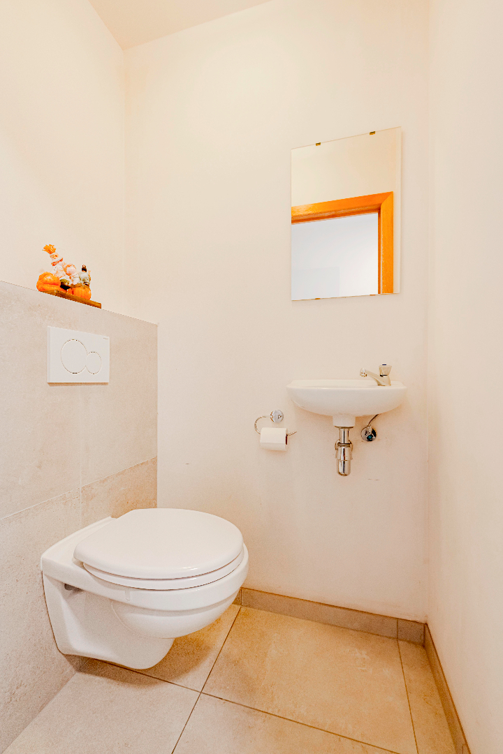 U komt de residentie binnen via de nette inkomhal met LIFT en trappenhal. U komt in het privé gedeelte binnen via de inkomhal met apart gastentoilet met lavabo. Hier is tevens ook de eerste slaapkamer (10,50 m²).
