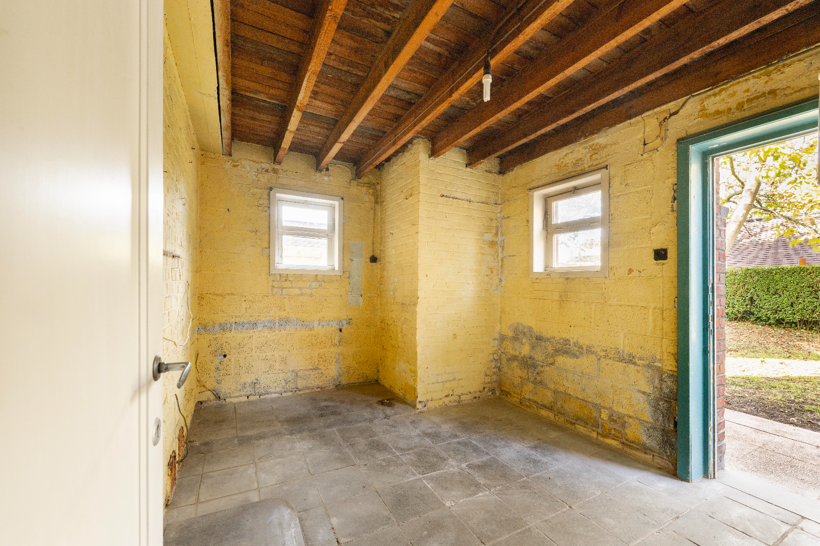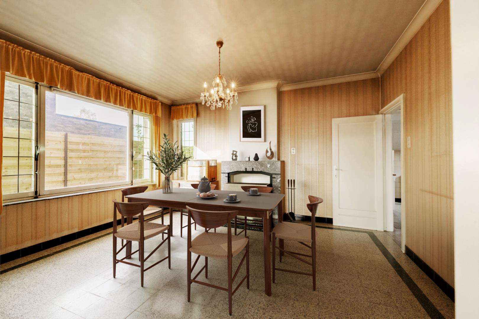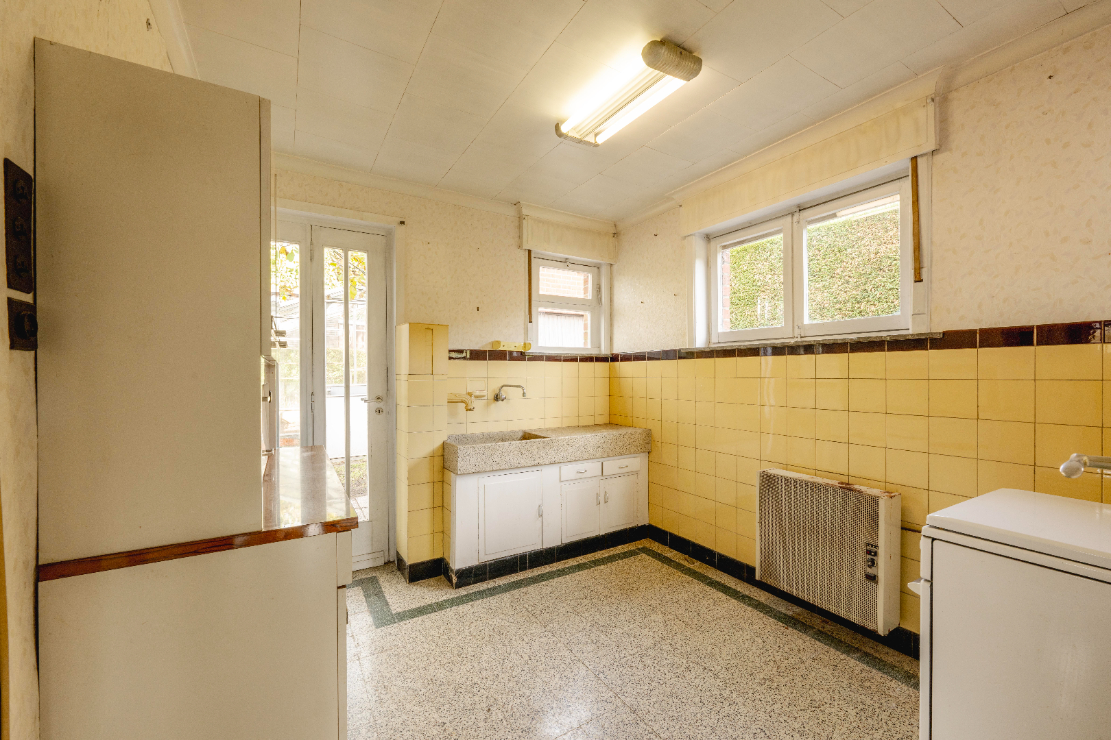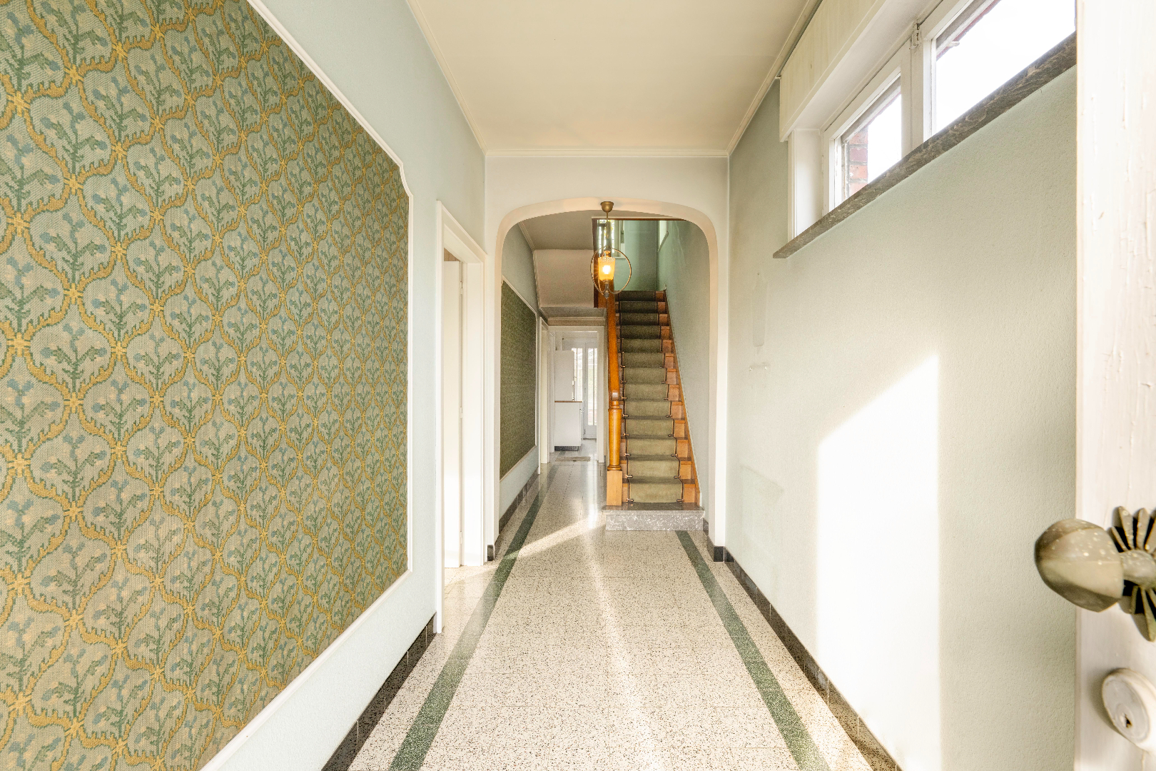 U komt deze karaktervolle woning binnen via de ruime inkomhal met aan de linkerkant toegang tot de leefruimte (30 m²). In deze ruimte is er veel lichtinval door de vele raampartijen. Vervolgens komt U terecht in de gesloten keuken (8 m²) met aansluitend de ruime achterinkom (12 m² | mogelijkheid tot uitbreiding tot leefkeuken) alsook toegang tot de praktische kelder.