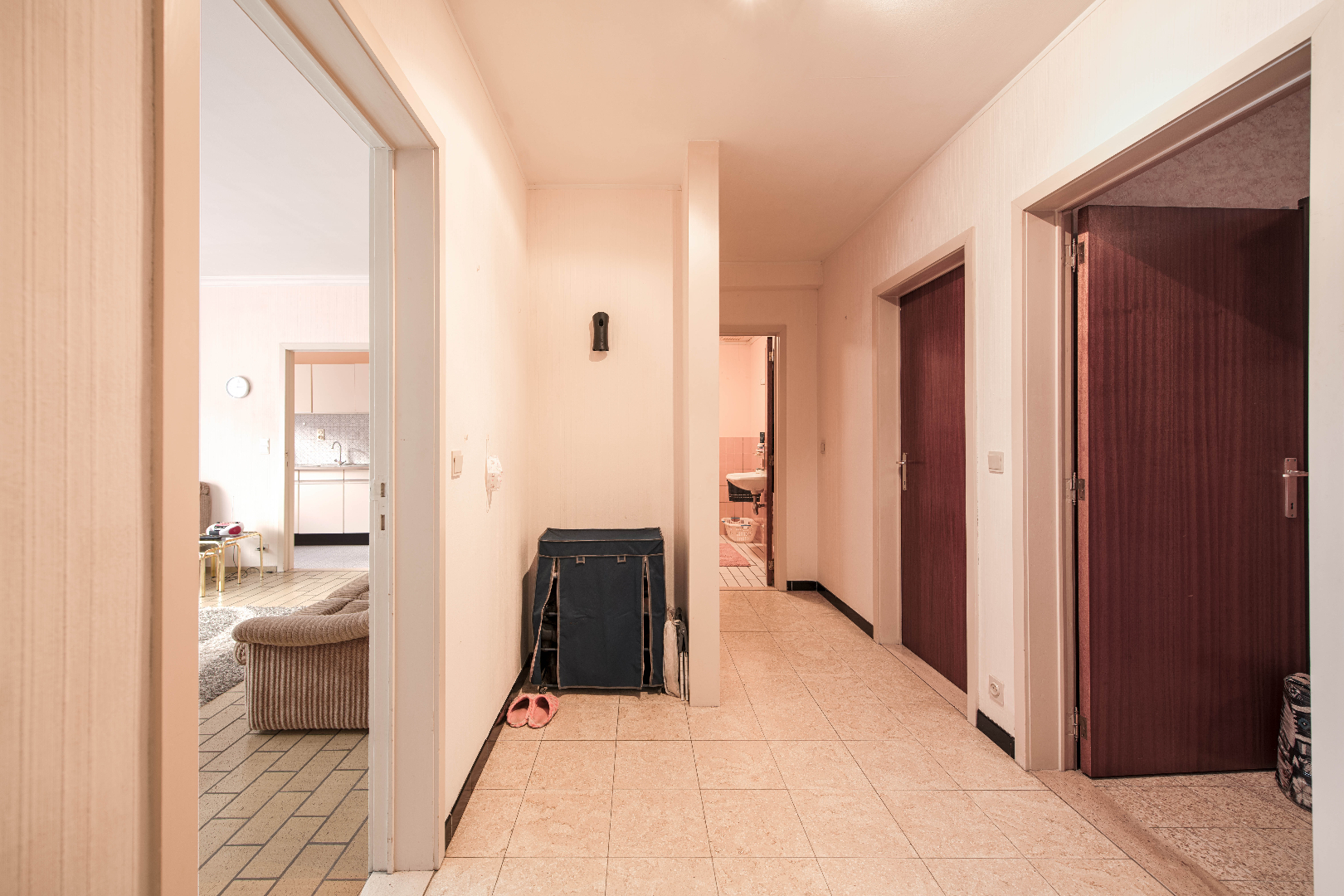 U komt binnen in de inkomhal. De inkomhal is centraal gelegen en biedt toegang tot het gastentoilet met handenwasser, badkamer, woonkamer (zithoek en eethoek) alsook de 2 slaapkamers. Via de woonkamer (24m²) heb je toegang tot de keuken deze omvat een gasfornuis | dampkap | oven | spoelbak | frigo. Naast de keuken is er een praktische berging. Via de inkomhal betreedt u de 2 ruime slaapkamers (16m² | 10m²) verder bevindt zich nog de badkamer (lavabo | bad | ***) In de kelderruimte is er vervolgens nog een berging van (3,50m²) voorzien.