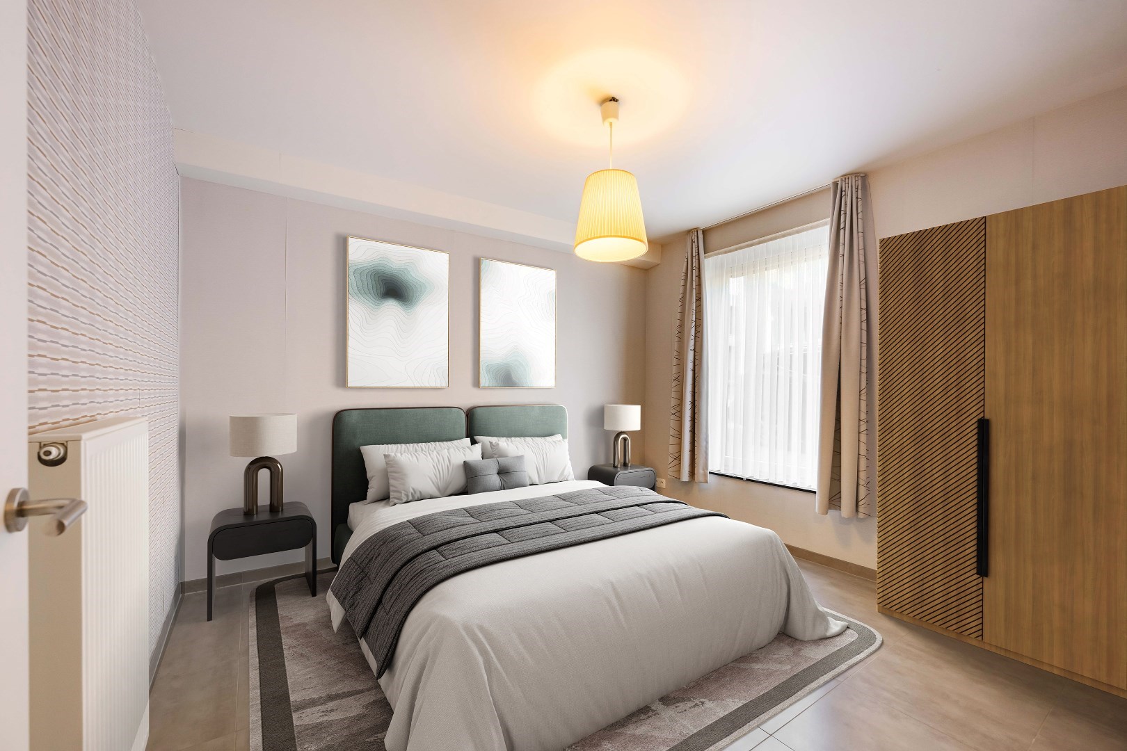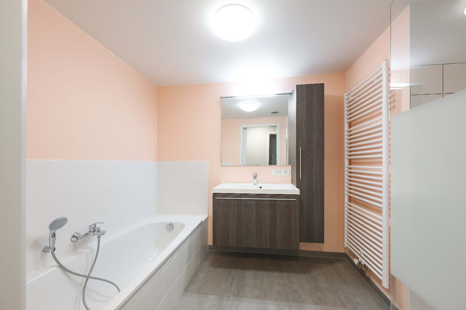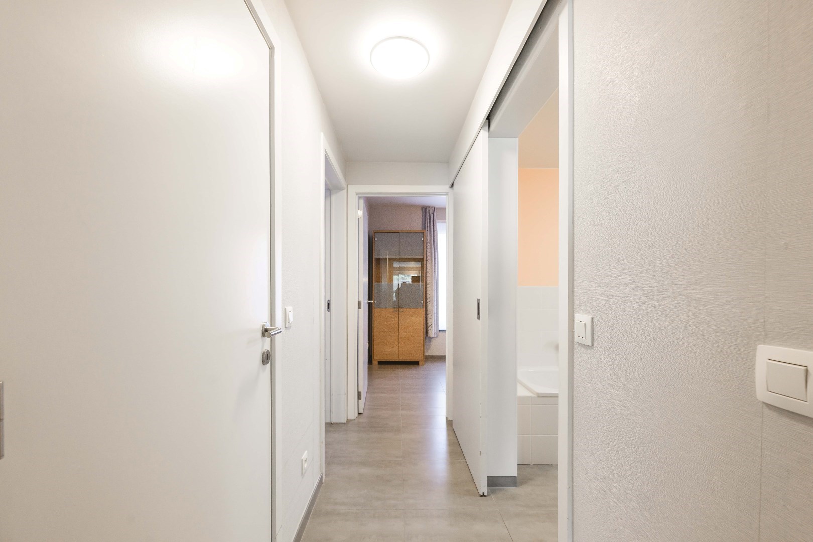 Via de nachthall is er toegang tot het apart gastentoilet, en de ingerichte badkamer (ligbad | inloopdouche en lavabo met meubel). Het appartement beschikt verder nog over 2 comfortabele slaapkamers.