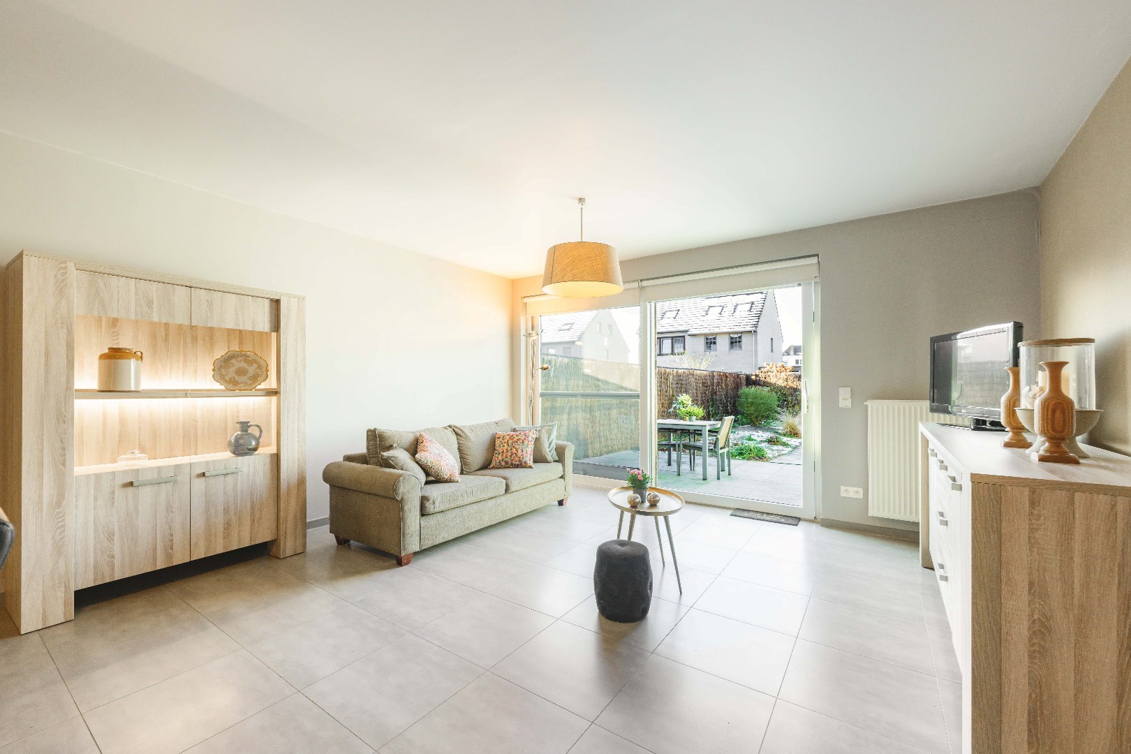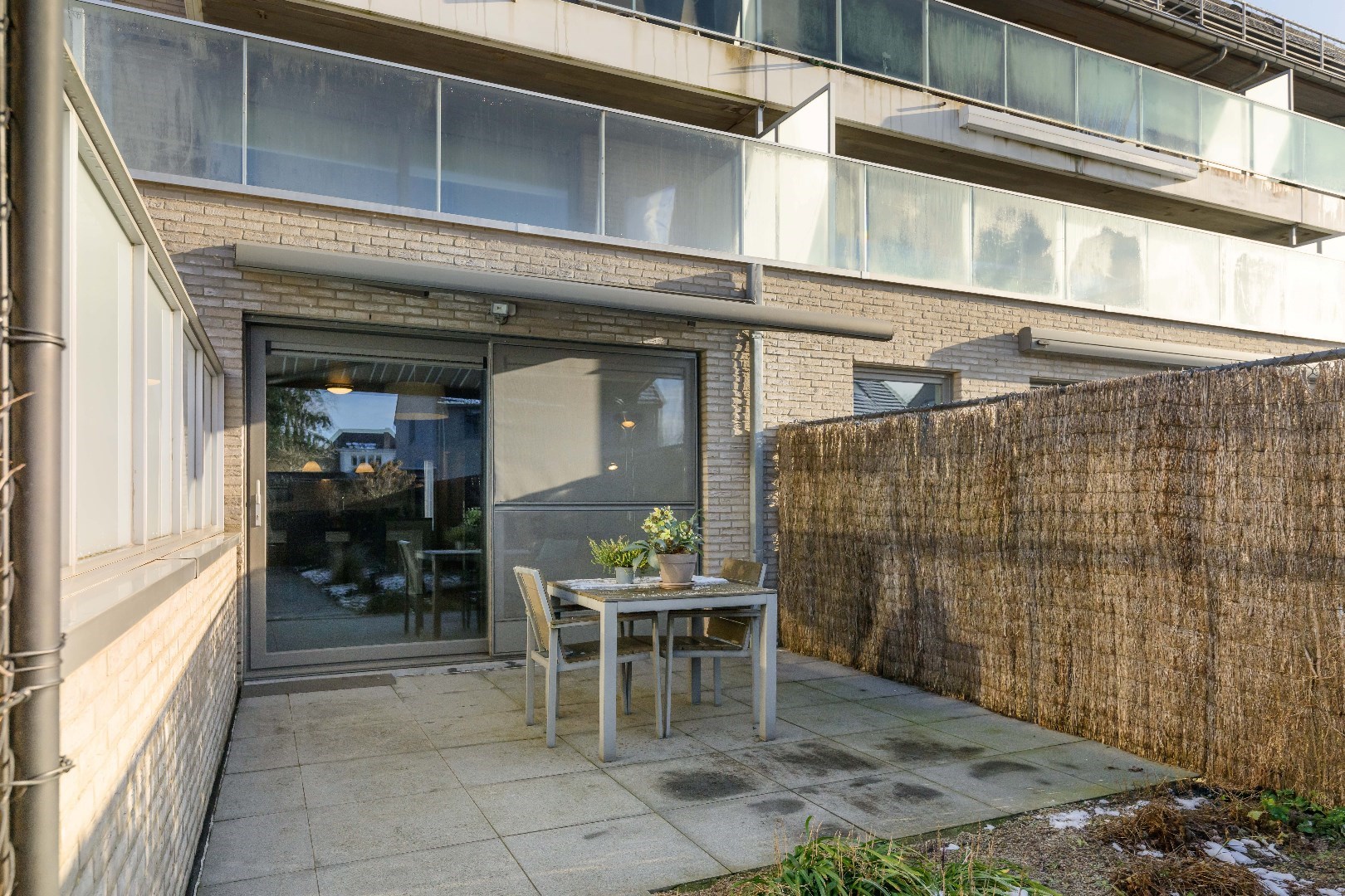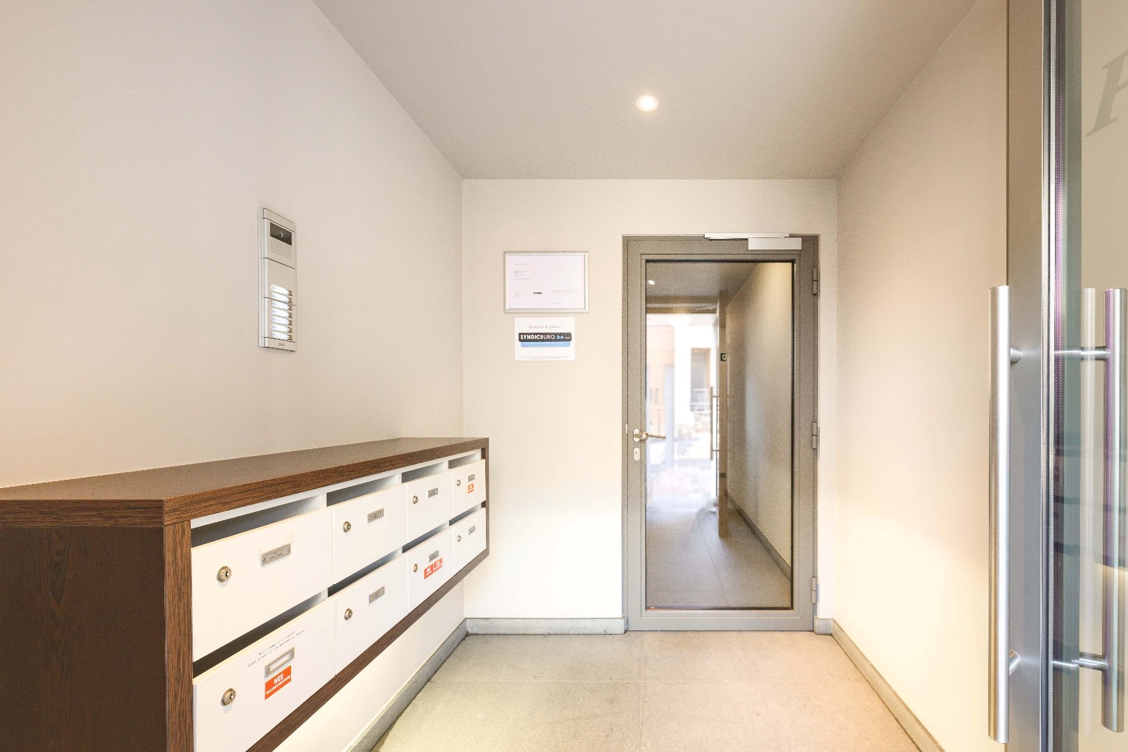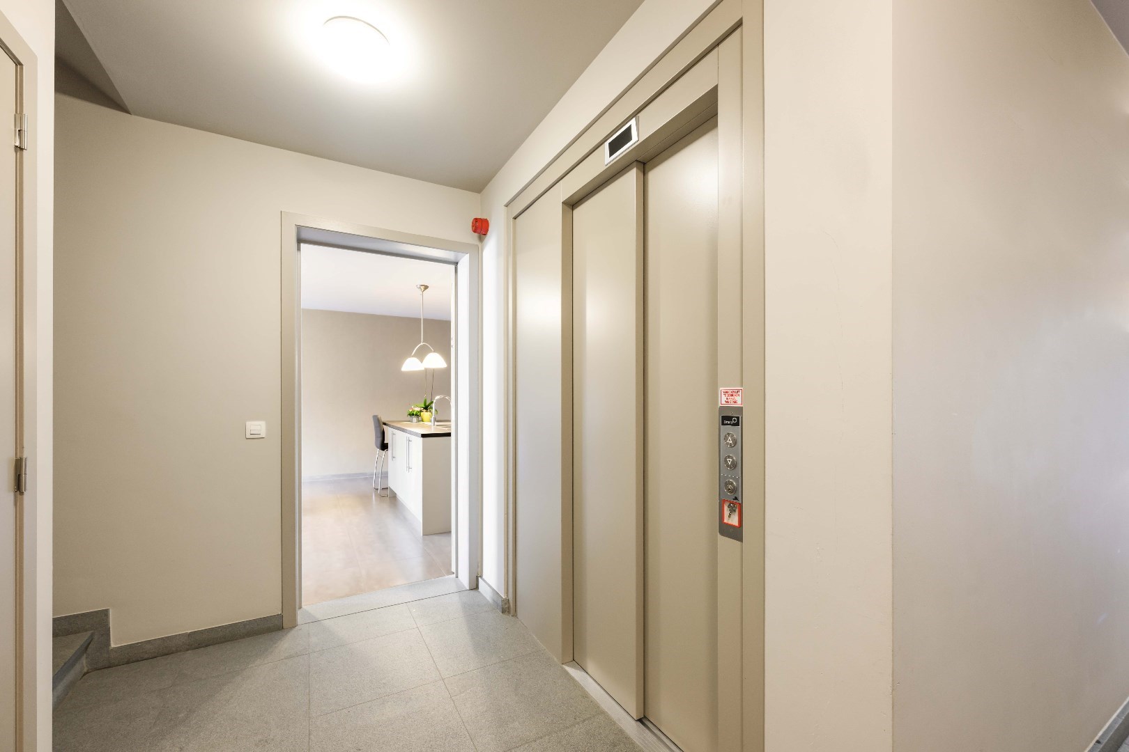 Bij binnenkomst betreedt u de gemeenschappelijke inkomhal met lift en trappenhal. Het appartement bevindt zich op de gelijkvloerse verdieping. U komt de eigendom binnen in de lichtrijke leefruimte met directe toegang tot het terras en de tuin.