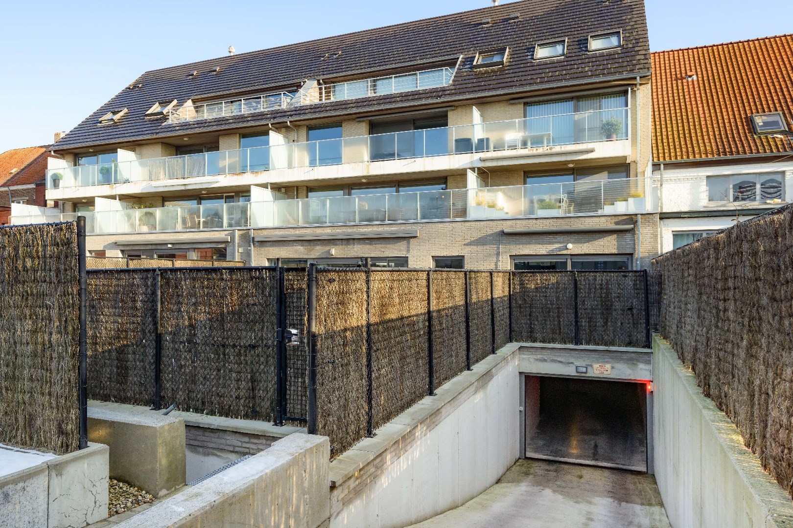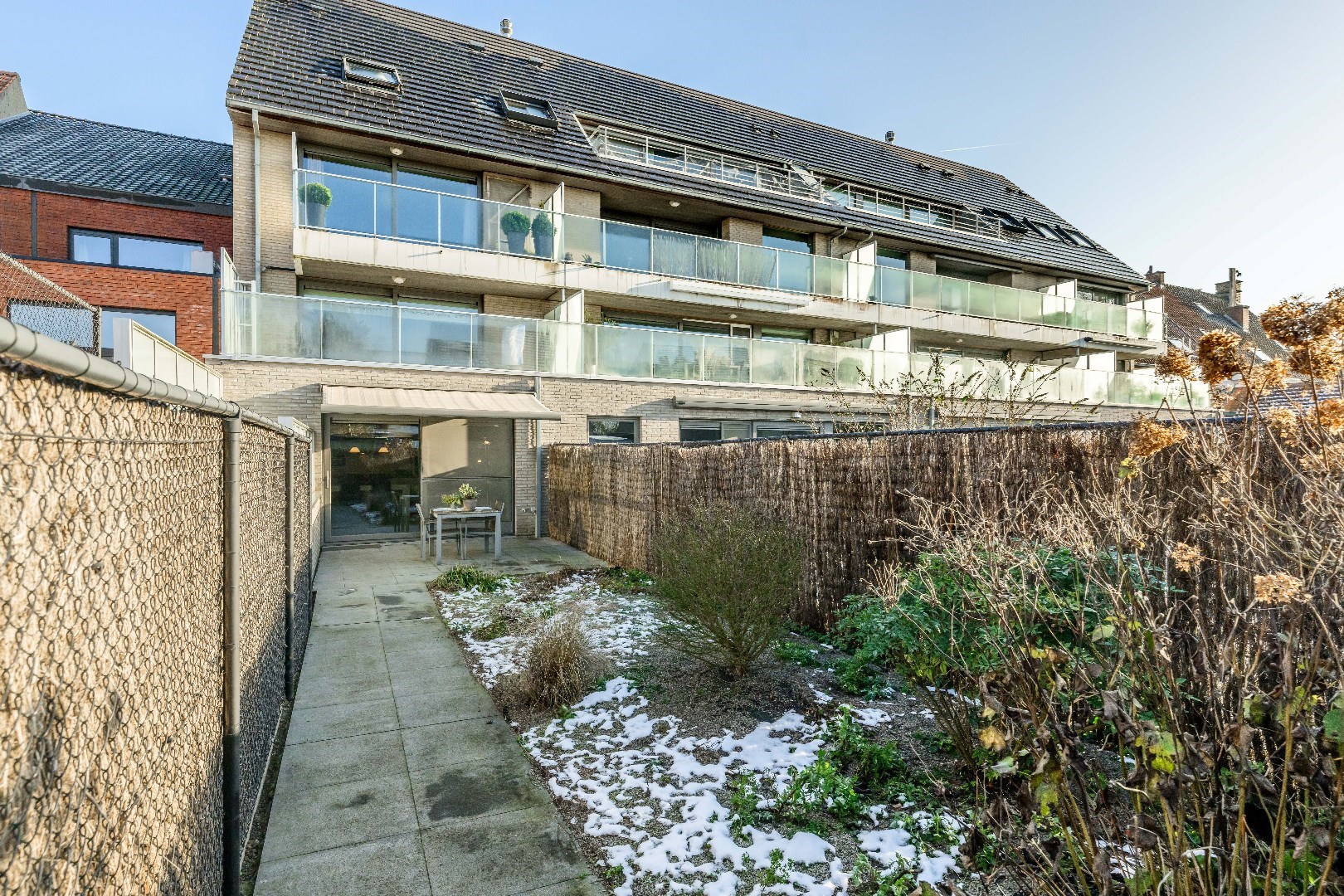 Het appartement heeft een zongerichte tuin (inclusief automatische zonneluifel)met een gezellig terras, ideaal om te genieten. U kan tevens via de Dwangstraat toegang nemen tot de achtertuin ZEER HANDIG! Verder beschikt U over een ondergrondse staanplaats.