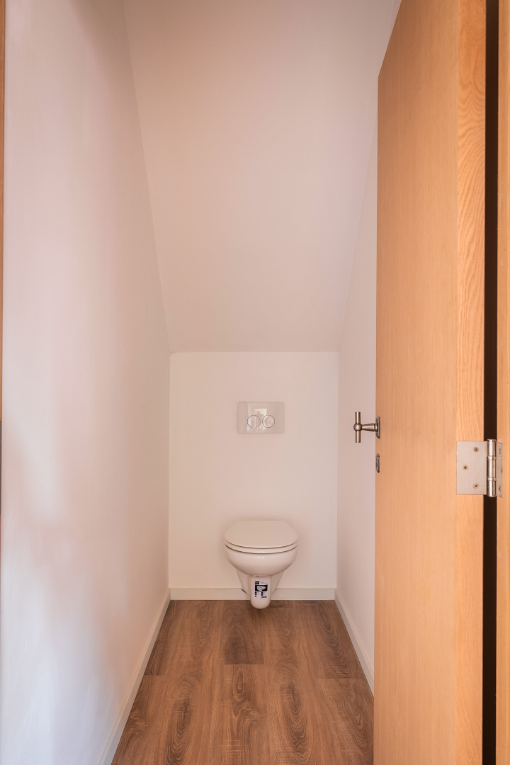 Via een aparte trap is er toegang tot de bovenverdieping met inkom en gastentoilet.