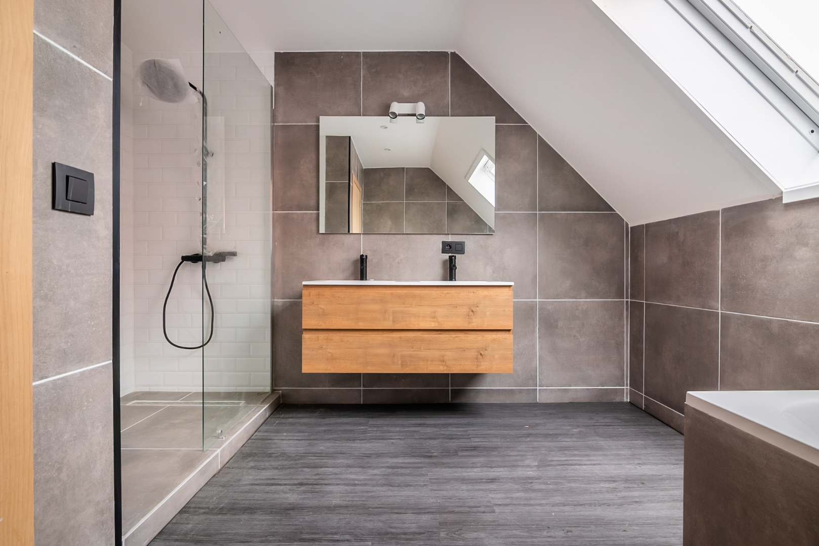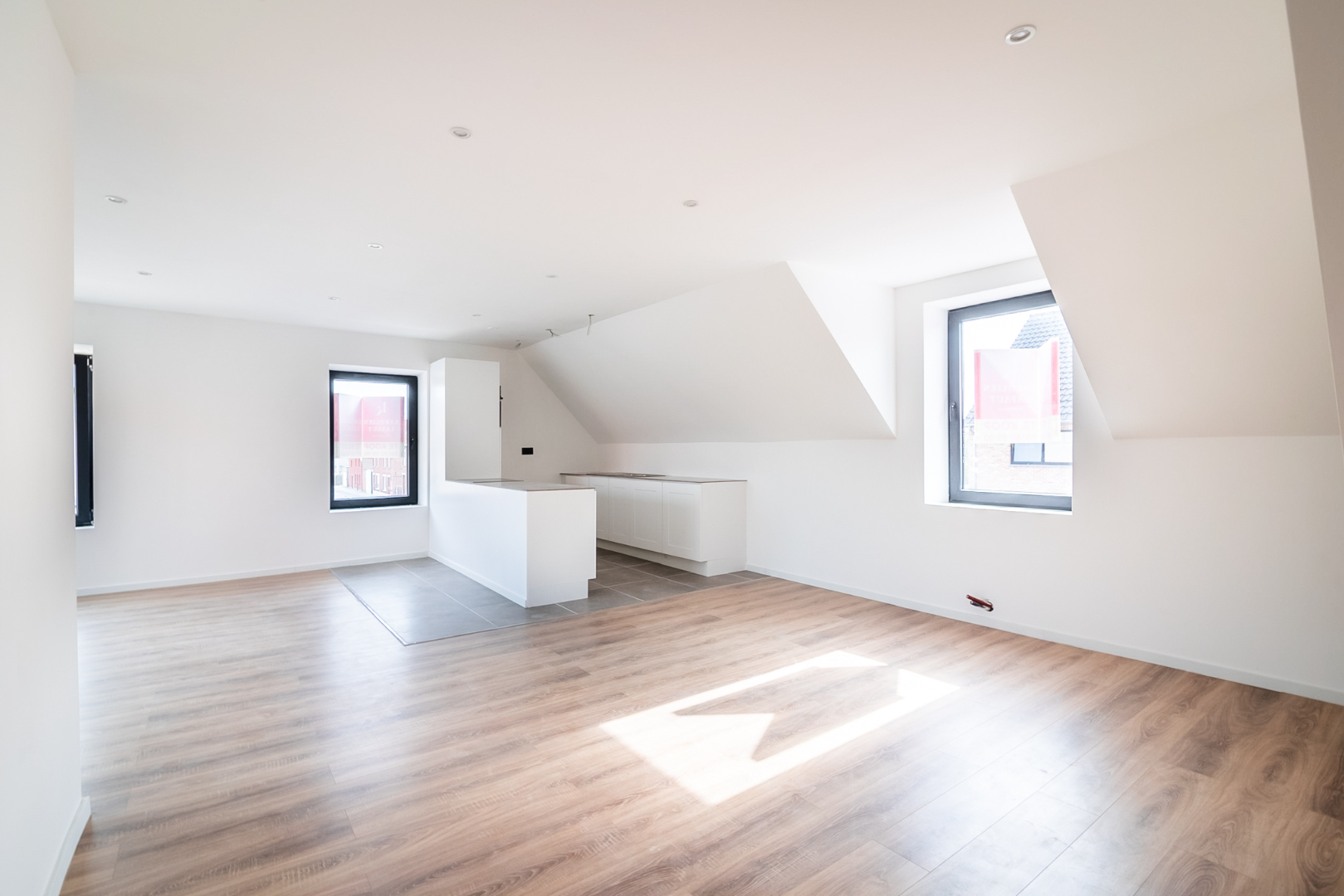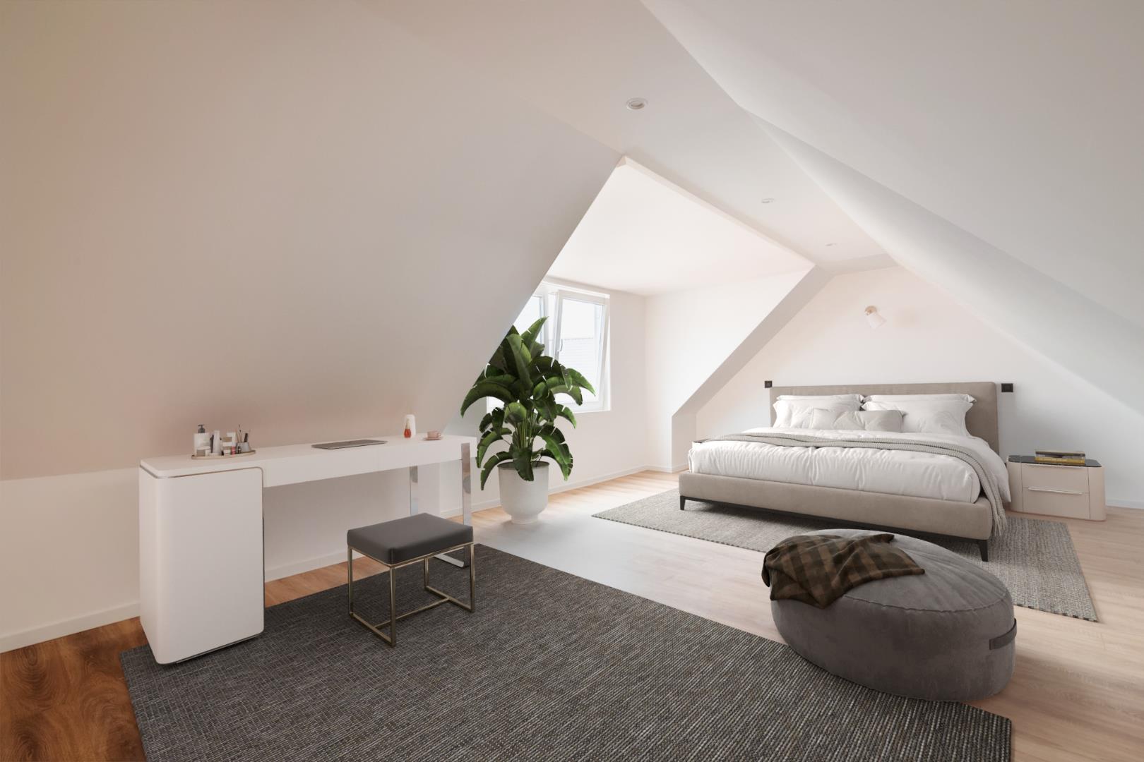 De prachtige open leefruimte met keuken zullen U onmiddellijk doen smelten! Enorme lichtinval en perfect instapklaar met een oppervlakte van maar liefst 50 m². U geniet tevens van een aansluitend terras. De open volledig ingerichte keuken omvat inductiekookplaat | dampkap | spoelbak | combi-oven | vaatwasmachine. Handig is de berging. Tevens is er een ruime badkamer aanwezig met prachtige inloopdouche, dubbele lavabo met meubel en ligbad. Het appartement is voorzien van 3 slaapkamers (28 m² | 15 m² | 13,50 m²) waarvan 2 kamers op het 2e verdiep gelegen zijn.