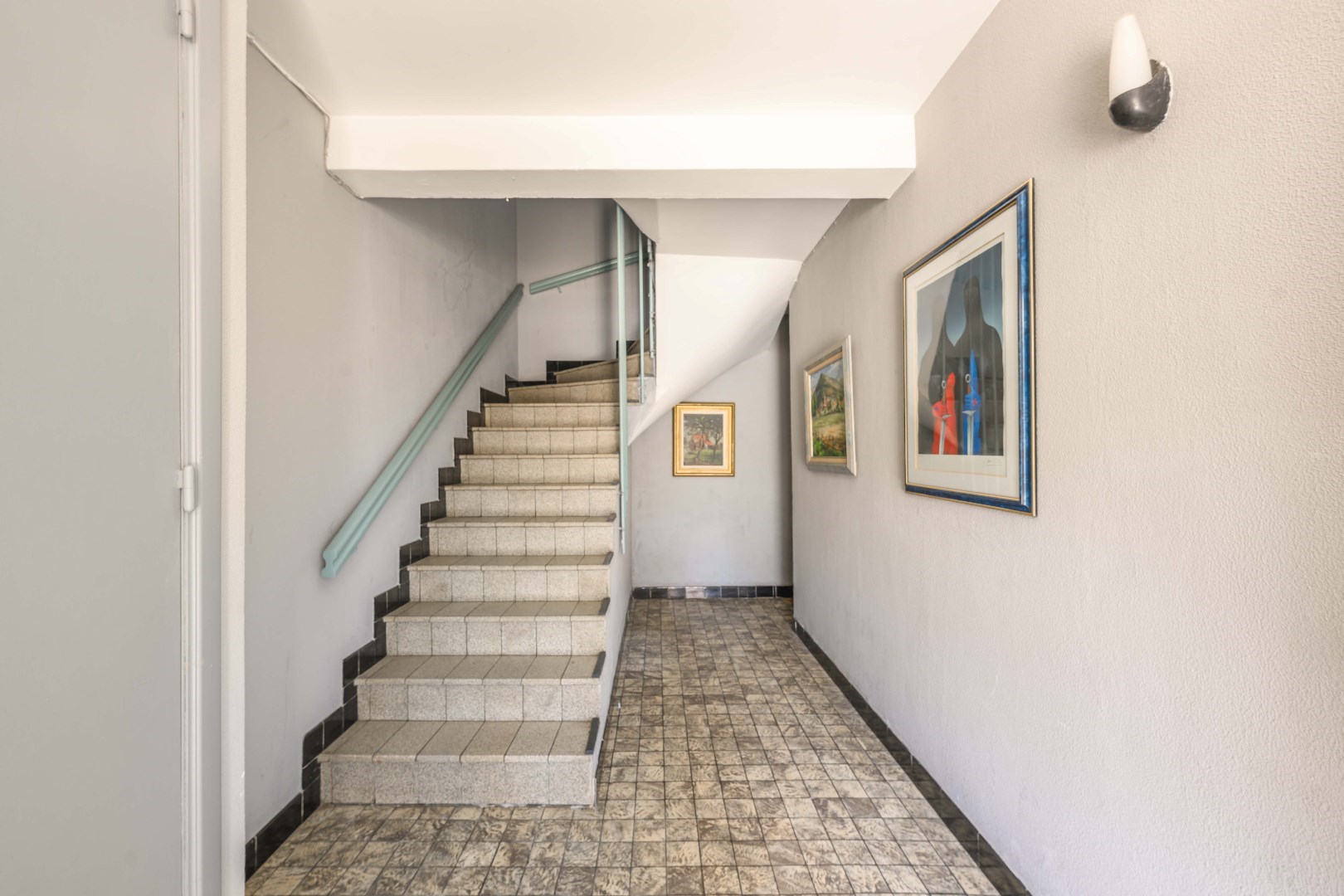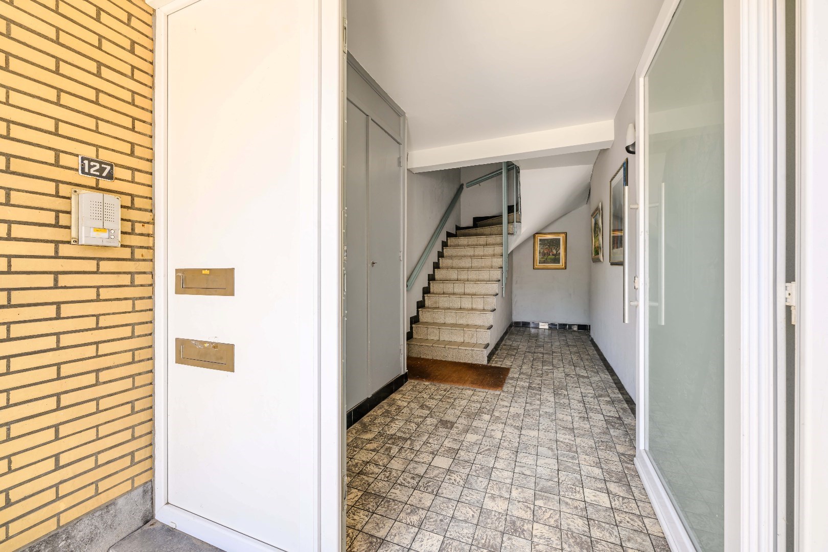 U komt de residentie binnen in de gemeenschappelijke inkomhal met trappenhal. Op het gelijkvloers zijn er 2 inpandige garages met aansluitende bergingen en is er toegang de tuin/koer.