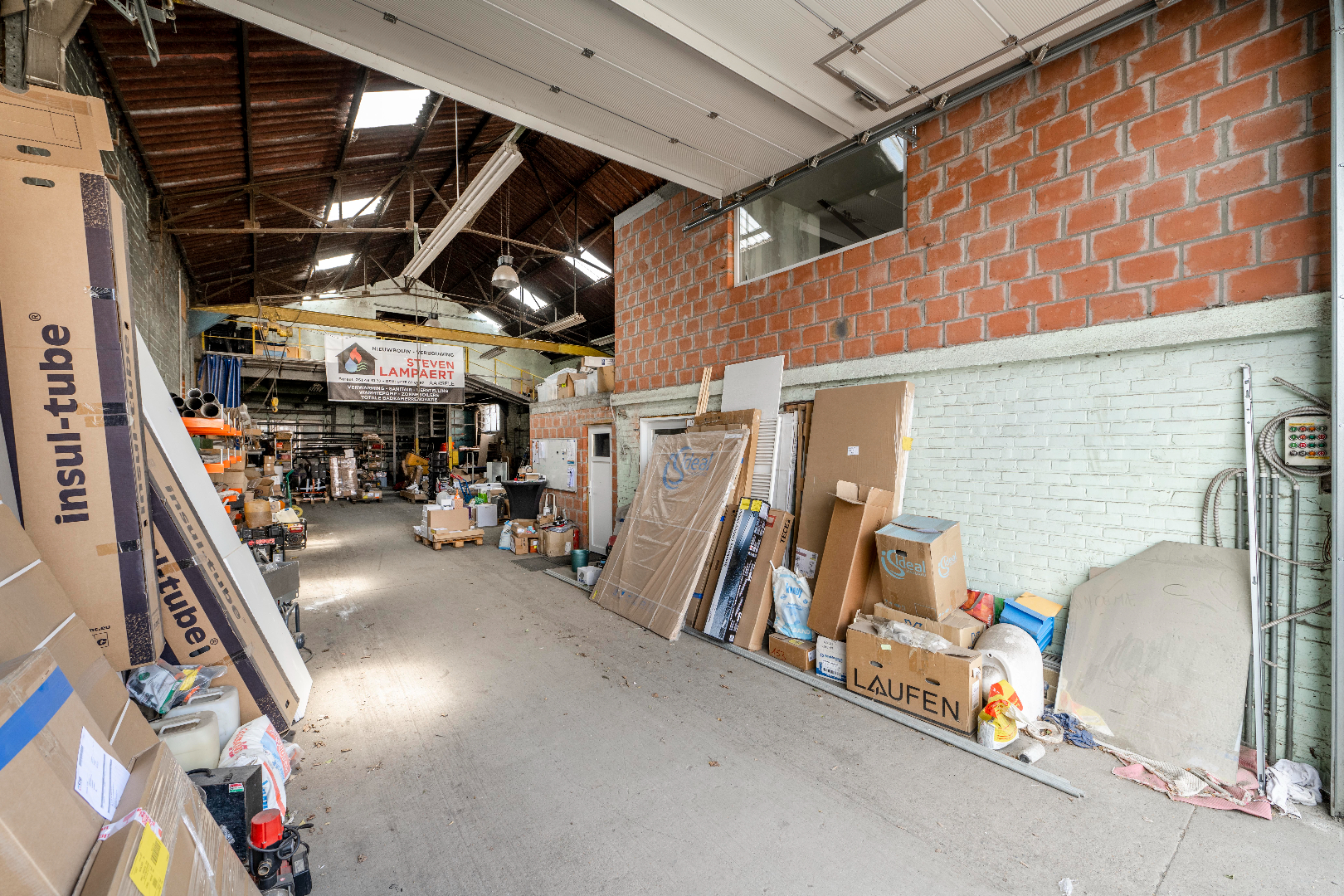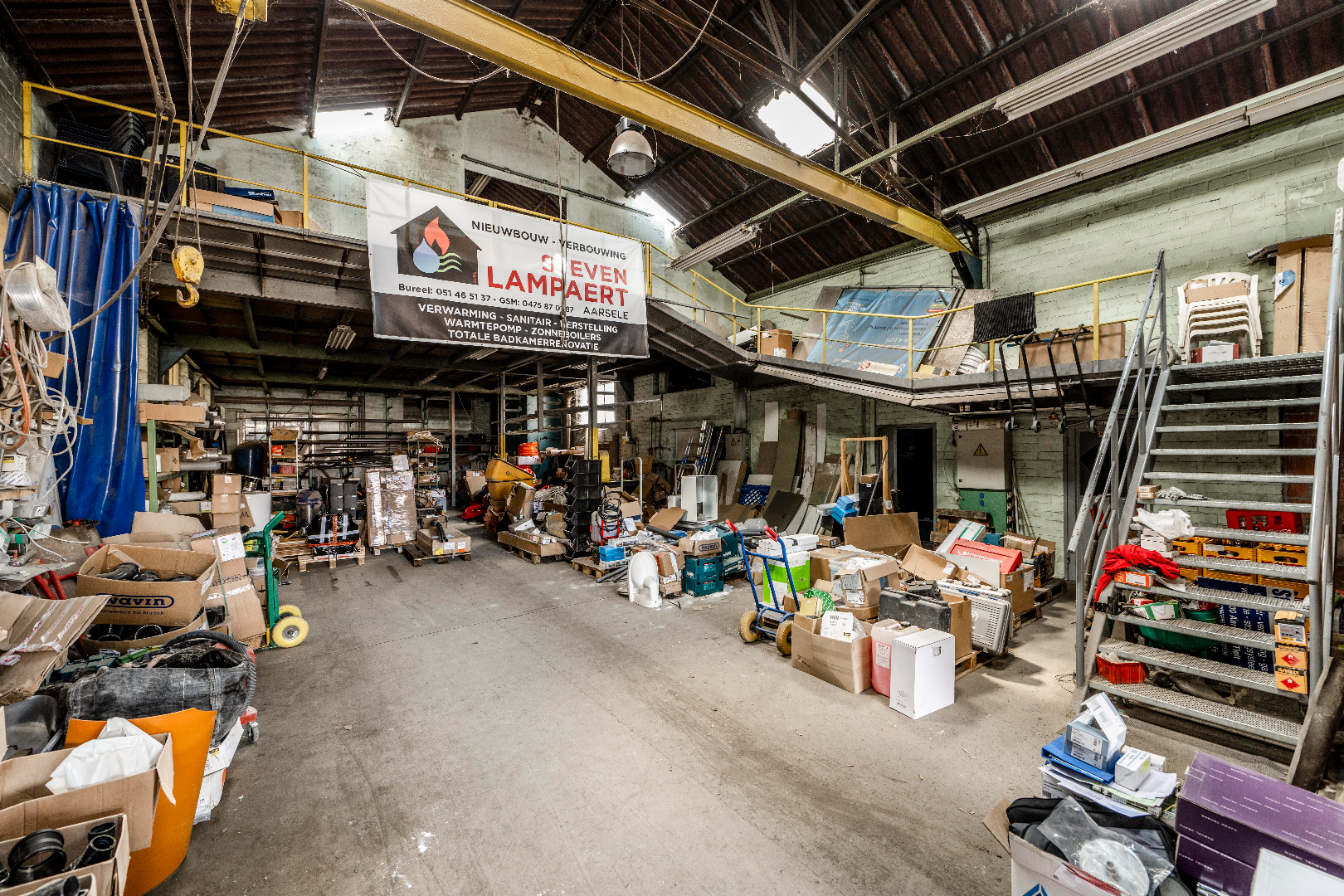 Dit magazijn betreft een oppervlakte van 600 m² en in toegankelijk via een automatische geïsoleerde poort. Deels van dit magazijn heeft ook een tussenverdiep voor extra stockageruimte.