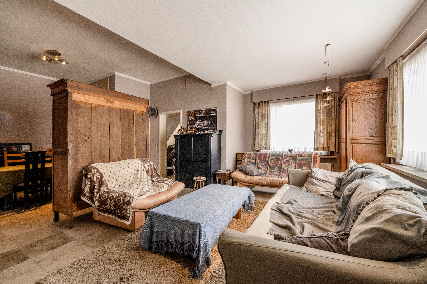 INTERIEUR: Via de inkom is er toegang tot het bureel (7,5 m²), het gastentoilet alsook de leefruimte van maar liefst 42 m². Aansluitend is er de gesloten ingerichte keuken (dubbele spoelbak | kookplaat | dampkap | oven | frigo). als laatste is er de achterinkom met daarnaast een ruime wasplaats 6,80 m². Handig is de ruime droge kelder (10,22 m²). Het eerste verdiep omvat 3 slaapkamers (12 m² | 11 m² en 21 m²). Tevens is er een badkamer alsook een apart toilet. De zolder is toegankelijk via een vouwtrap en dient nog geïsoleerd te worden.