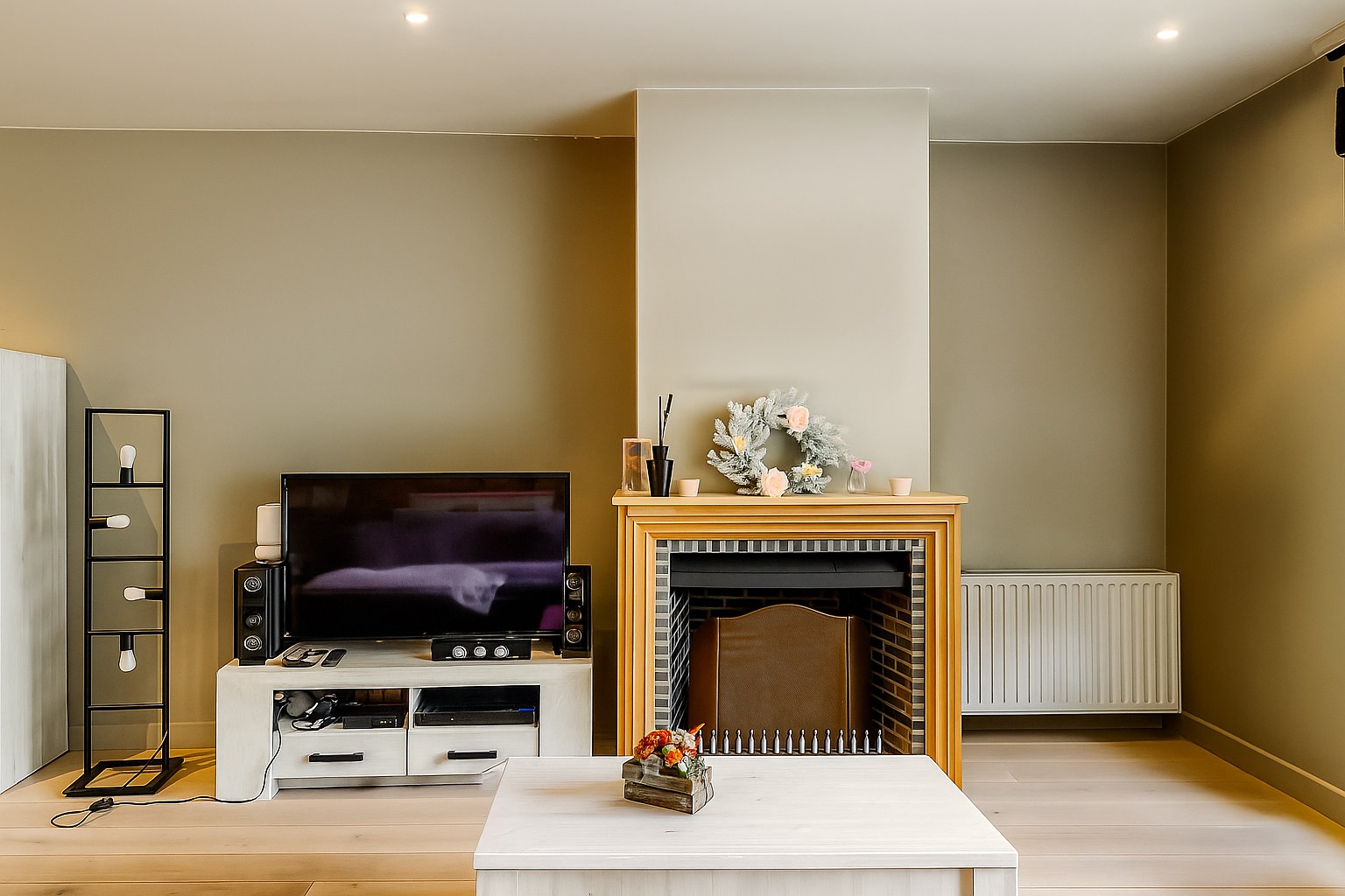 De ruime leefruimte biedt een gezellige zit- en eethoek van bijna 60 m² met directe toegang tot het terras en de tuin.