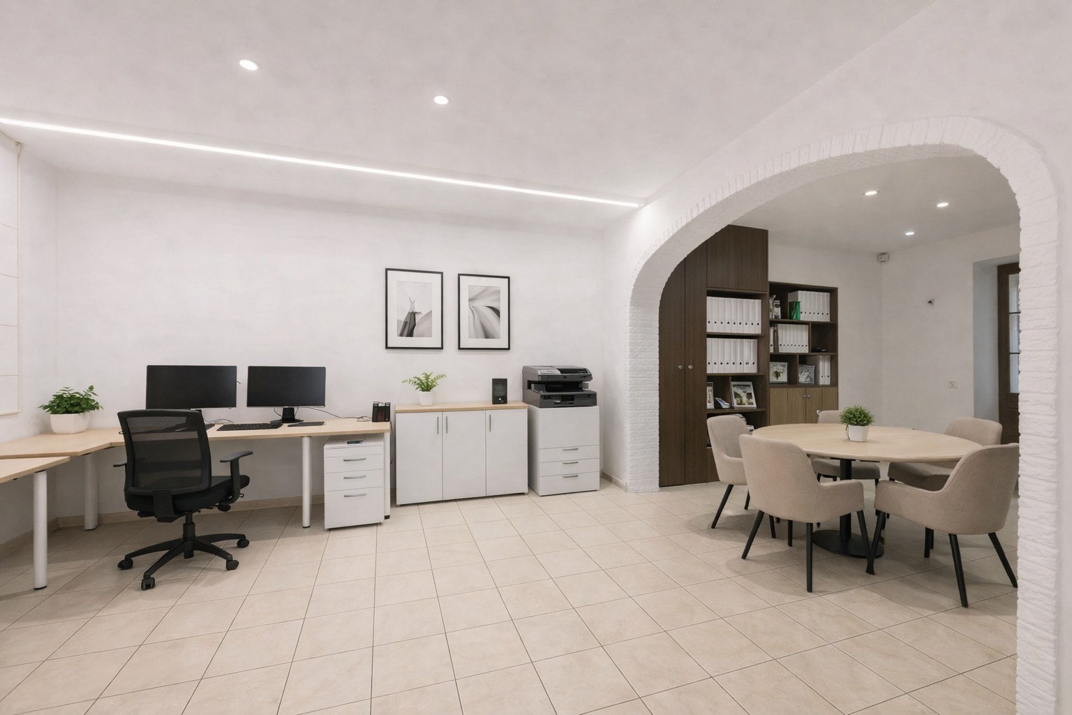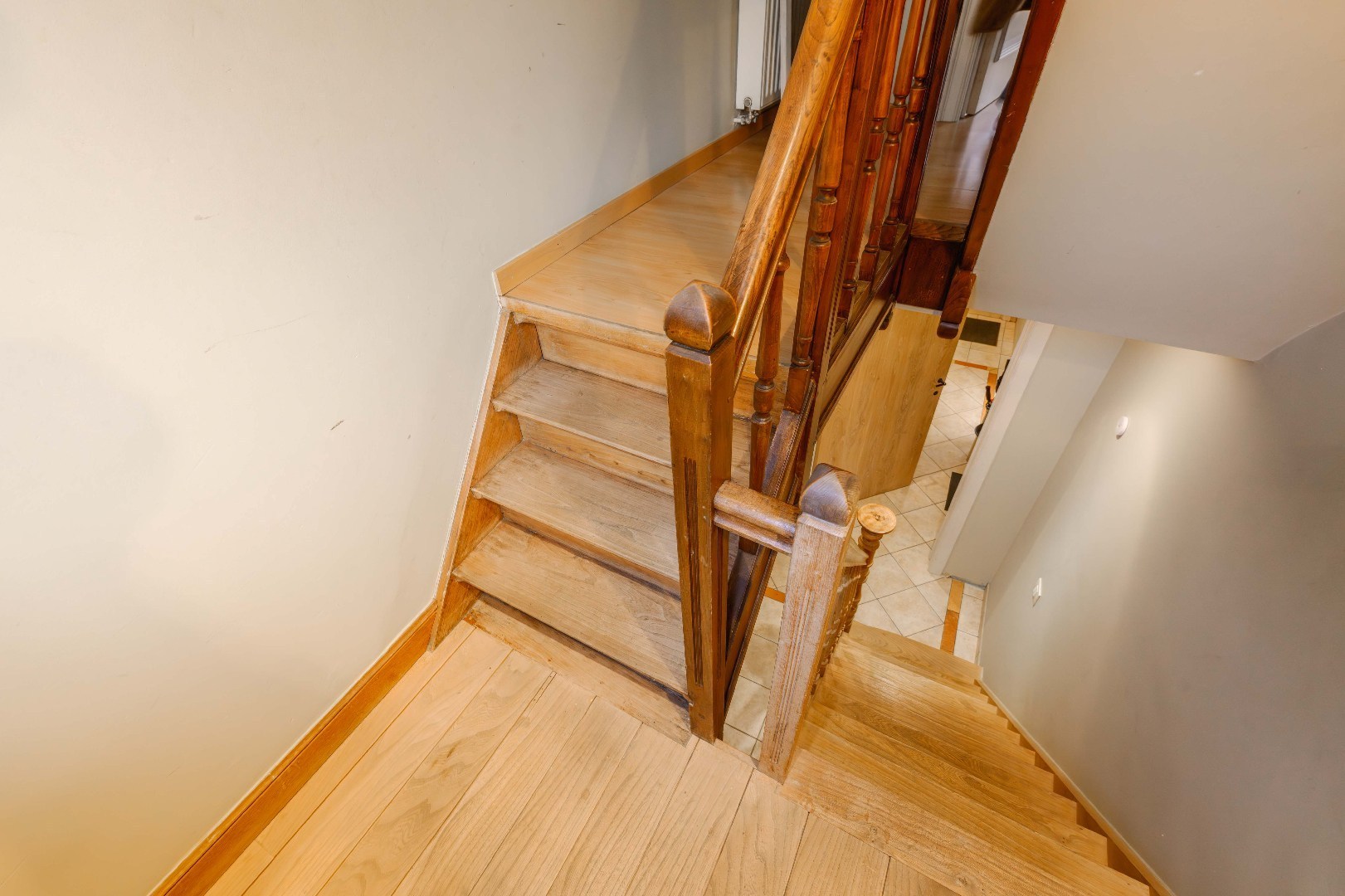 U betreedt de woning via een gemeenschappelijke inkomhal die toegang biedt tot zowel de commerciële ruimte (momenteel ingericht als kapsalon, maar kan eveneens worden omgevormd tot een gelijkvloerse slaapkamer met badkamer) als het privé-gedeelte.