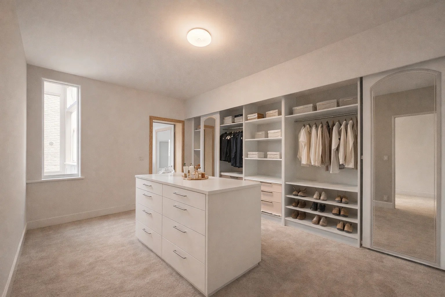 Het tweede verdiep omvat verschillende ruimtes die vrij ingedeeld kunnen worden.