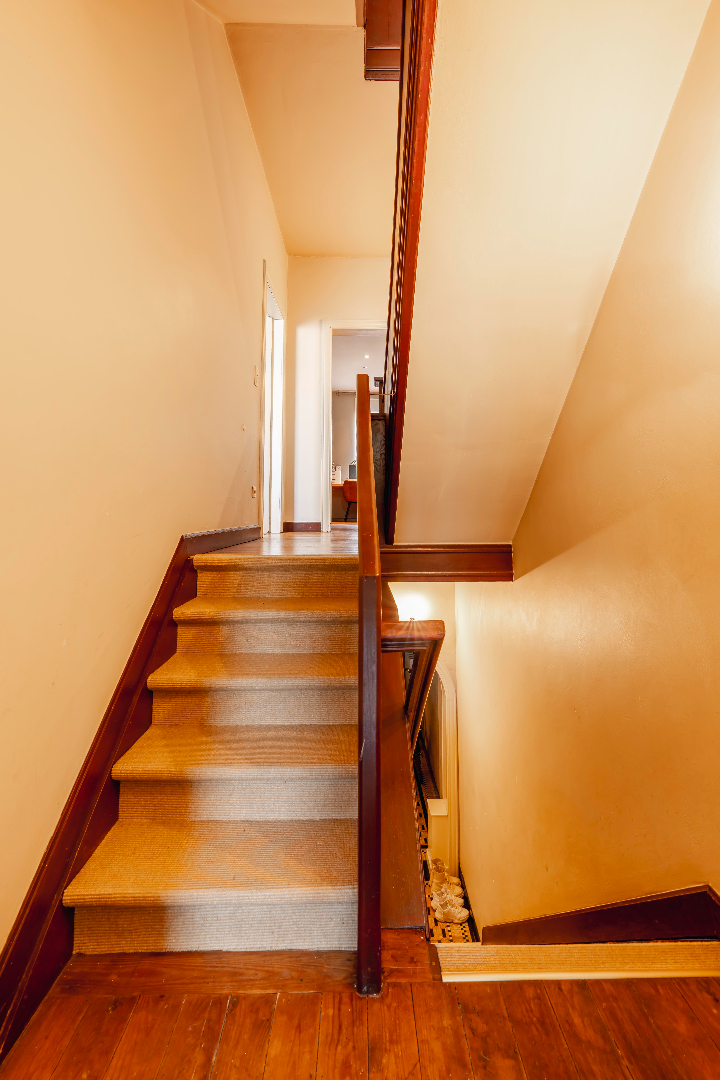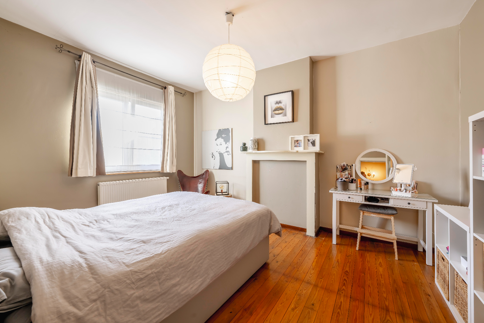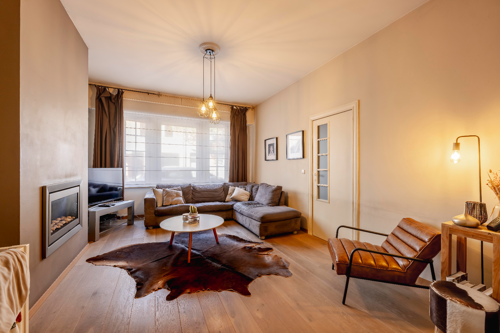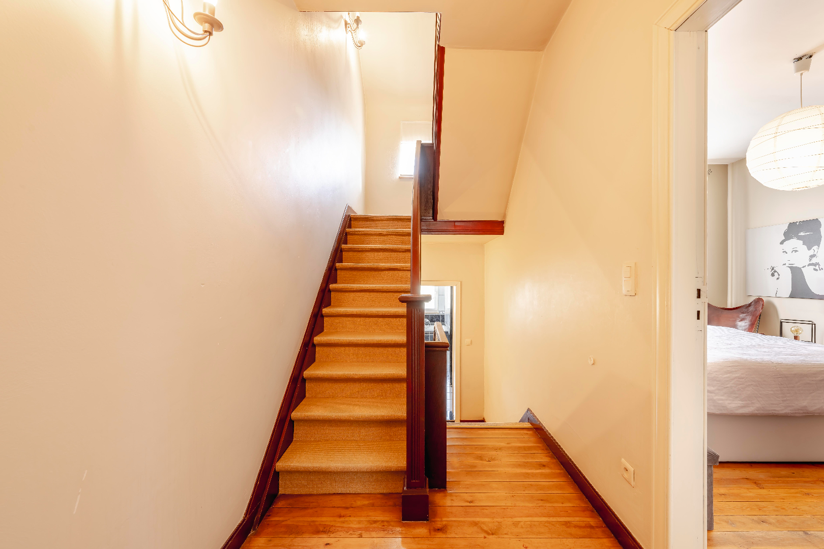 U komt binnen via de ruime inkomhal waar onmiddellijk de authentieke elementen opvallen. Er is toegang tot de leefruimte (35 m²) met gezellige zithoek voorzien van een gaskachel verder is er de eetkamer met aansluitend de volledig ingerichte open keuken (gasfornuis | dampkap | spoelbak | oven | frigo | vaatwasser). Via het schuifraam is er directe toegang tot het zonnige terras 12 m² met buitentrap naar de stadstuin 80 m².